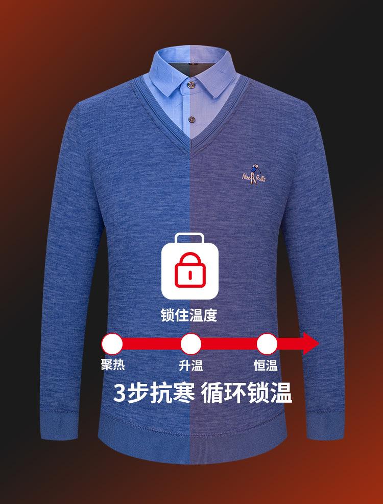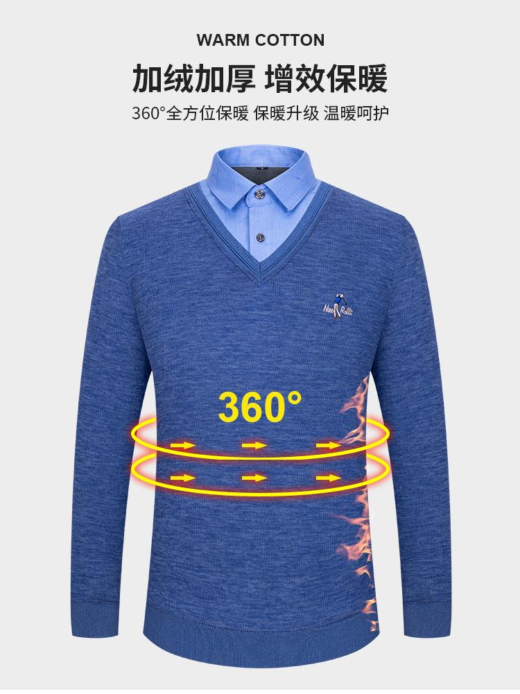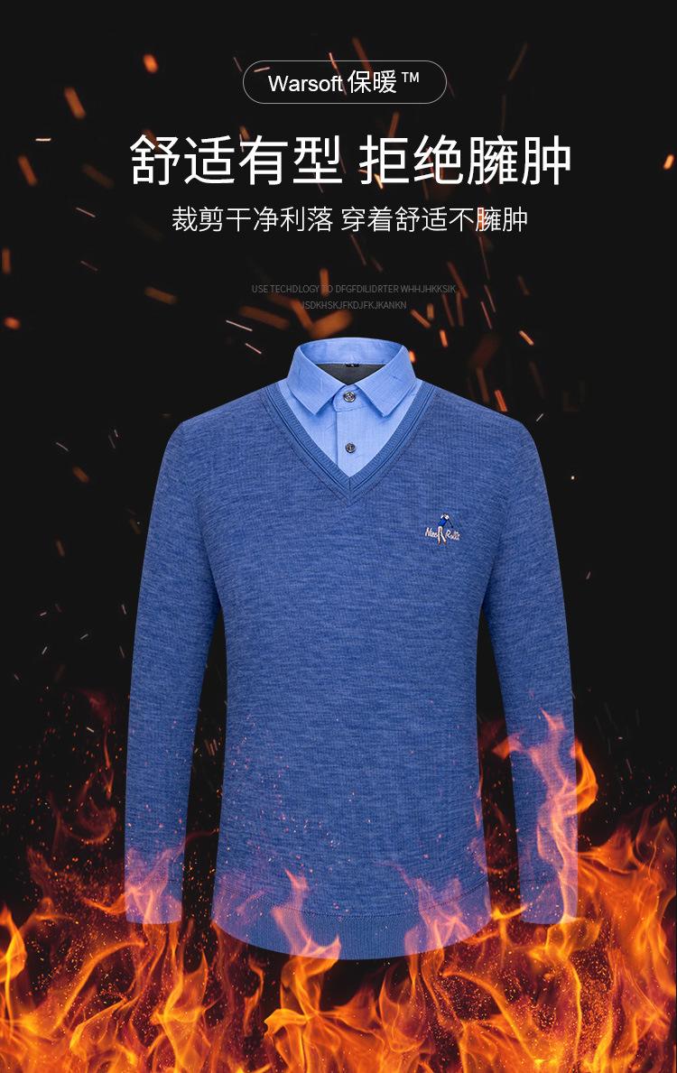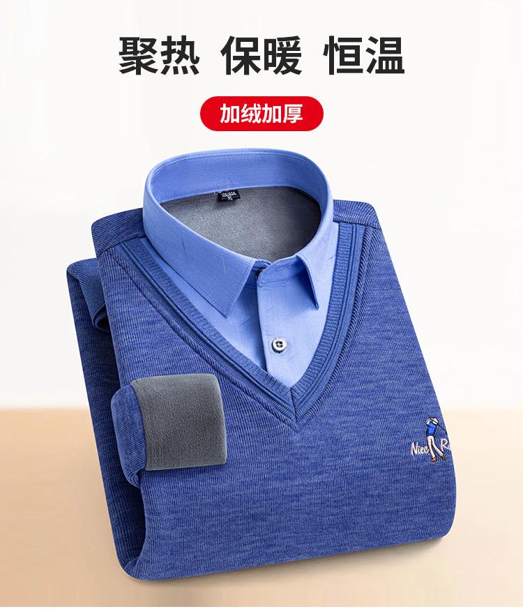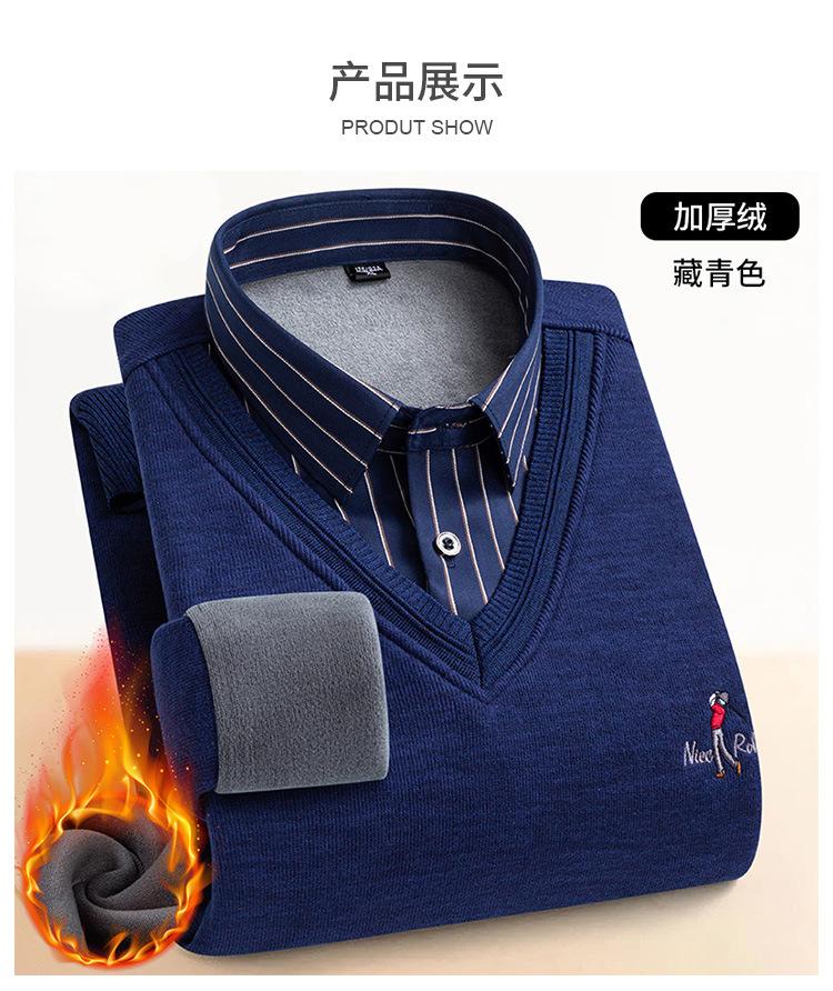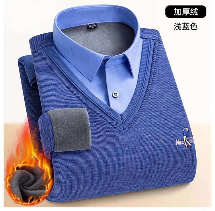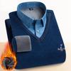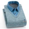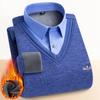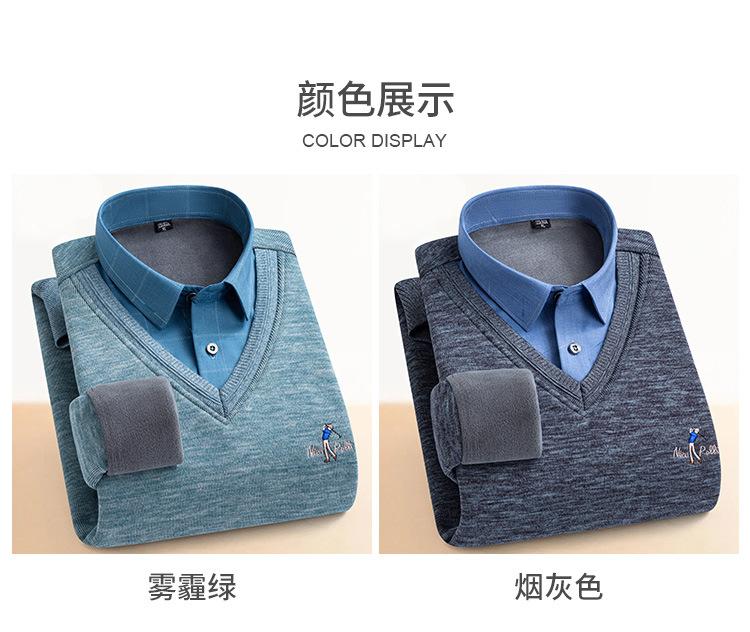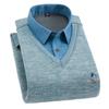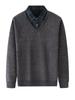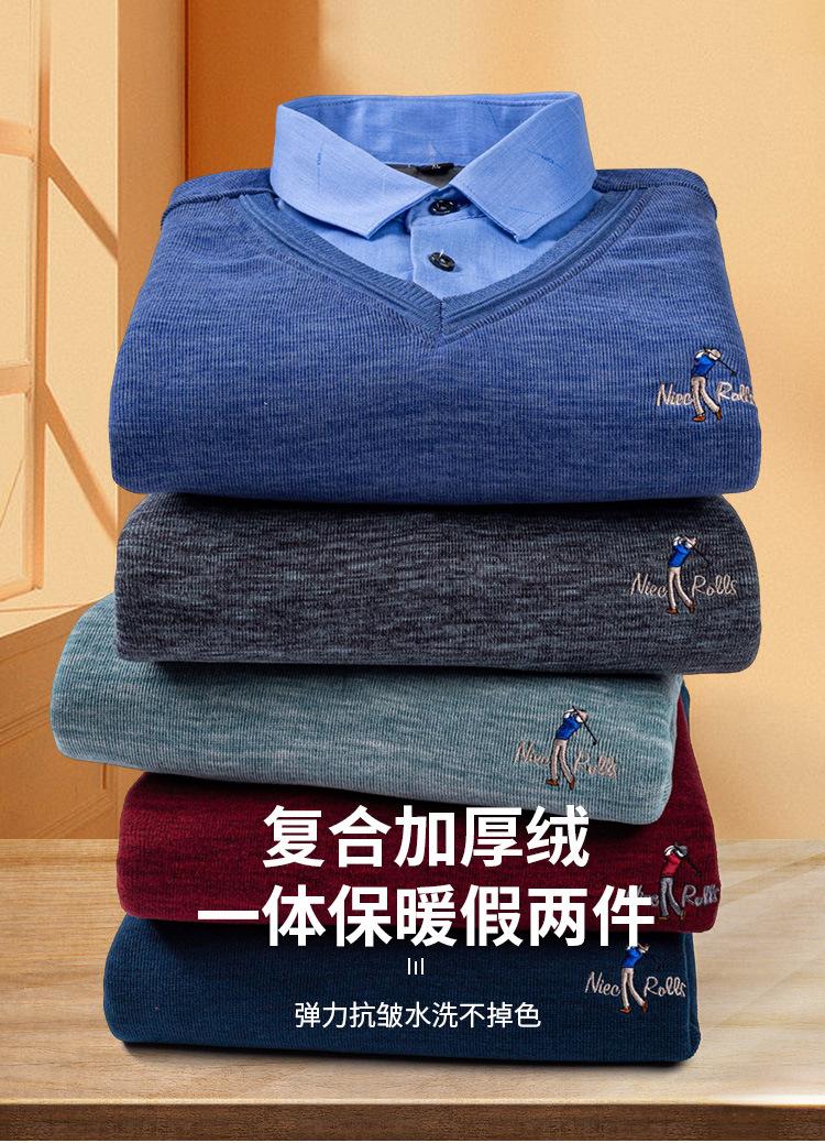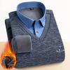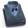 Suéter de invierno para hombre, forro polar grueso, falso, de dos piezas, sin costuras, con cuello en V, suéter cálido, ropa para hombre, venta al por mayor