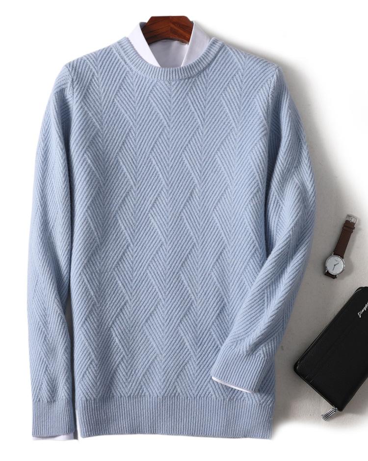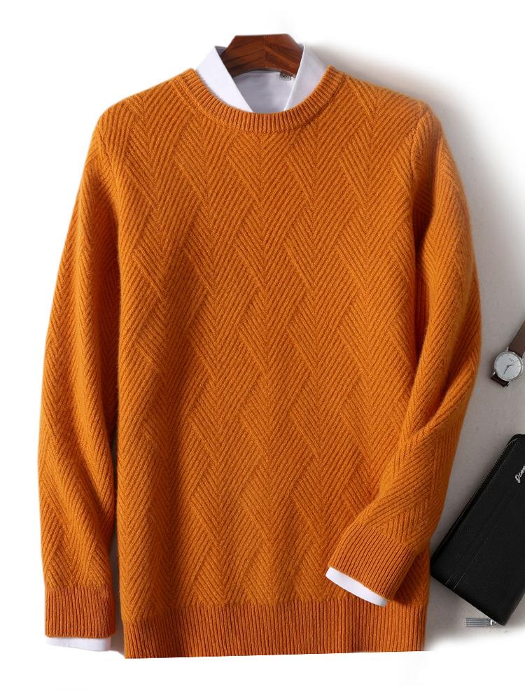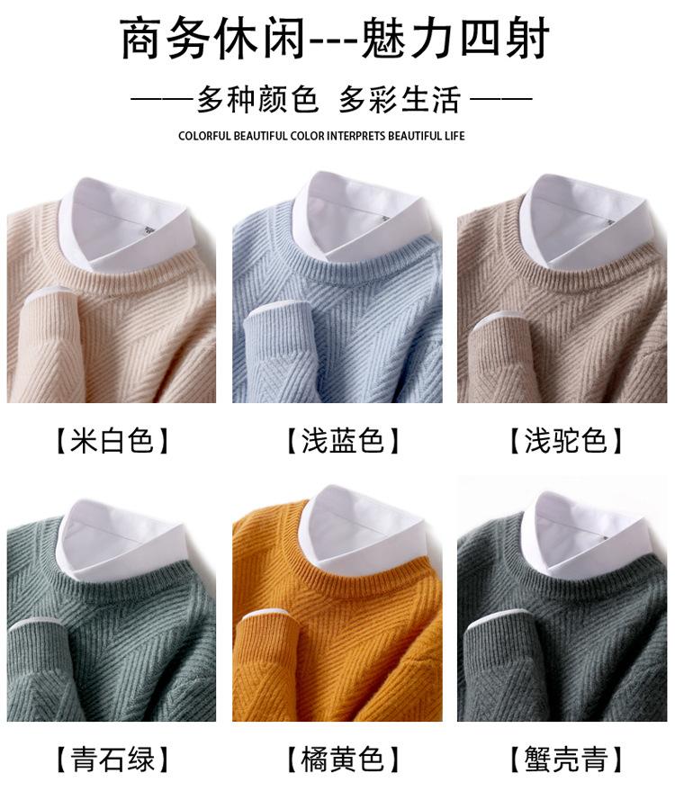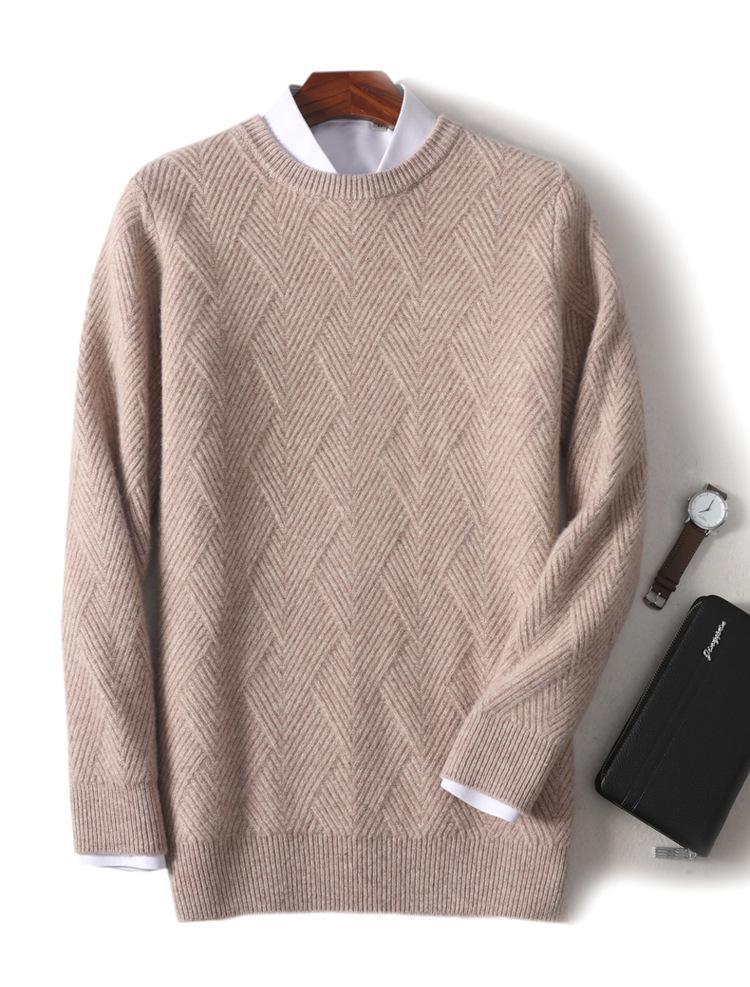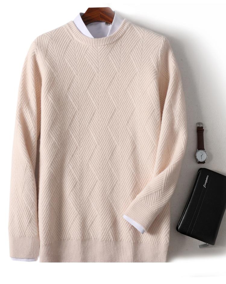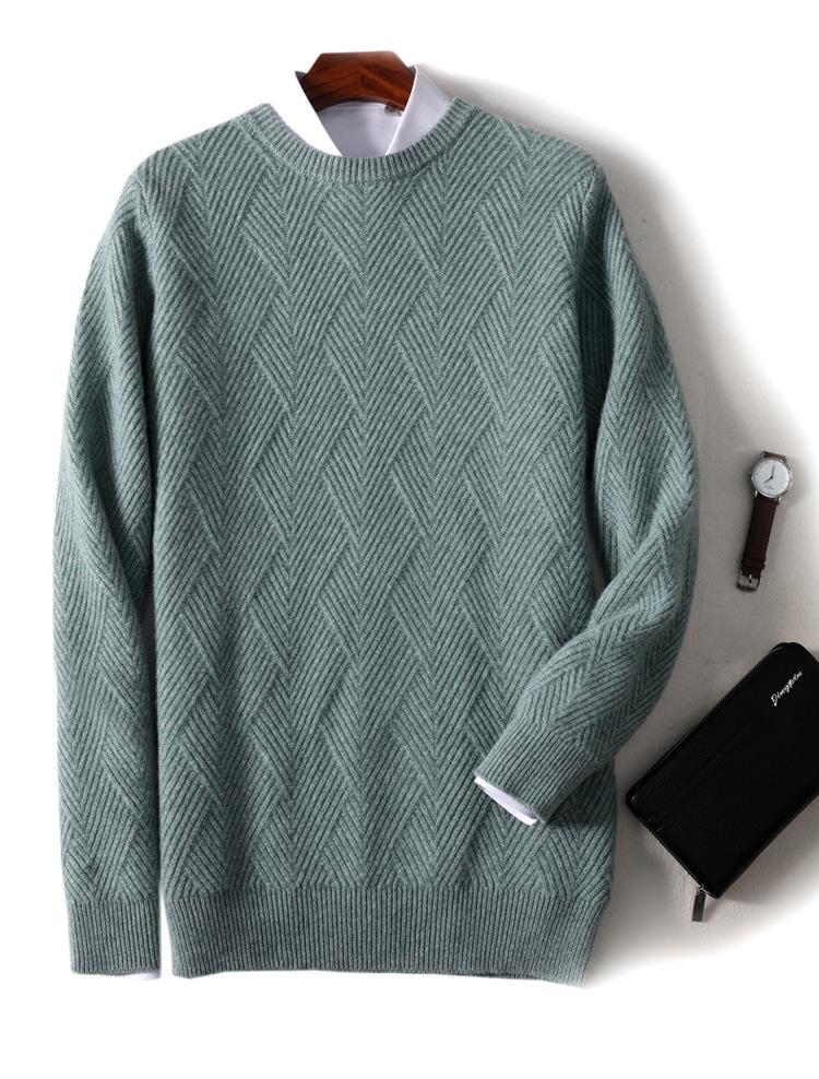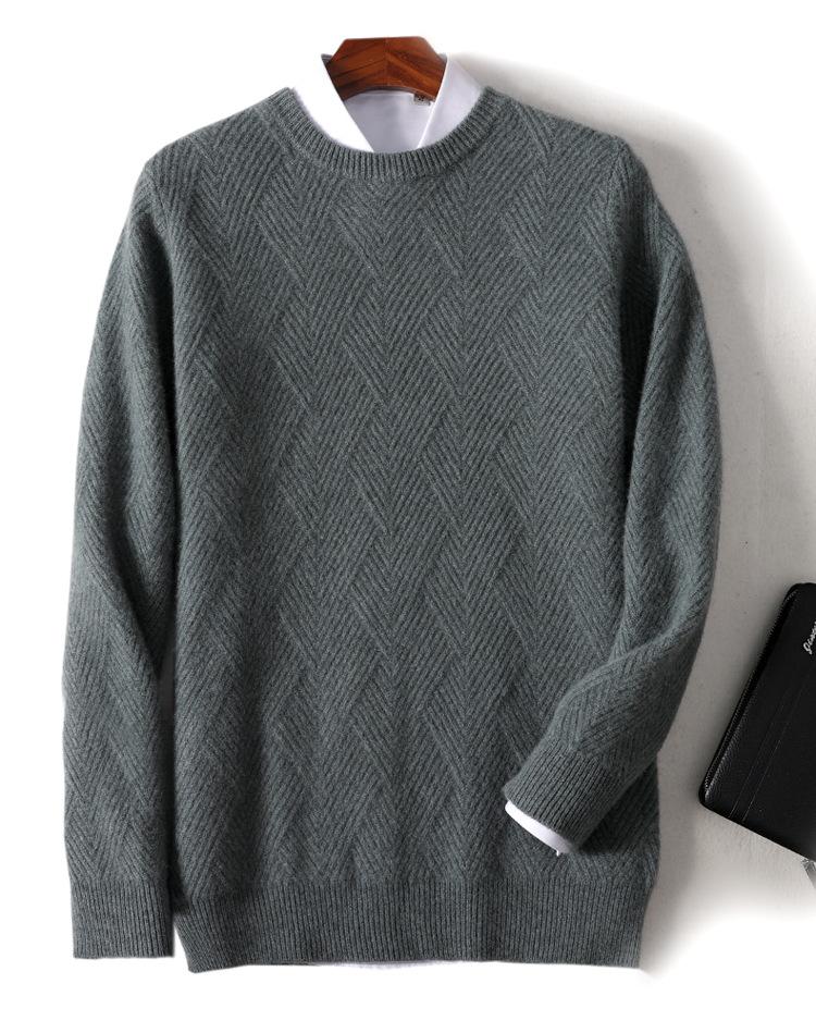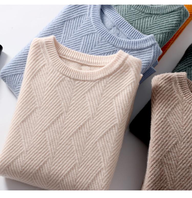 Suéter de cachemira de invierno para hombre, nuevo, de cuello redondo, grueso y holgado, informal, de negocios, de punto de lana 100%