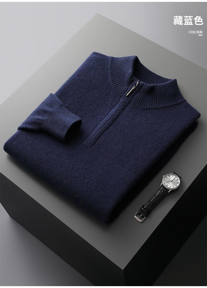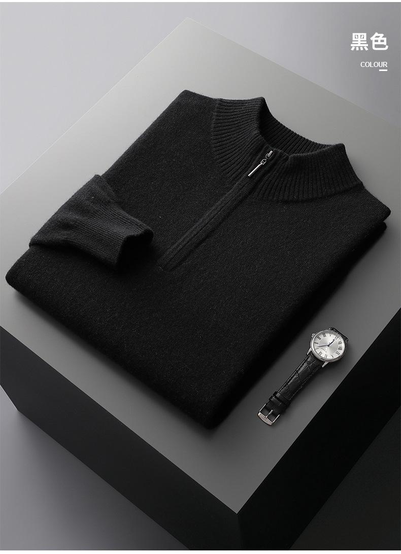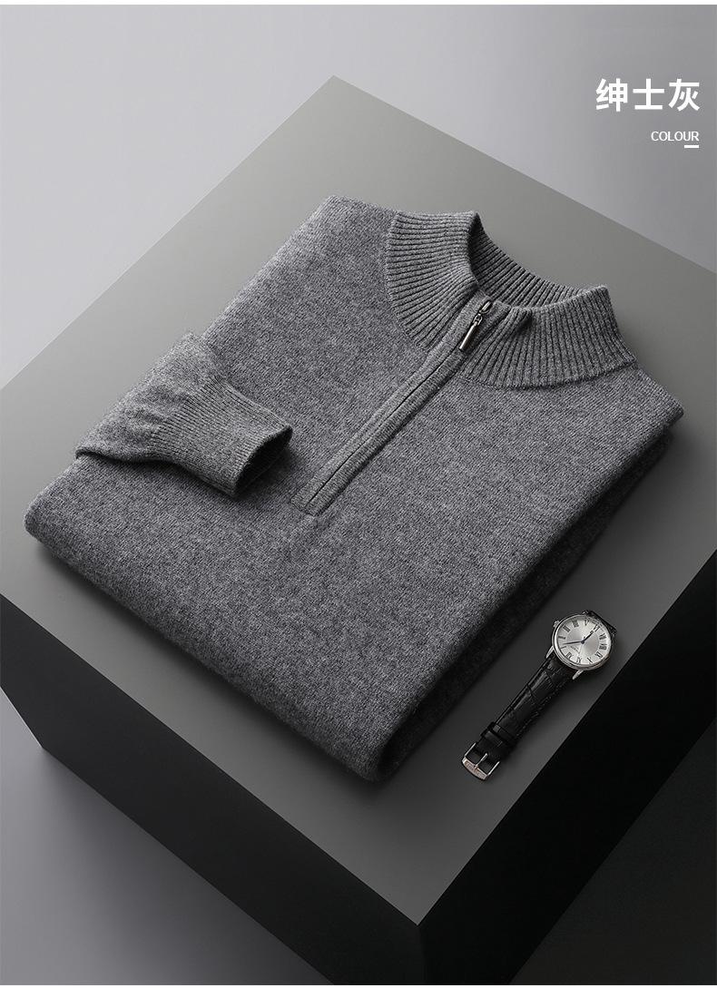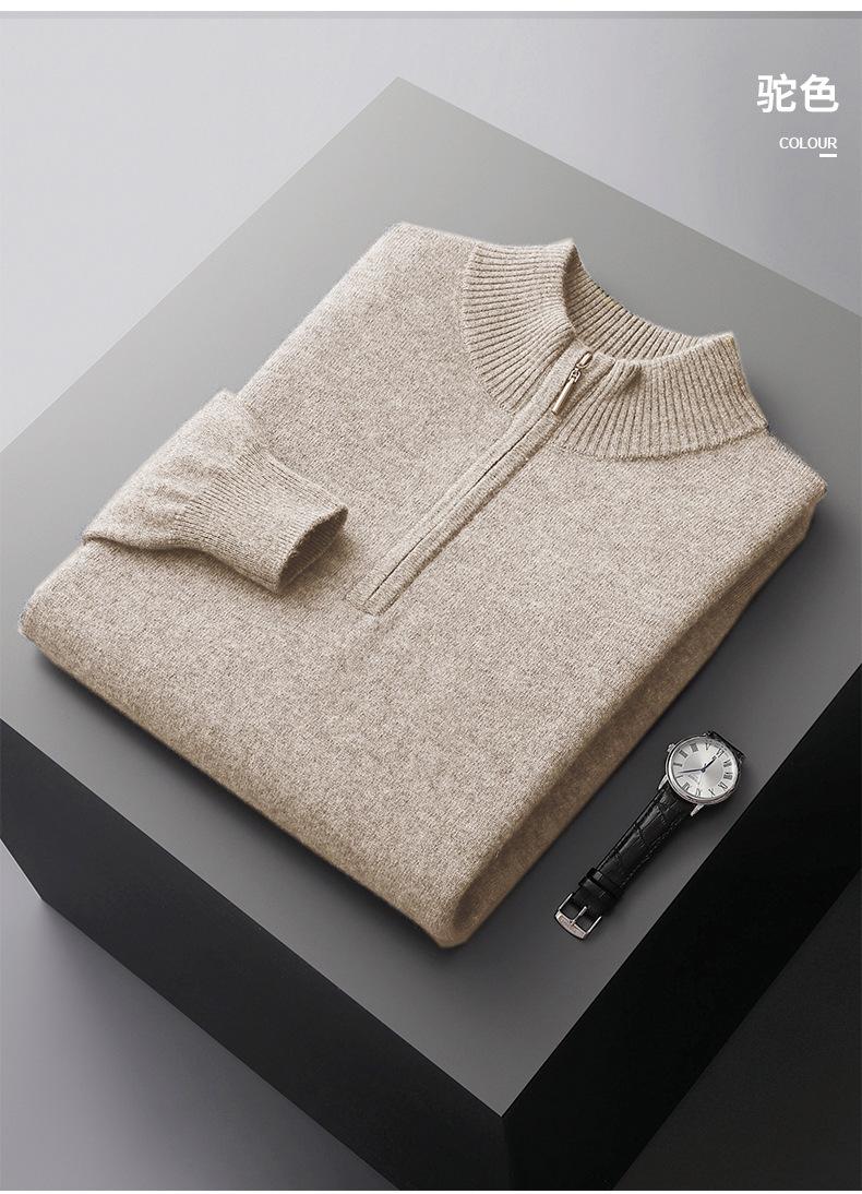 Suéter de Cachemira para Hombre de Otoño e Invierno 2025 con Cierre de Media Cuello Alto Espesado Talla Grande Suéter de Negocios Tejido de Lana Base
