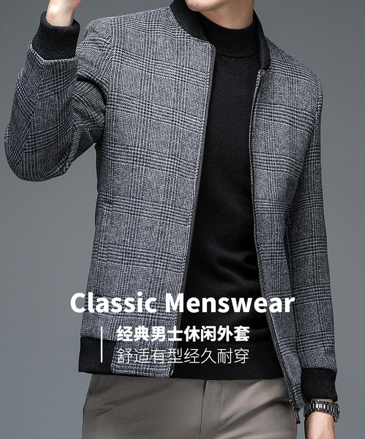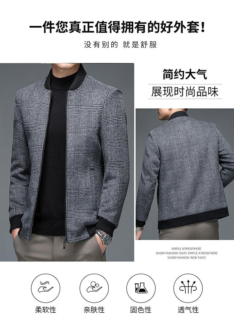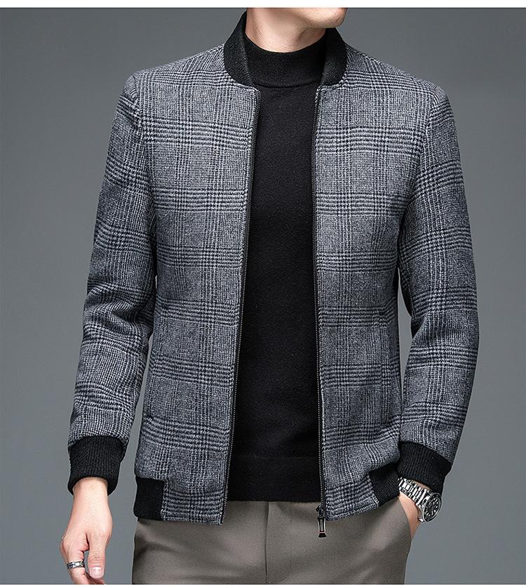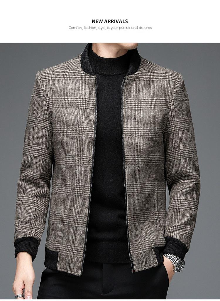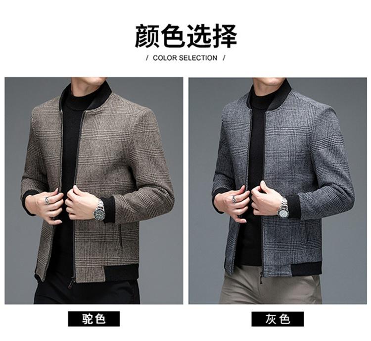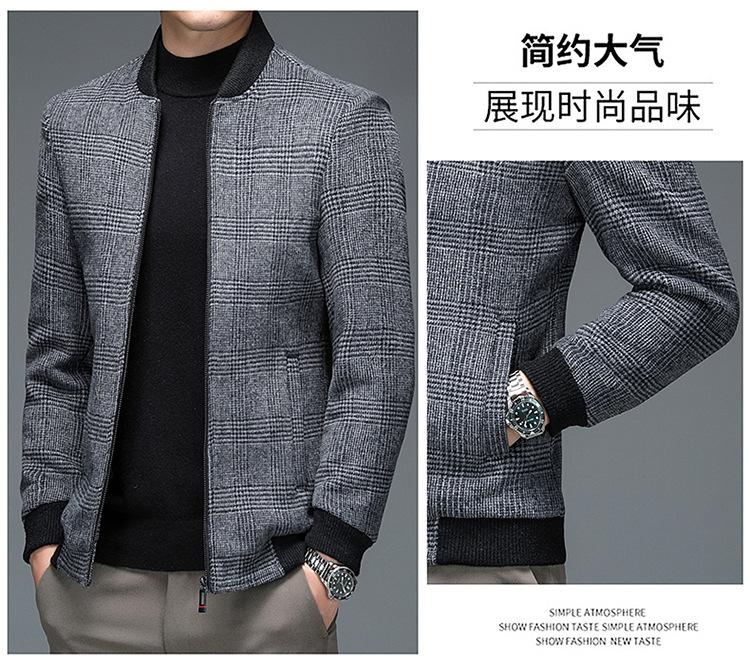Chaqueta de lana nueva de otoño e invierno para hombres de mediana edad, estilo coreano, informal, a cuadros, de algodón y lana gruesa.