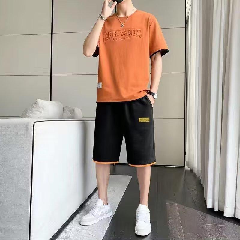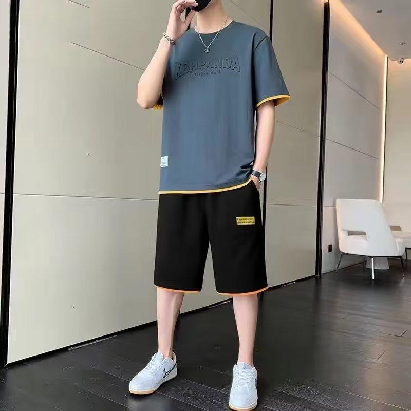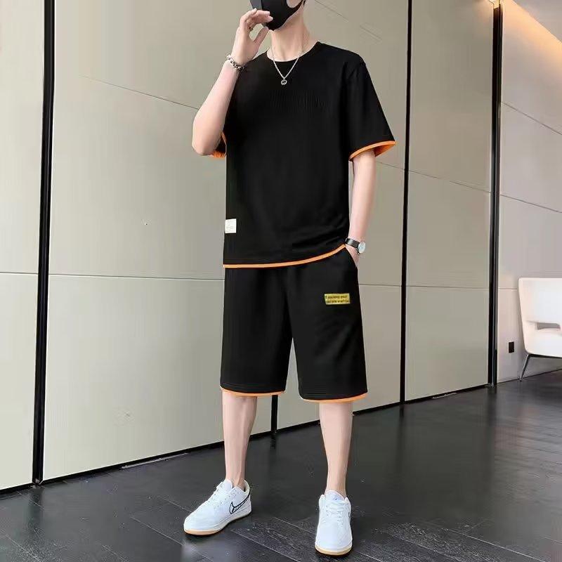 Conjunto de pantalones cortos casuales de manga corta para hombre, camiseta de verano, marca de moda fina, conjunto deportivo de seda de hielo con un atractivo