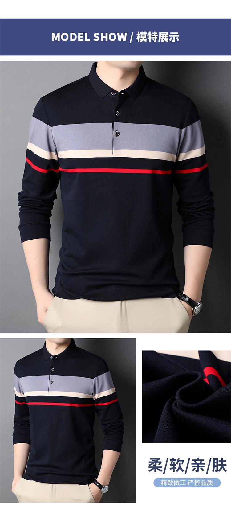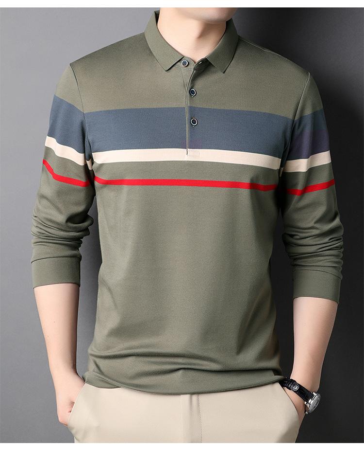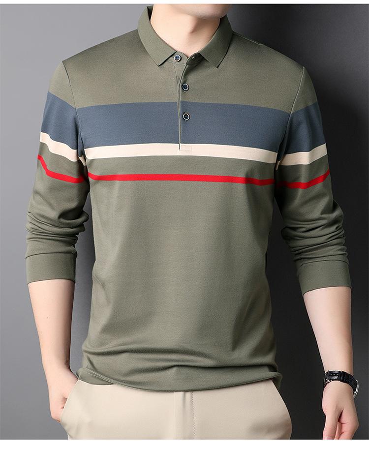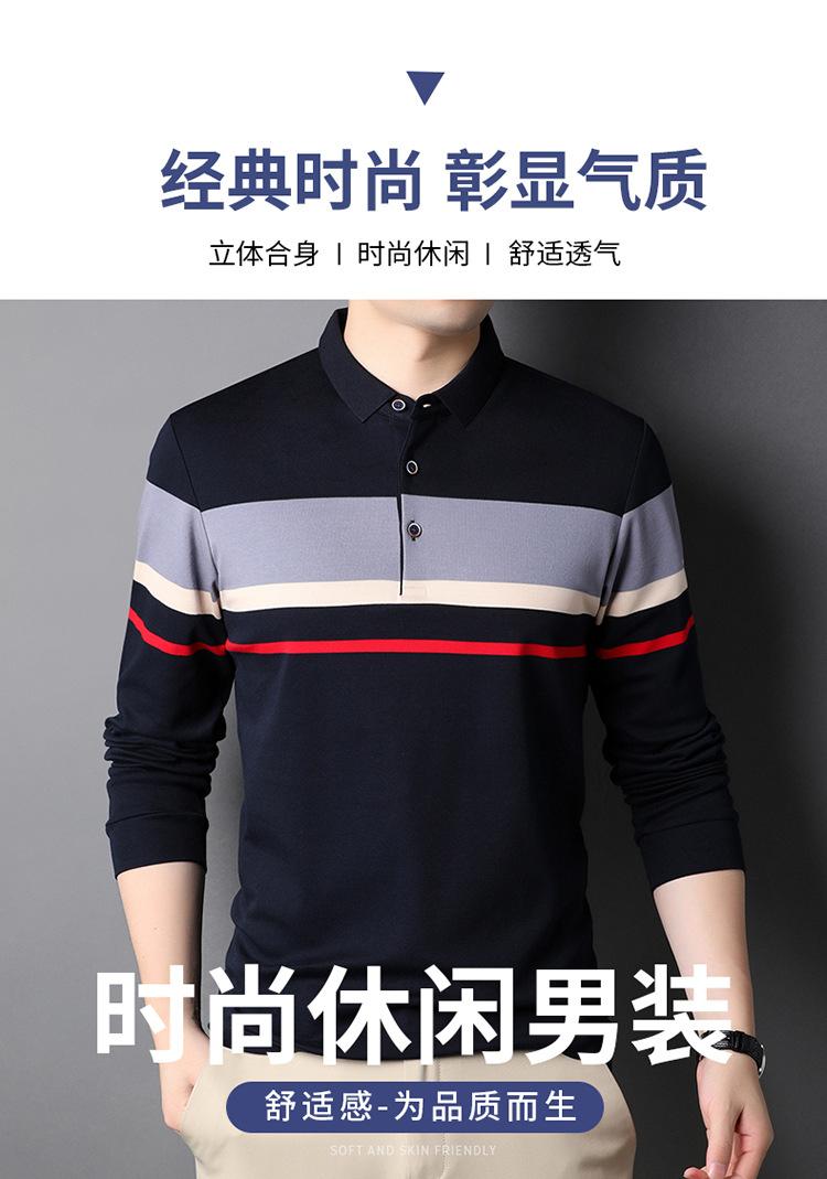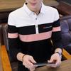 Otoño 2021 Nueva camiseta de manga larga para hombres jóvenes y de mediana edad, moda coreana, informal, con solapa, ajustada, básica