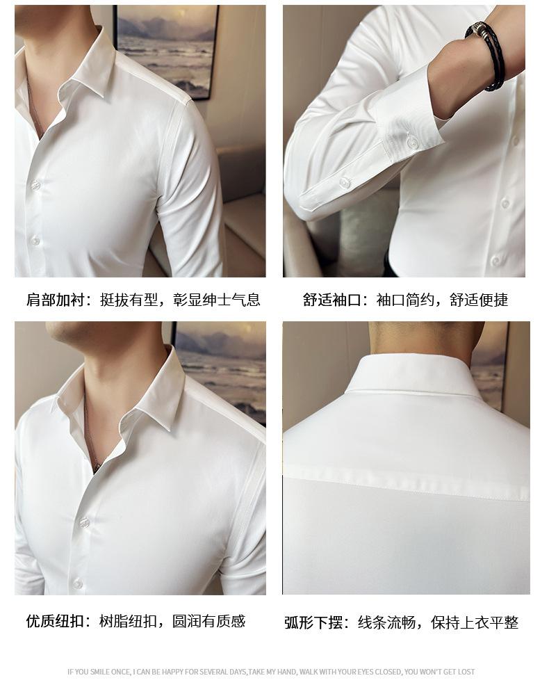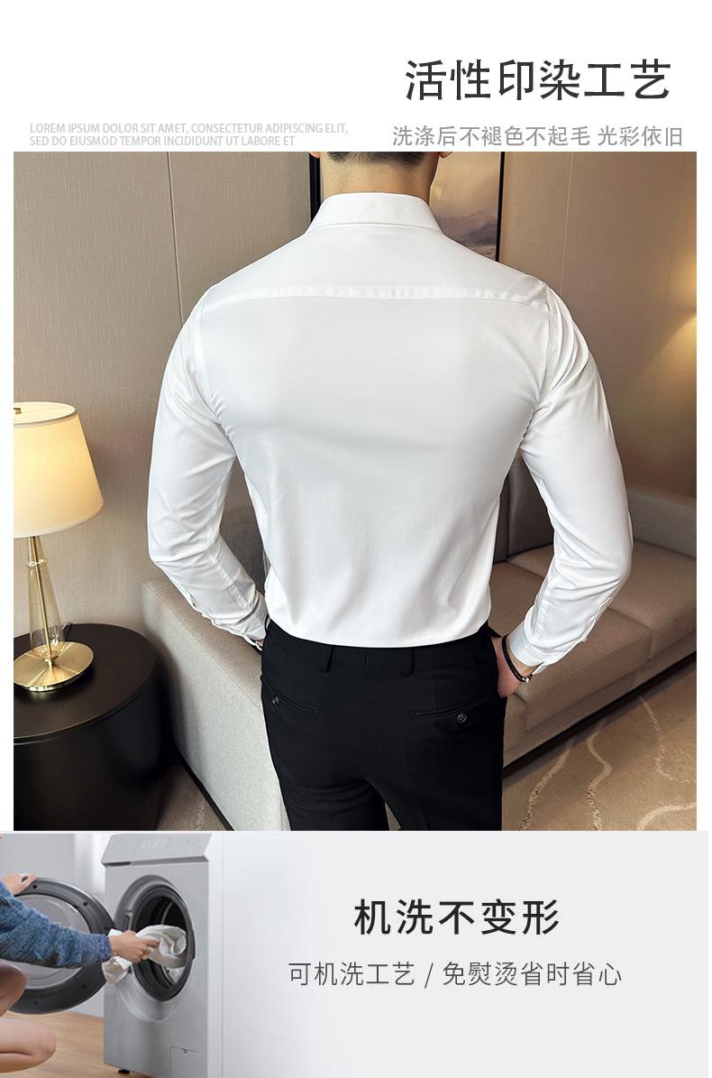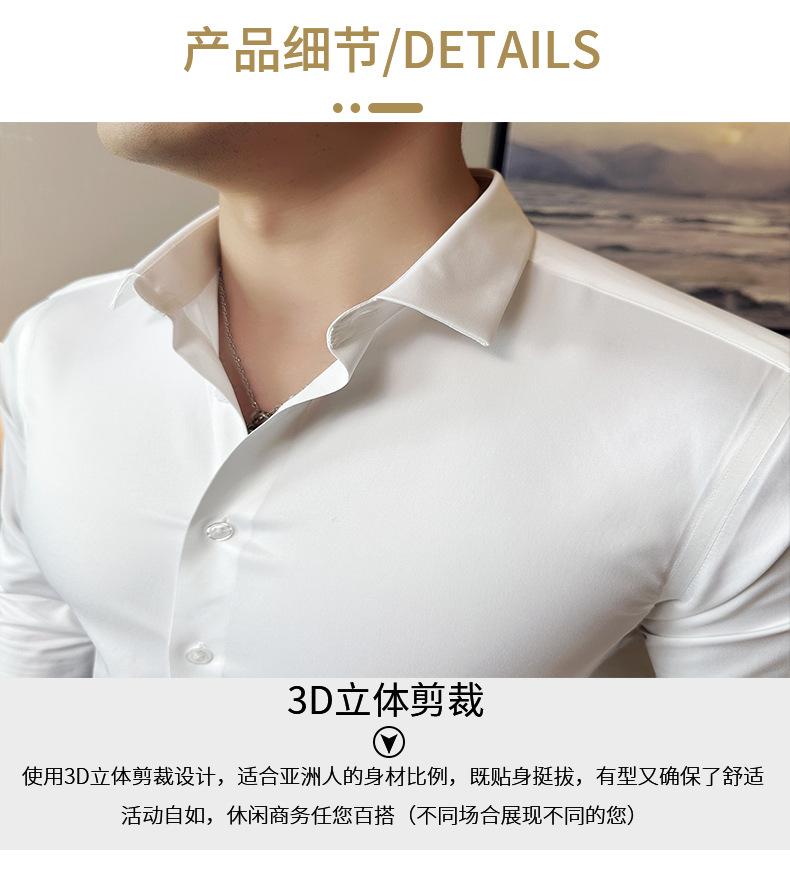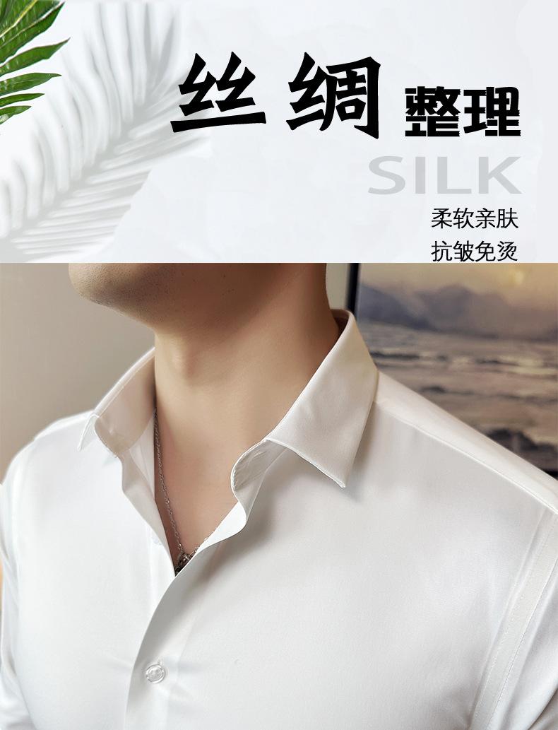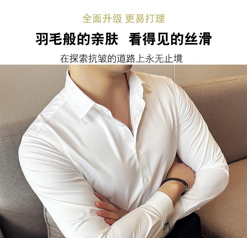 Camisa Business Casual de Seda sin Marcas de Manga Larga Blanca Sin Planchado Elástica Seda Transfronteriza Comercio Exterior Camisa Vestido para Hombre
