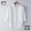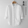 Camisa informal de lino para hombre, de primavera y verano, con solapa suelta y manga larga, C037