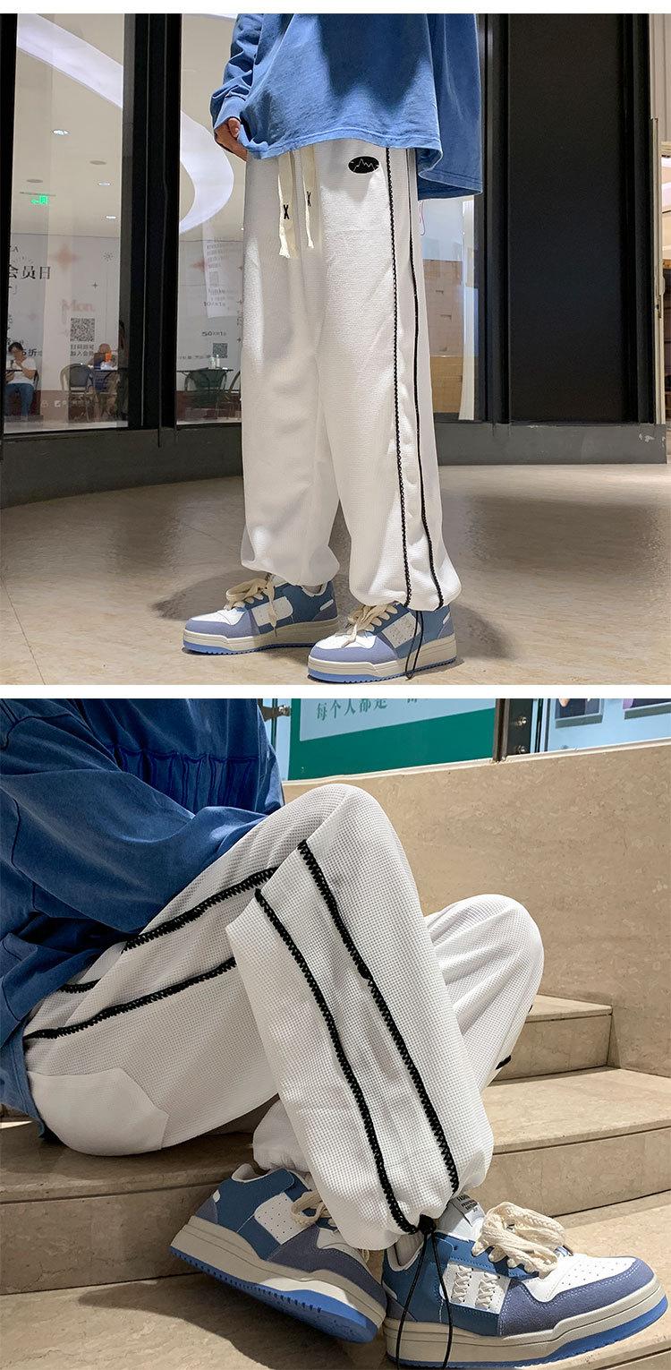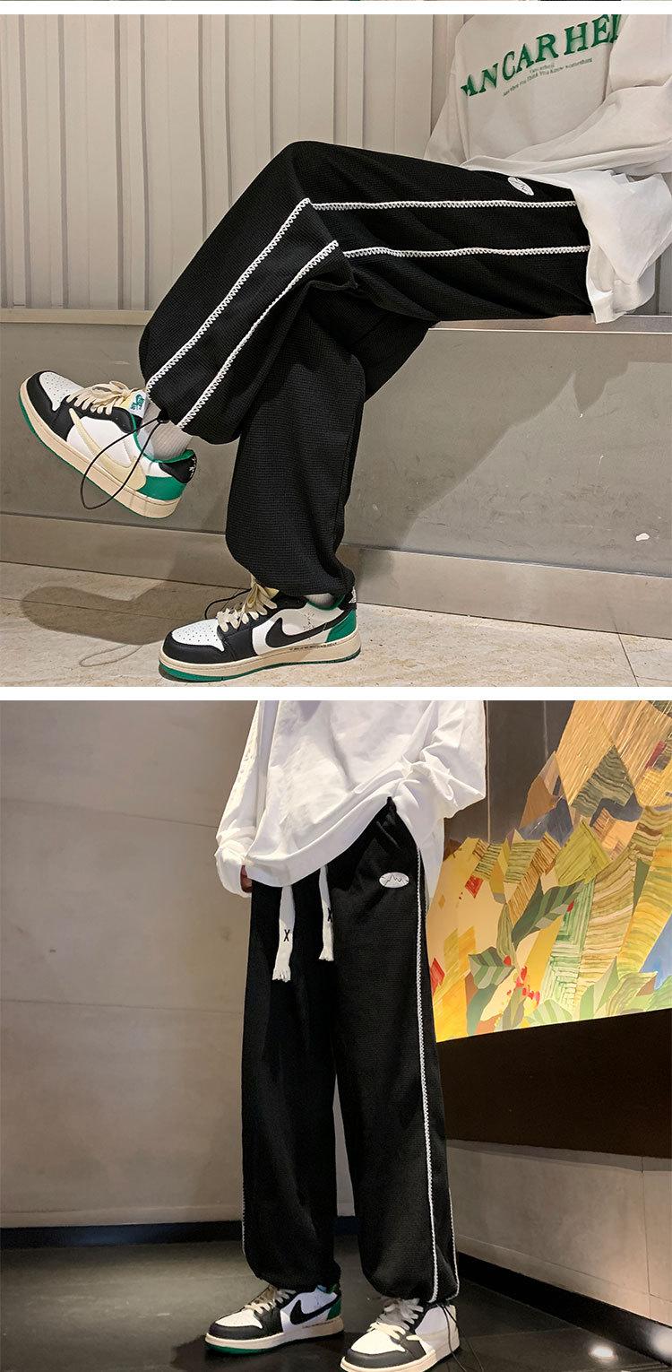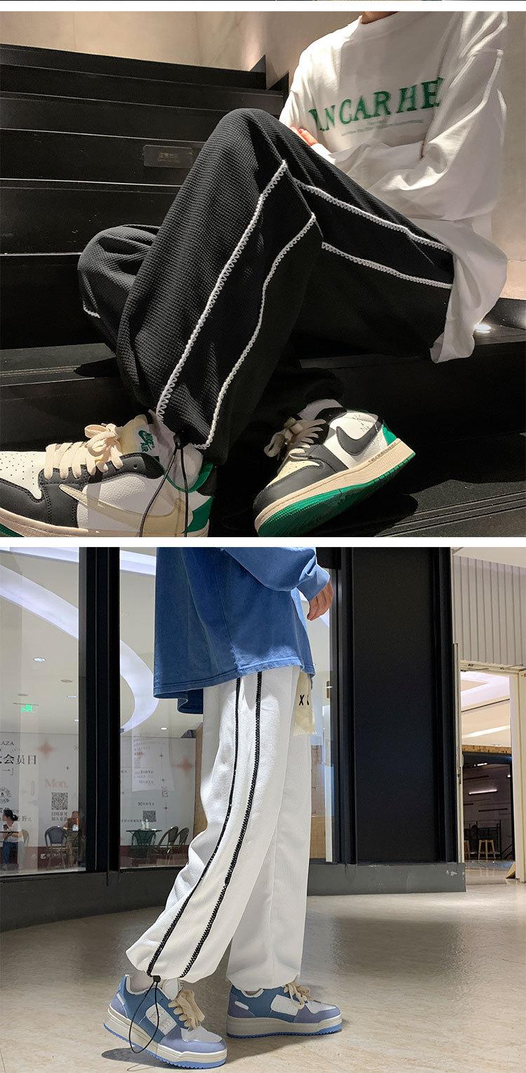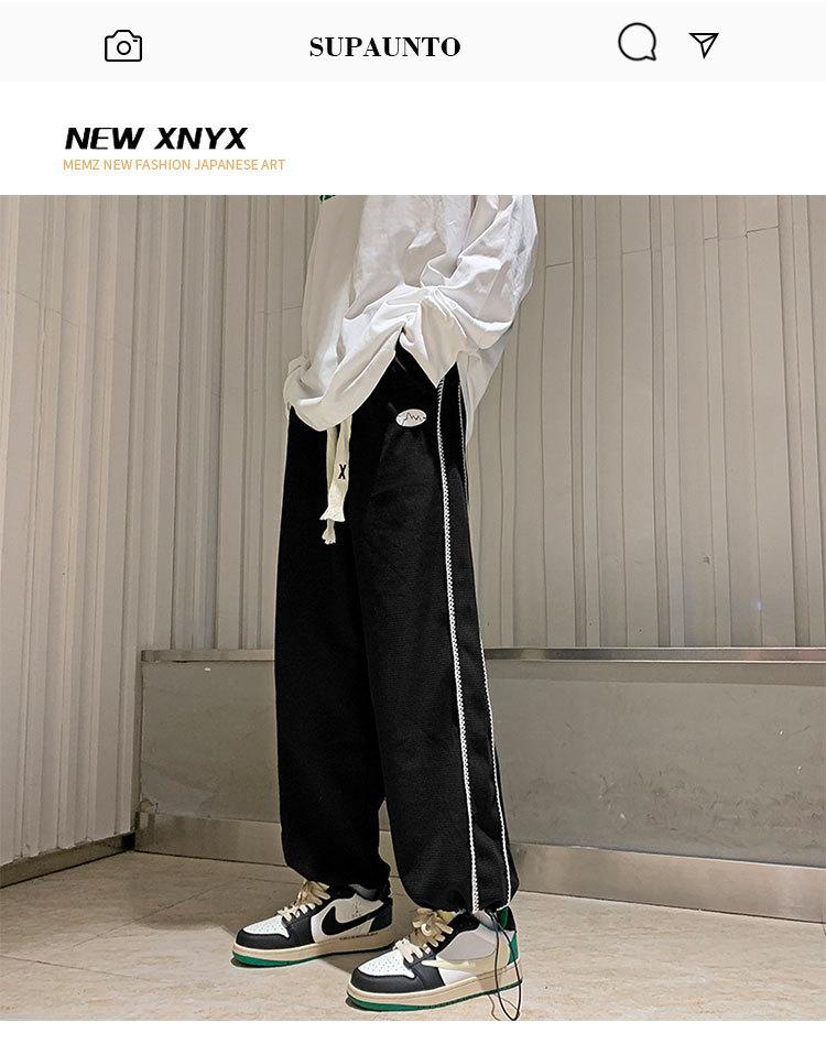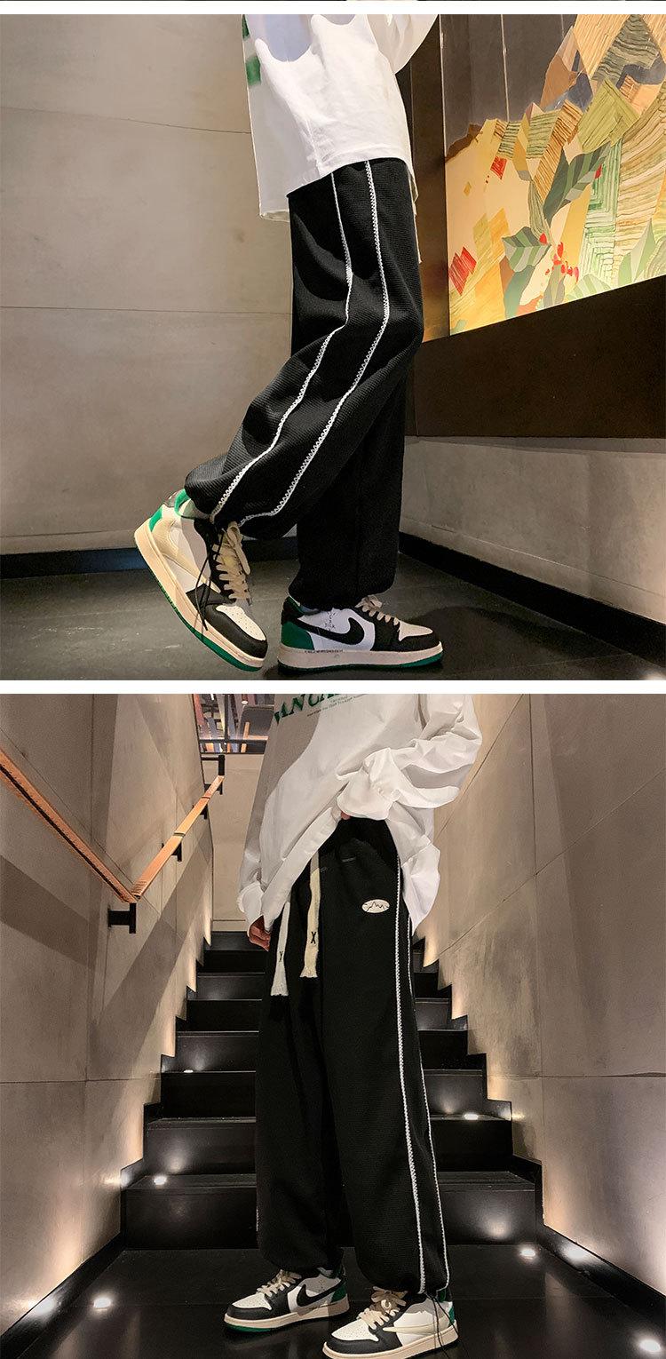 Pantalones casuales a rayas hasta el tobillo para hombre, primavera y otoño, estilo Harajuku, marca de moda, pantalones rectos holgados con cordón hasta el tobillo.