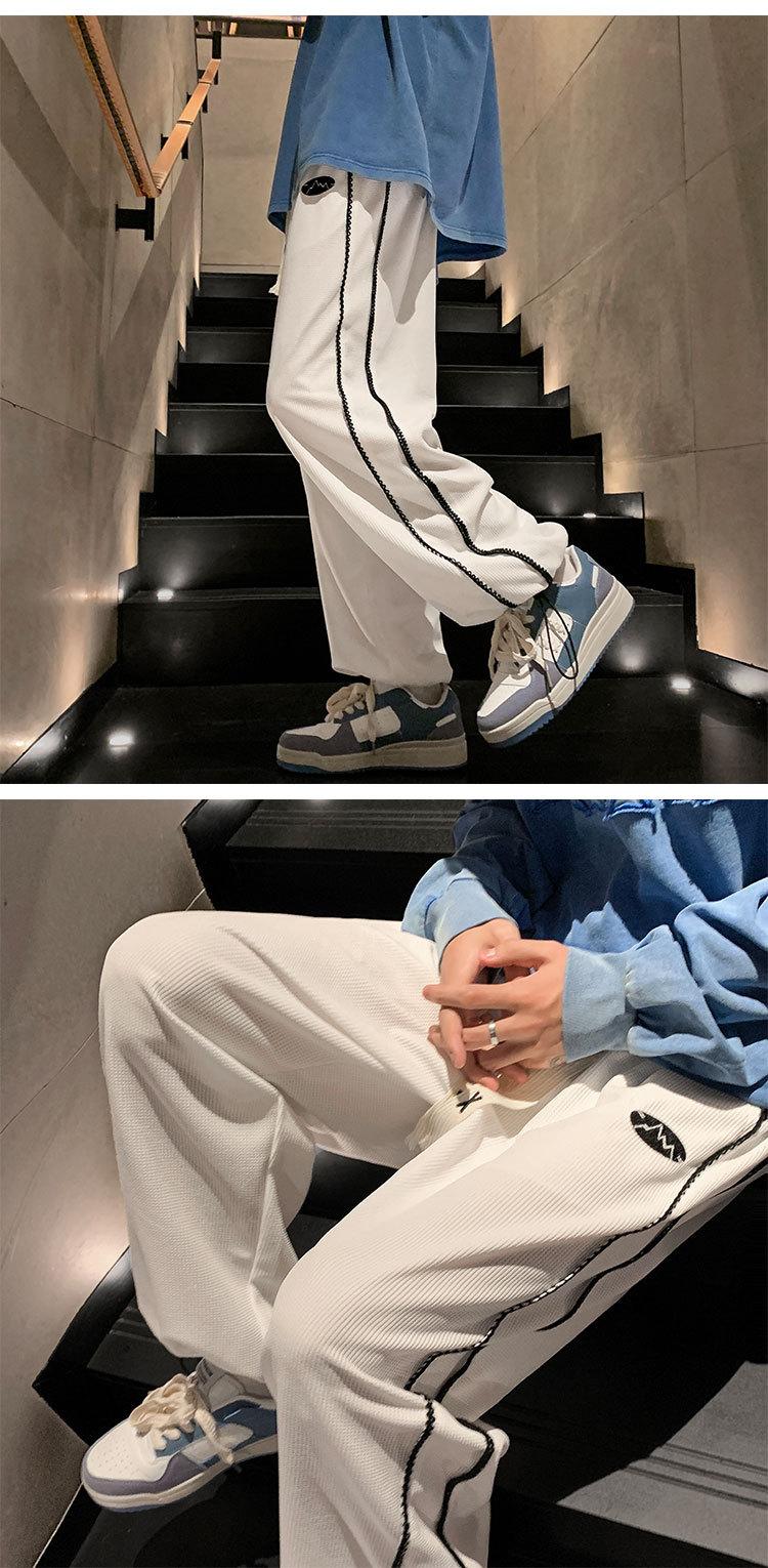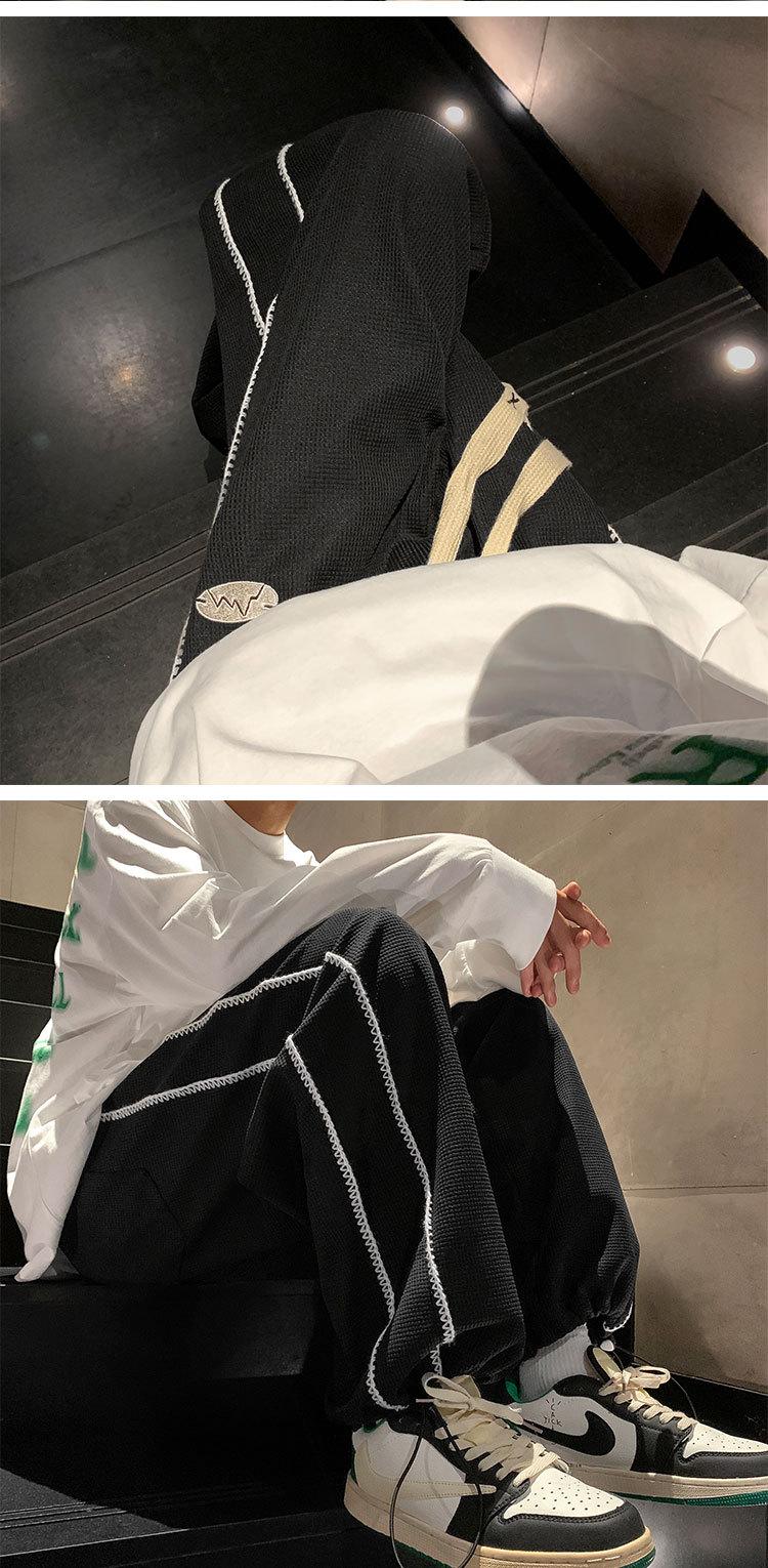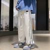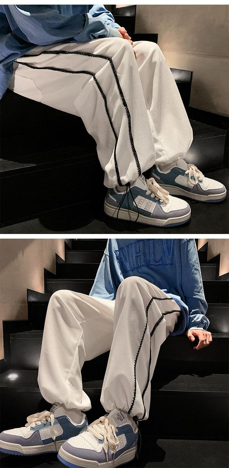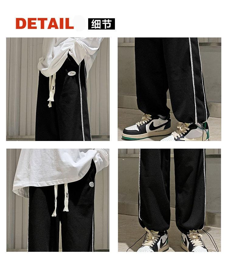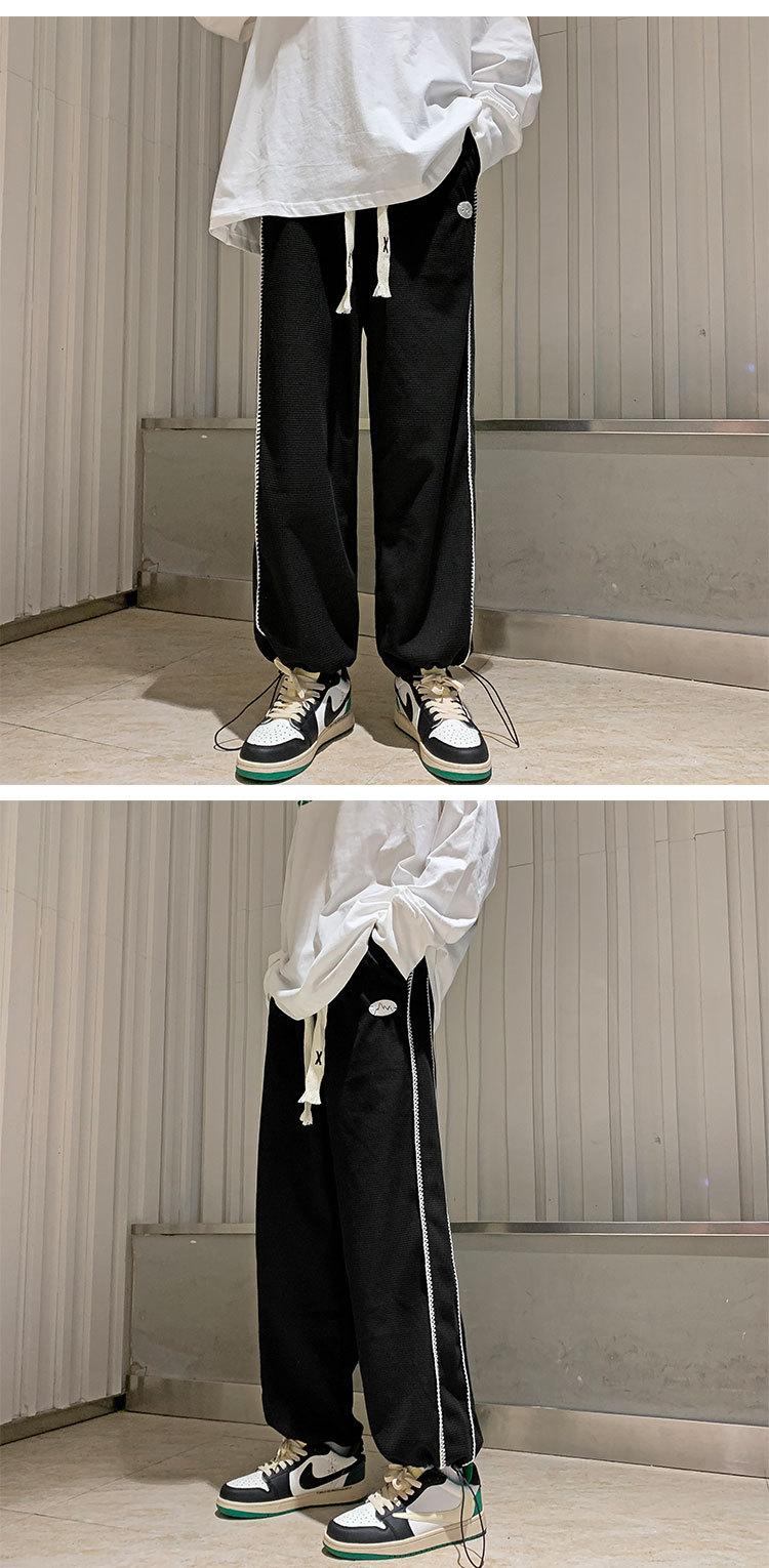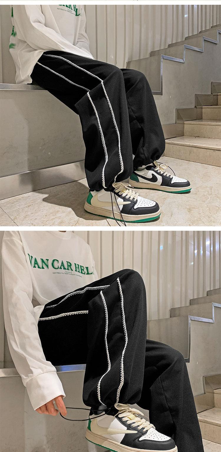 Pantalones casuales a rayas hasta el tobillo para hombre, primavera y otoño, estilo Harajuku, marca de moda, pantalones rectos holgados con cordón hasta el tobillo.