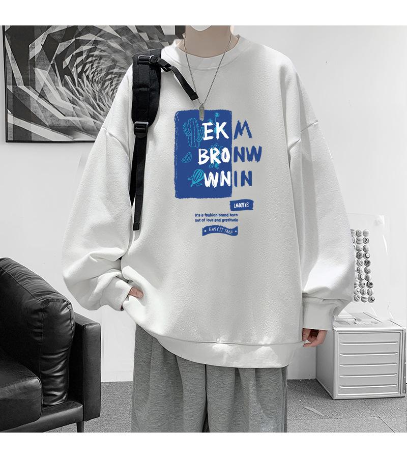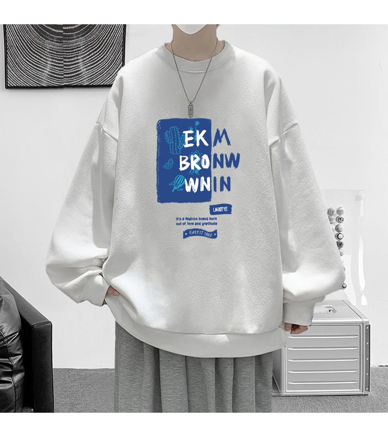 Suéter de cuello redondo para hombre, marca de moda de otoño, estampado suelto, manga larga, forro polar, grueso, invierno, tops para hombre y mujer, ropa para pareja