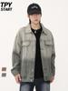 Chaqueta de mezclilla degradada retro americana de moda para hombre, primavera y otoño, ropa de trabajo urbana, ajuste holgado, top para hombre