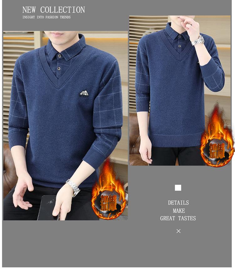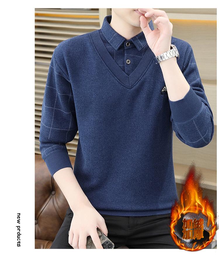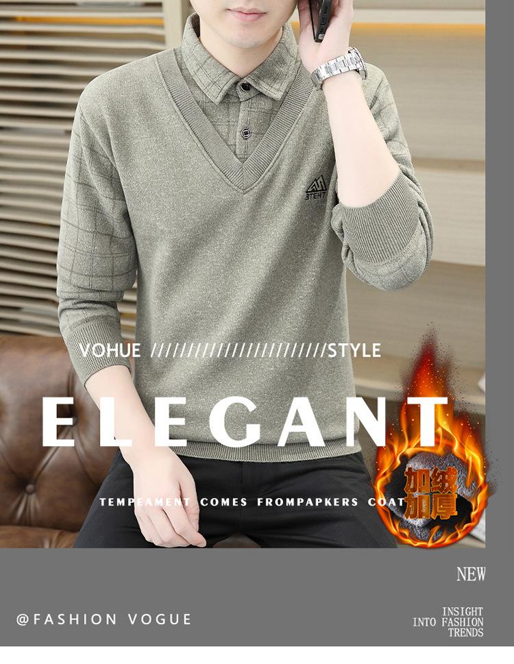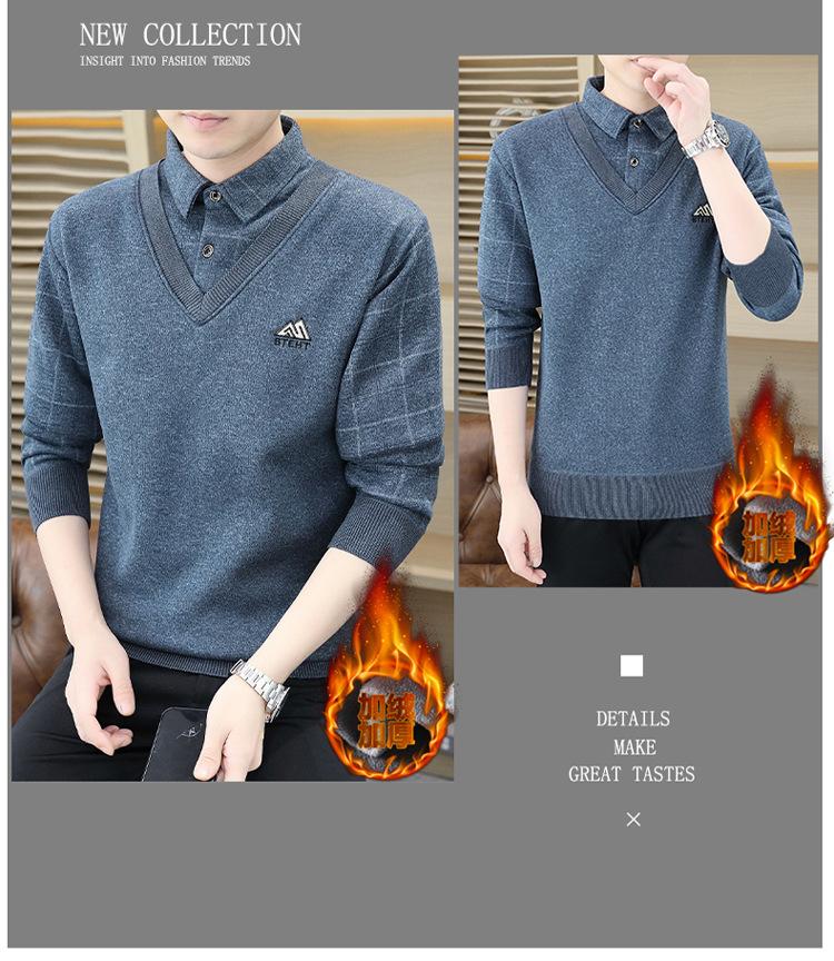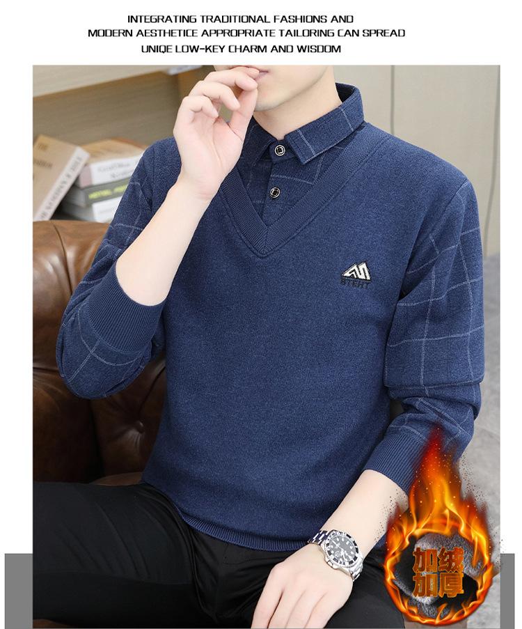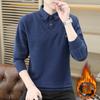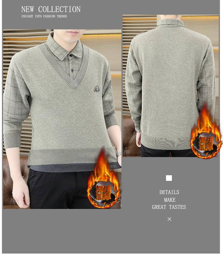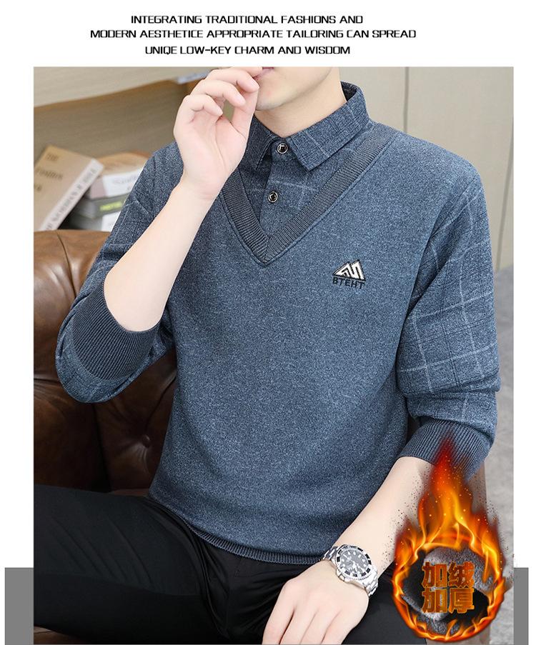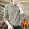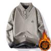 Suéter con Forro Polar Camisa de Cuello para Hombre Tejido de Punto a Cuadros Camiseta Base Engrosada Business Casual Tejido de Punto de Dos Piezas Falso Invierno