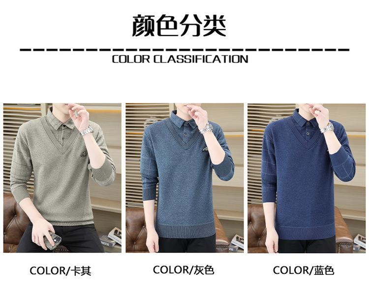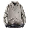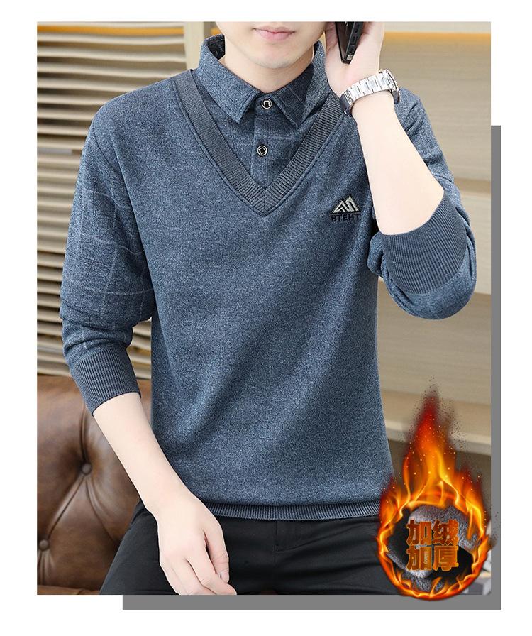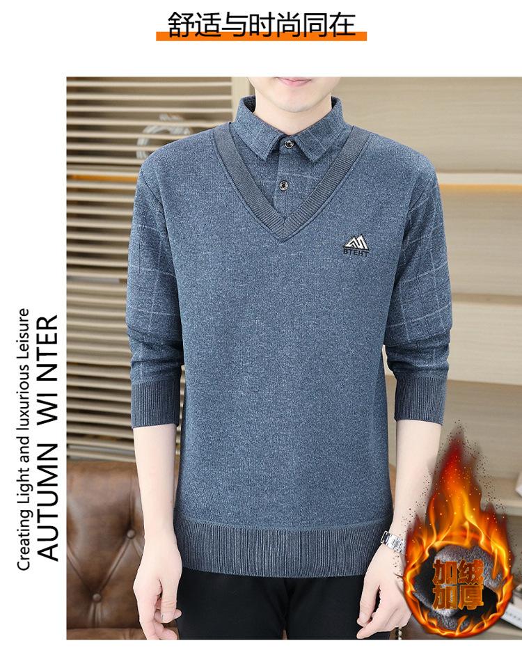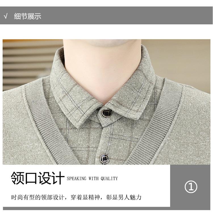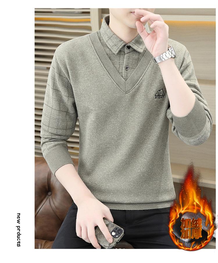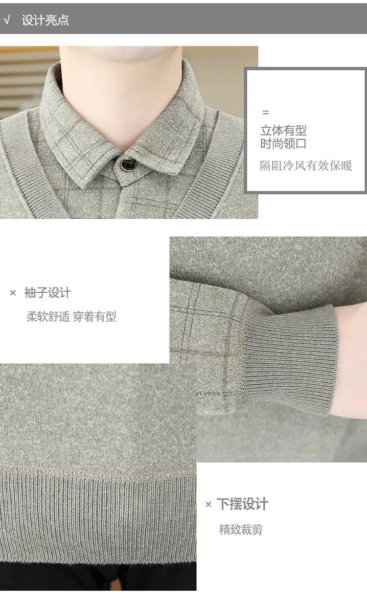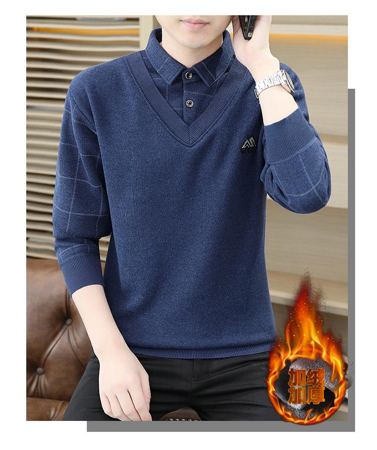 Suéter con Forro Polar Camisa de Cuello para Hombre Tejido de Punto a Cuadros Camiseta Base Engrosada Business Casual Tejido de Punto de Dos Piezas Falso Invierno