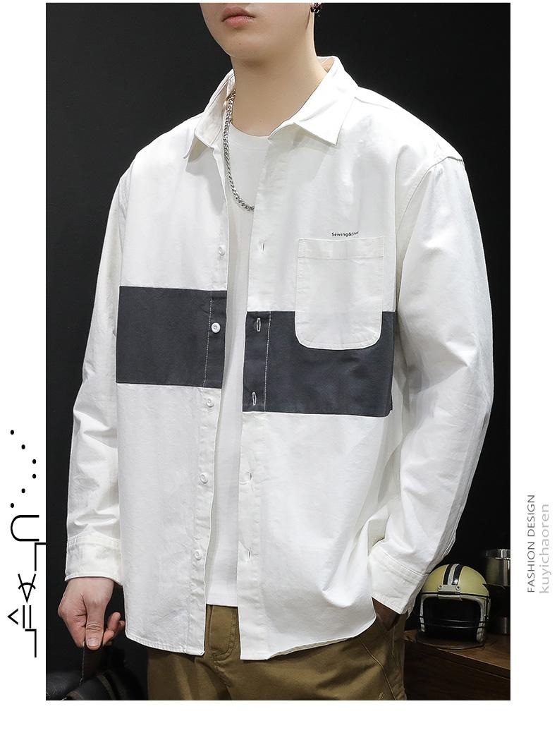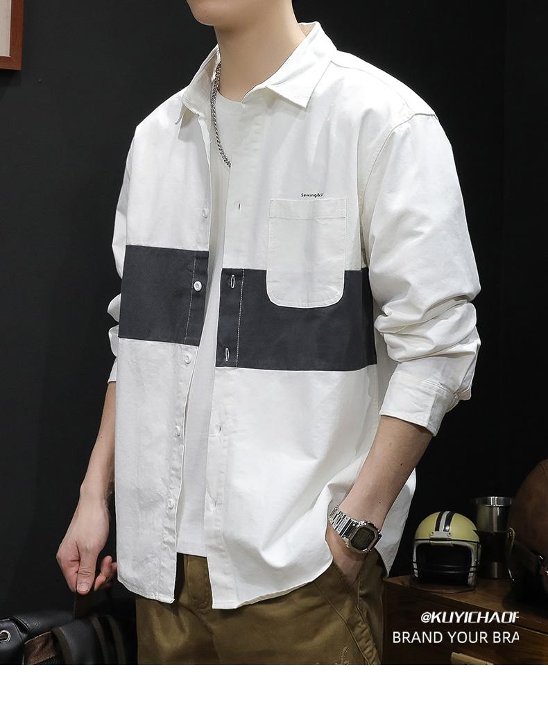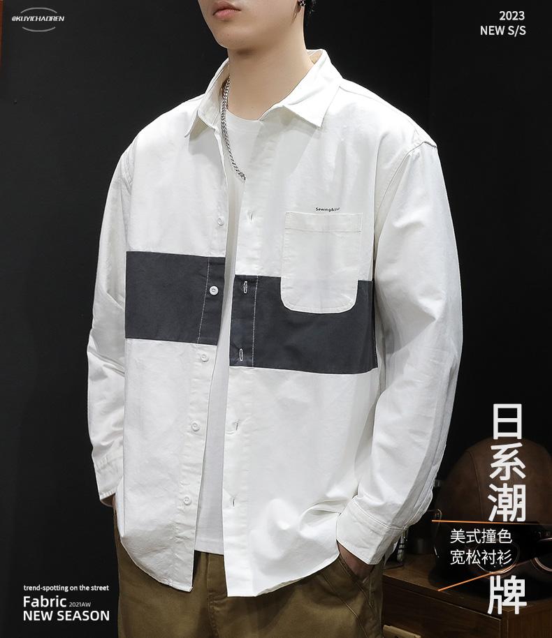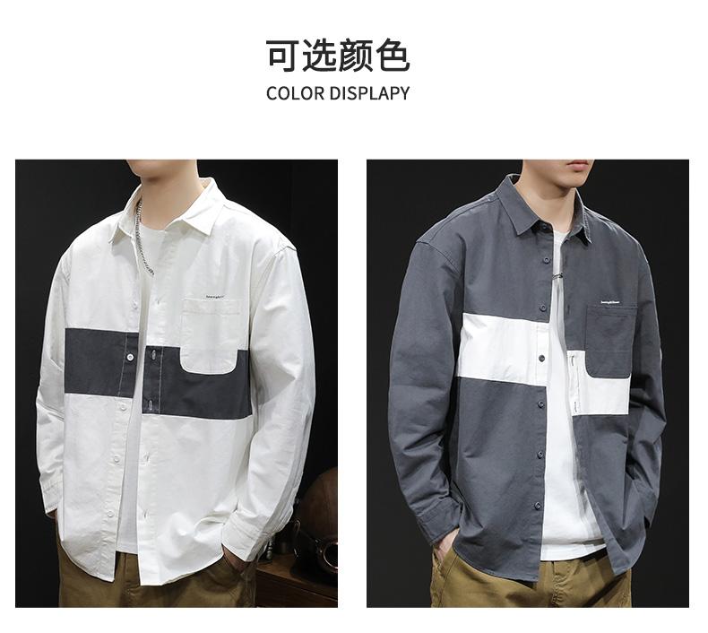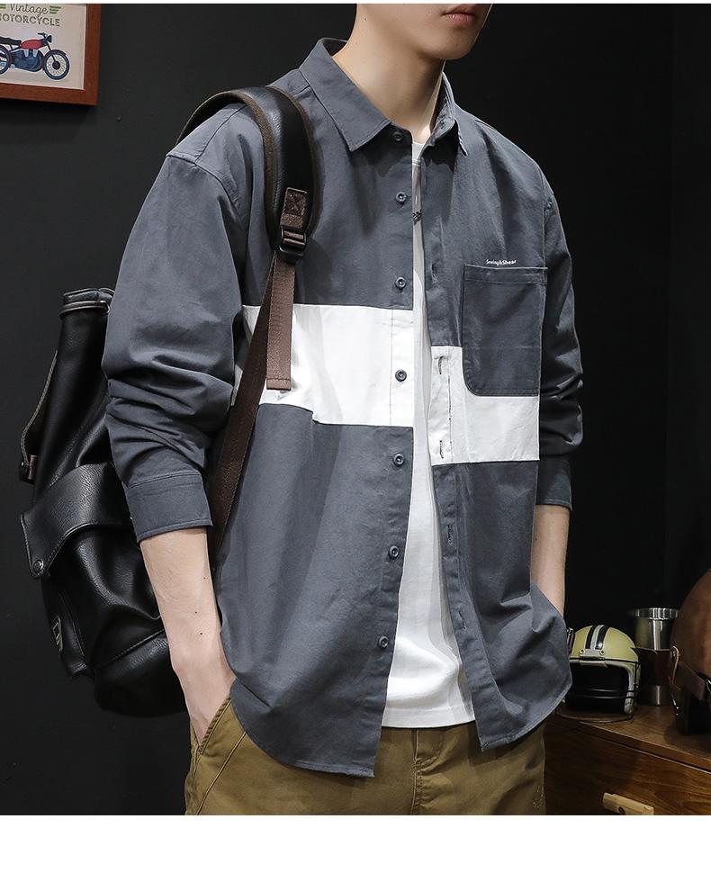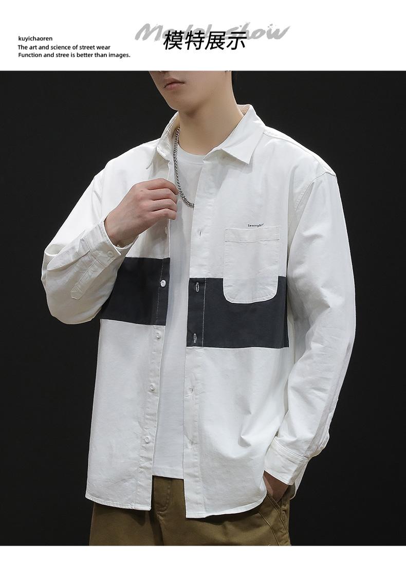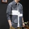 Camisa de hombre con costuras en contraste de color, chaqueta, camisa de manga larga, informal, primavera y otoño 2024, nueva camisa de primavera, estilo americano.