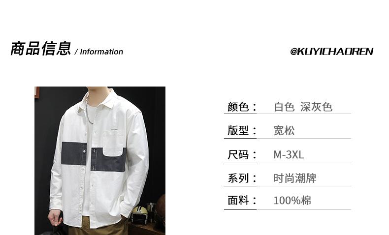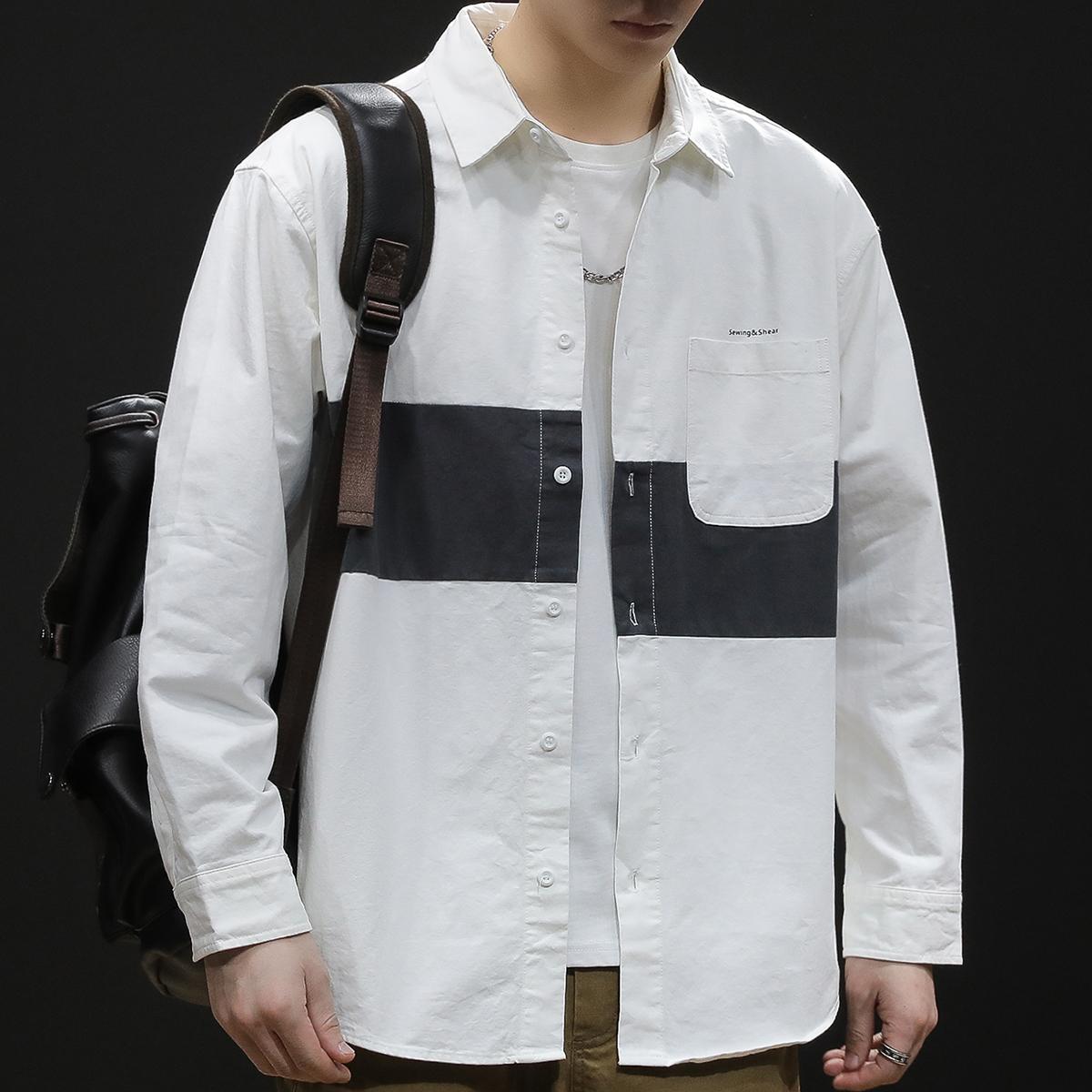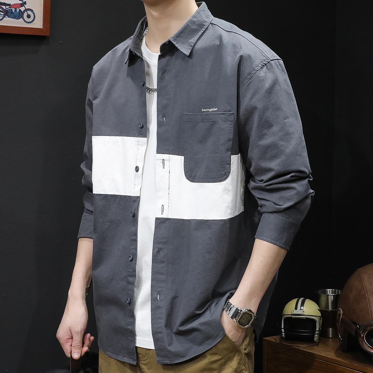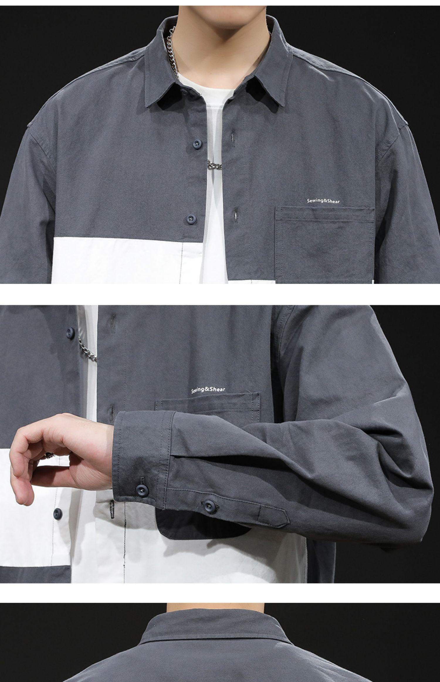 Camisa de hombre con costuras en contraste de color, chaqueta, camisa de manga larga, informal, primavera y otoño 2024, nueva camisa de primavera, estilo americano.