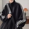 Verano nuevo suéter de hombre con cuello alto marca de moda versátil a rayas guapo estudiante delgado ropa deportiva chaqueta casual