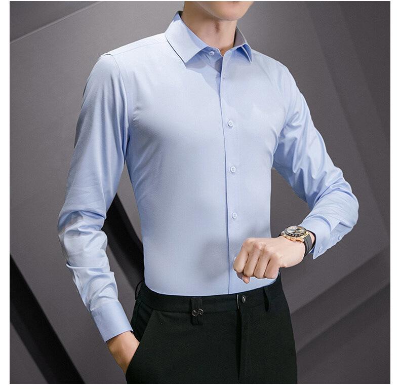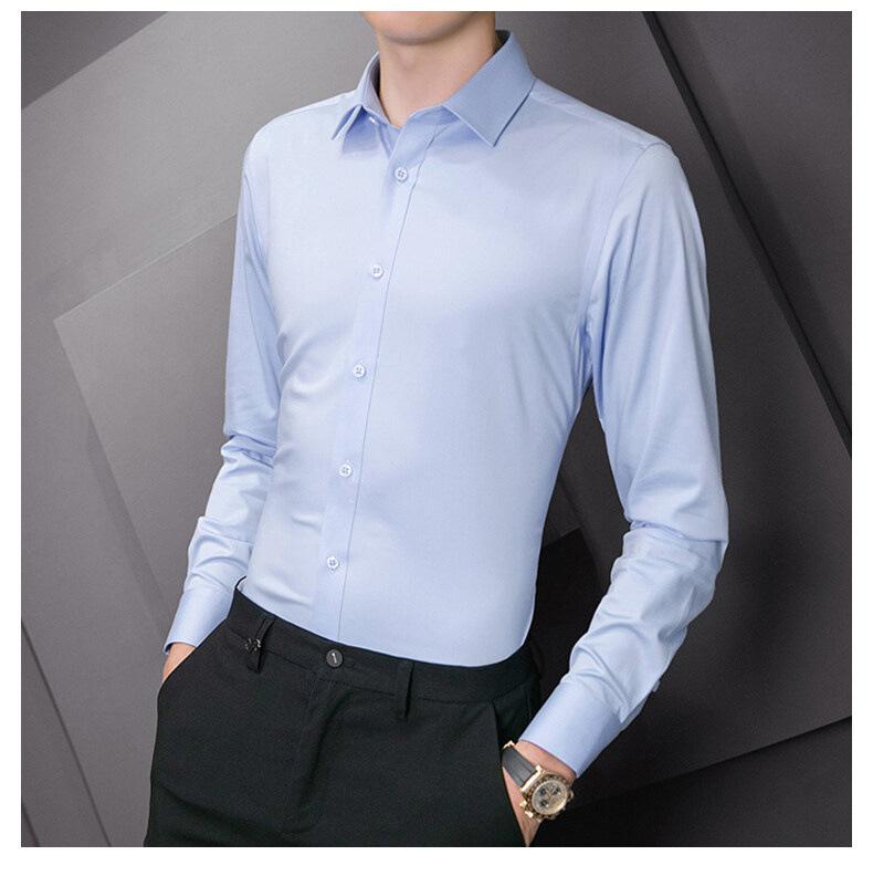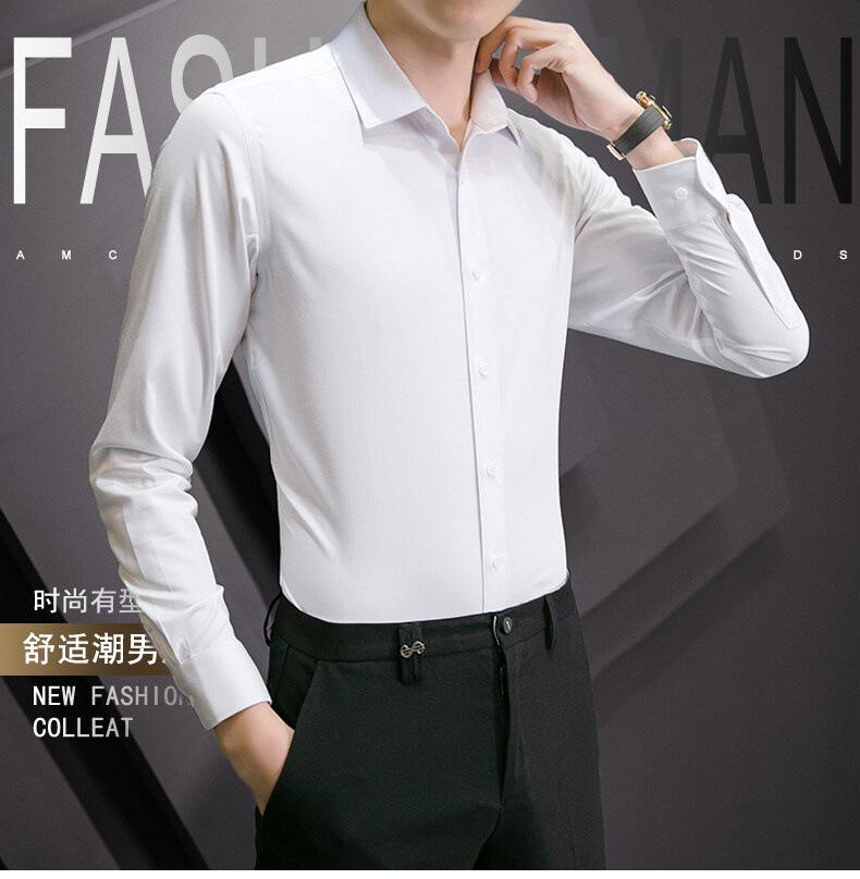 Camisa de manga larga para hombre, nueva camisa de primavera y otoño para jóvenes, de negocios, profesional, sin plancha, de color sólido, informal, blanca, al por mayor