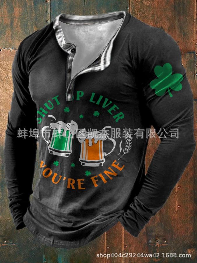 Polo de primavera y otoño 2023, camiseta de manga larga con estampado de comercio exterior para hombre, camiseta de cambio de luz de estación independiente