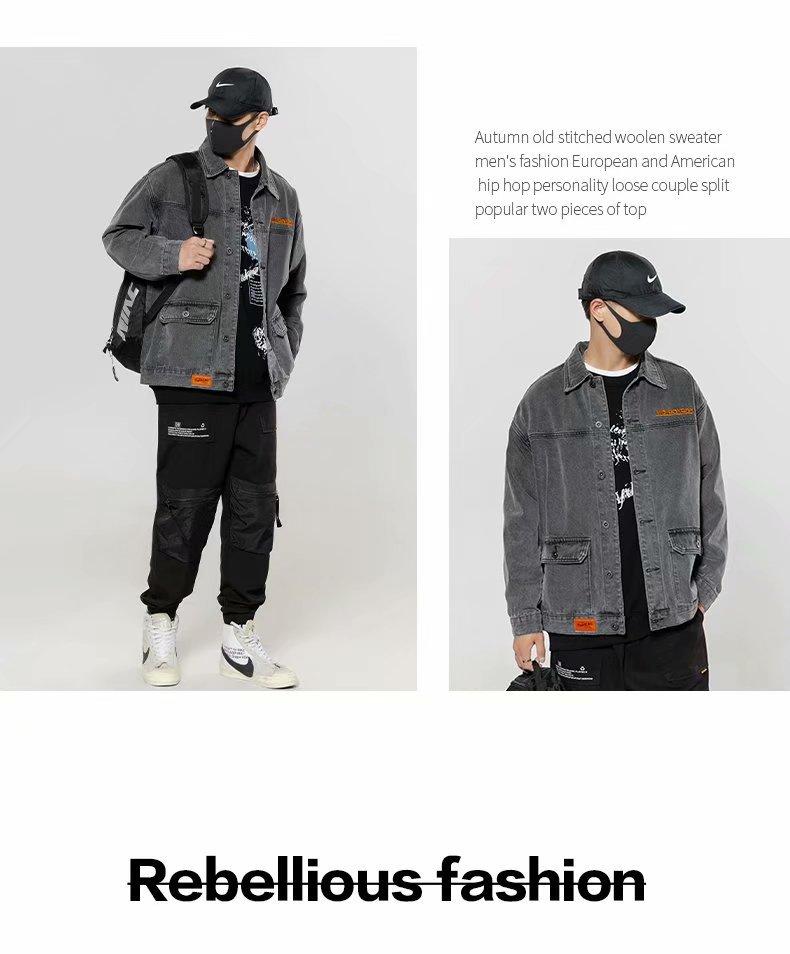 Chamarra de mezclilla funcional para hombre Moda nacional Primavera y otoño Ropa exterior holgada Yuppie Guapo Chaqueta holgada para hombre Ropa superior retro