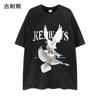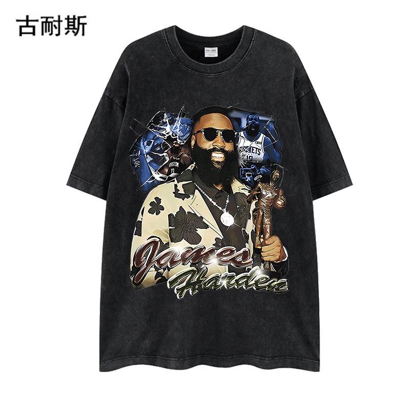 Amazon LAZADA - Camiseta de manga corta de algodón pesado, desgastada, estilo europeo y americano, de marca de moda, para niños, cuello redondo