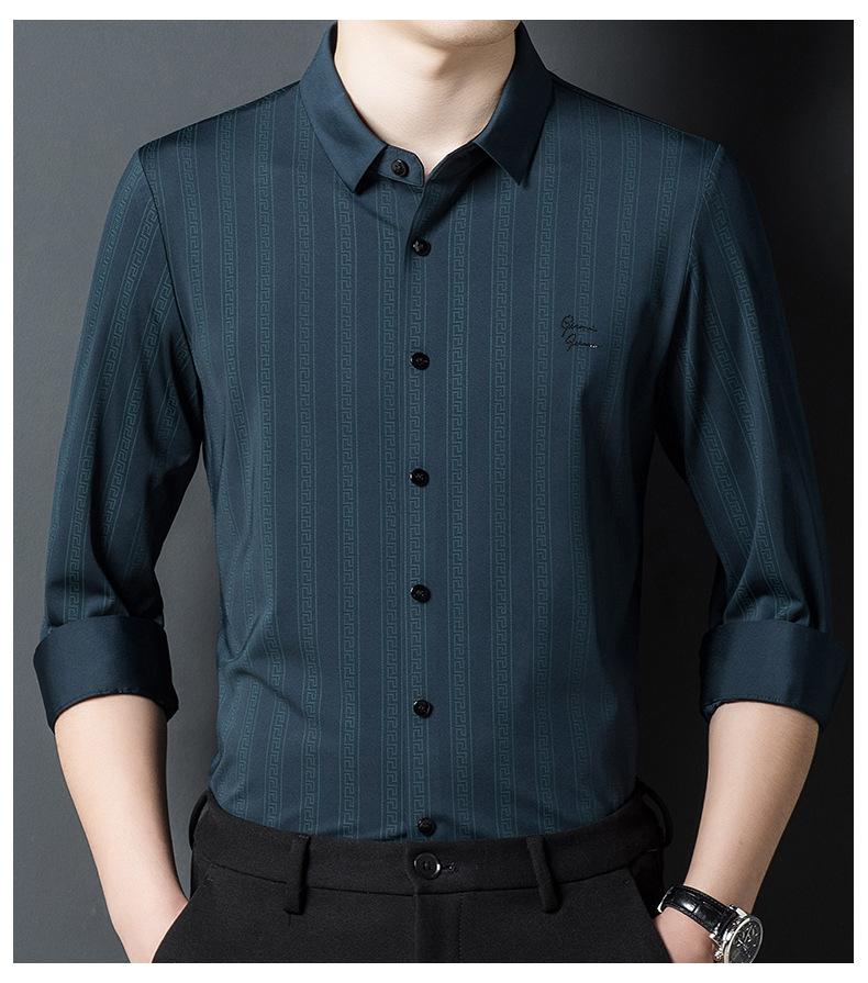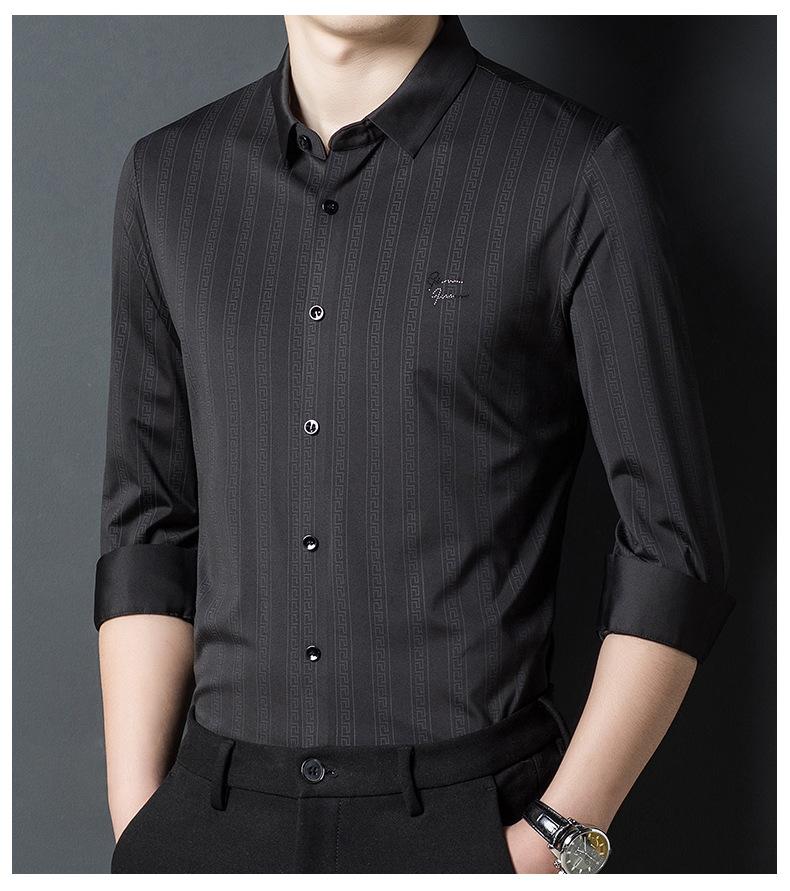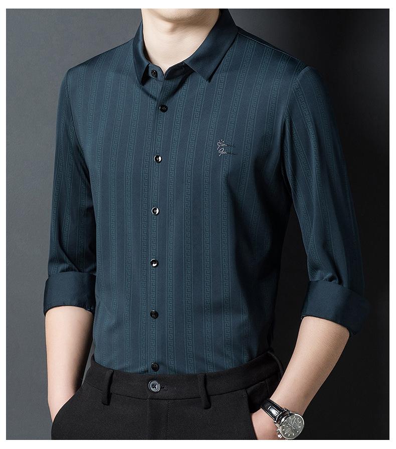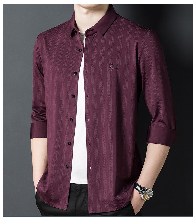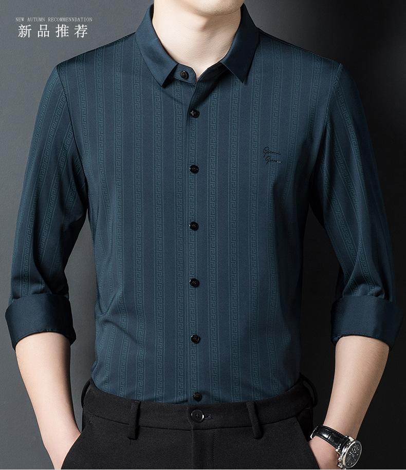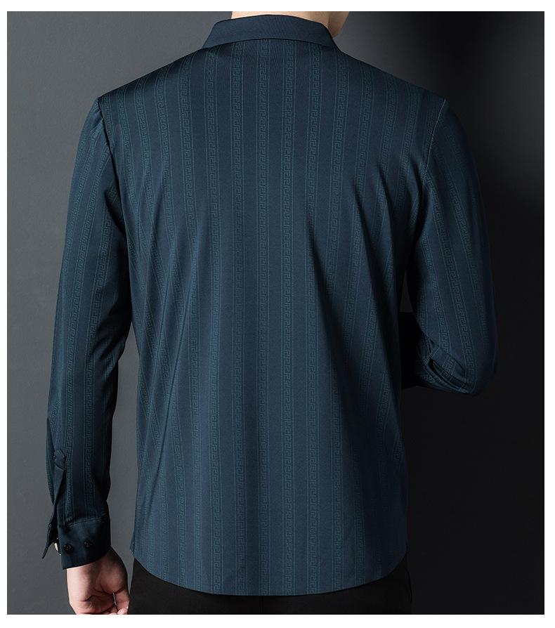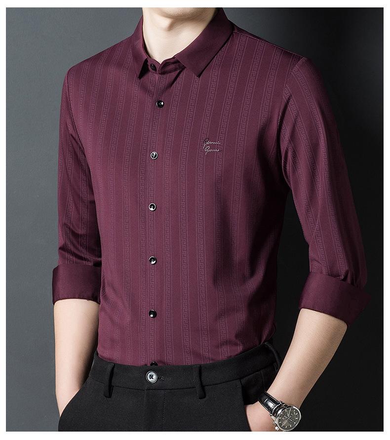 Treinta Otoño Punto Camisa Sin Costuras Primavera y Otoño Nuevo Estilo Sin Planchar Manga Larga Mediana Edad Business Casual Camisa Boda Top de Hombre