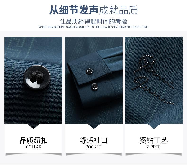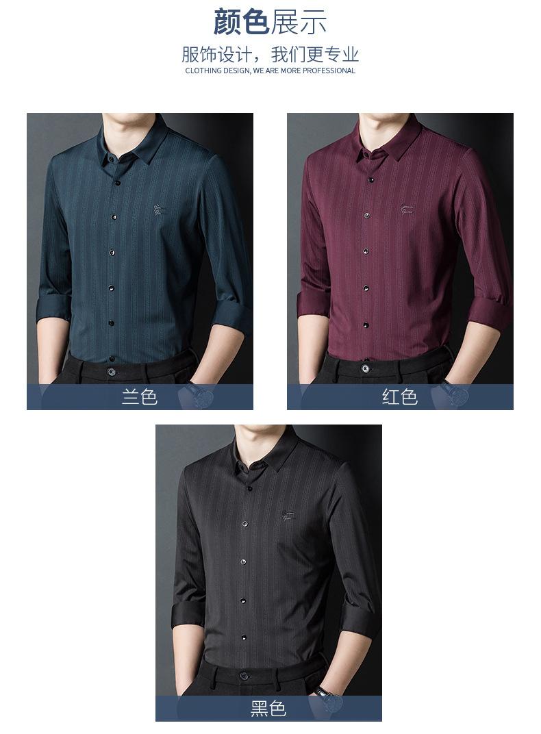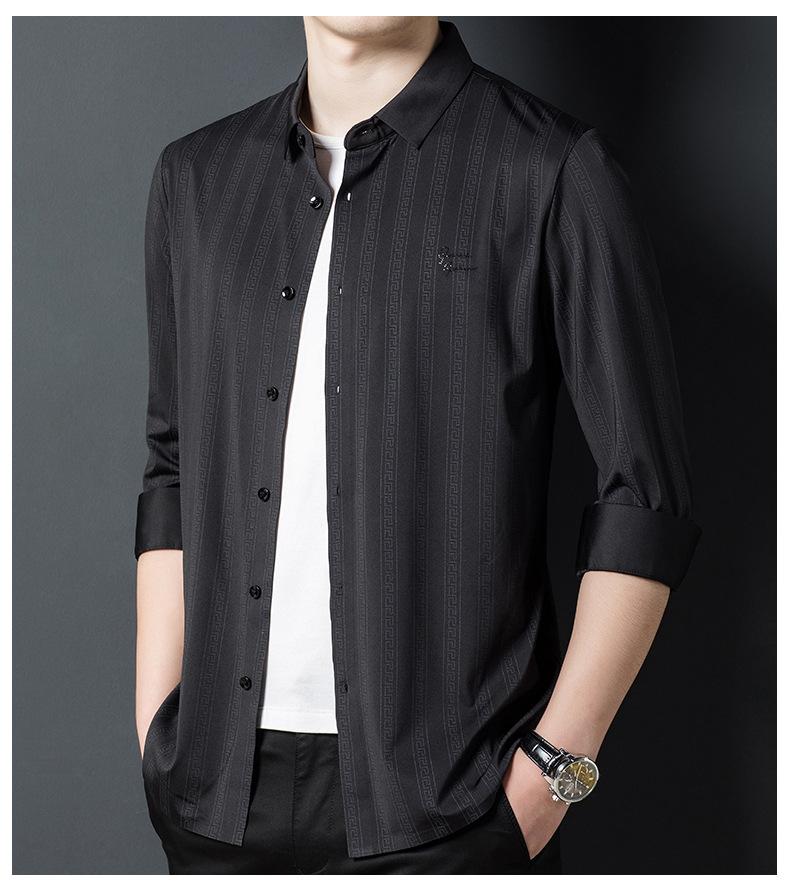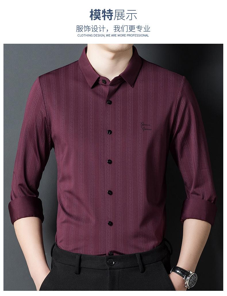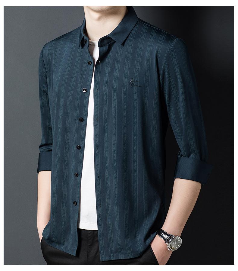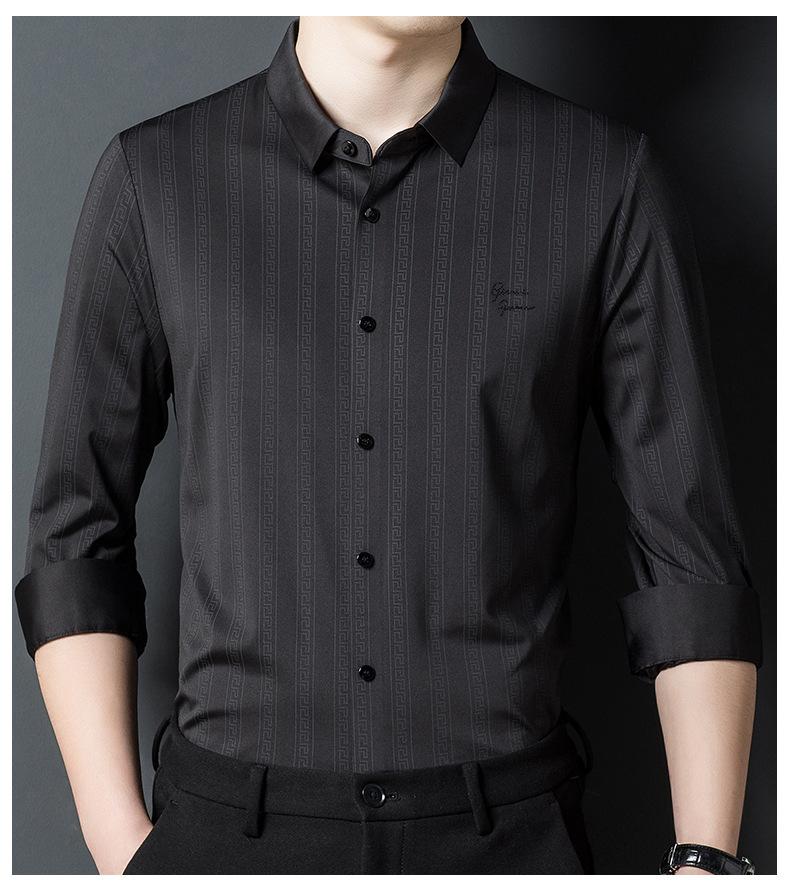 Treinta Otoño Punto Camisa Sin Costuras Primavera y Otoño Nuevo Estilo Sin Planchar Manga Larga Mediana Edad Business Casual Camisa Boda Top de Hombre