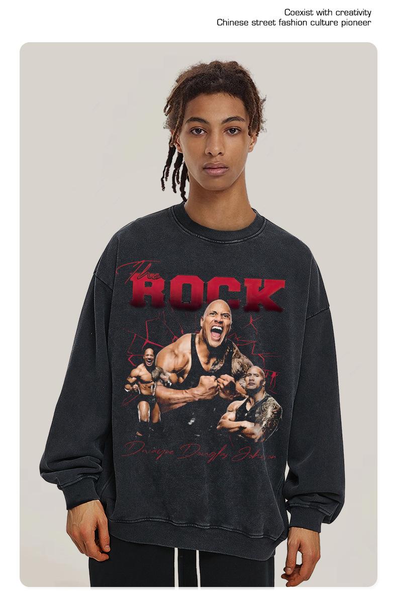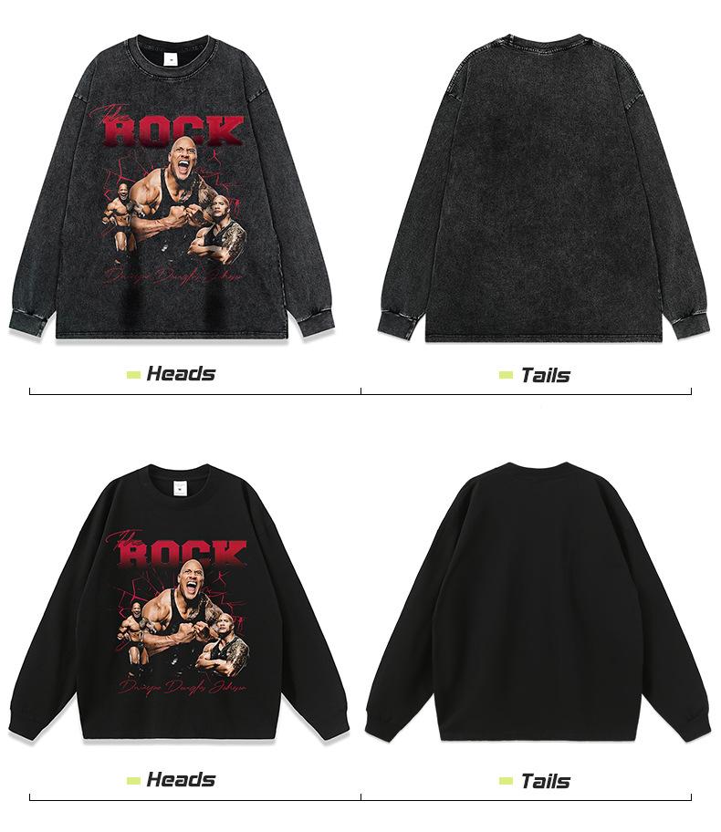 Compra Camiseta de manga larga extragrande lavada con estampado de estrellas para hombre y mujer con estampado de personajes de lucha libre de hip hop callejero retro al por mayor en Joom.pro