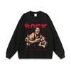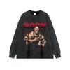 Camiseta de manga larga extragrande lavada con estampado de estrellas para hombre y mujer con estampado de personajes de lucha libre de hip hop callejero retro