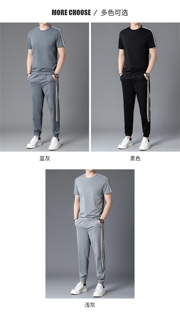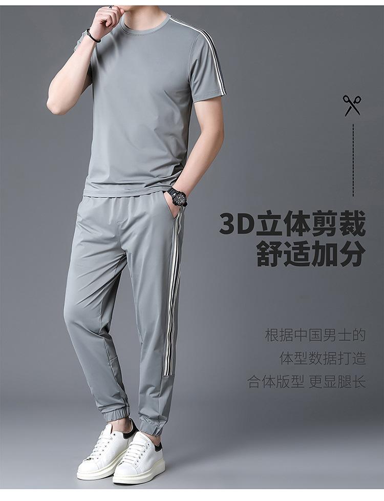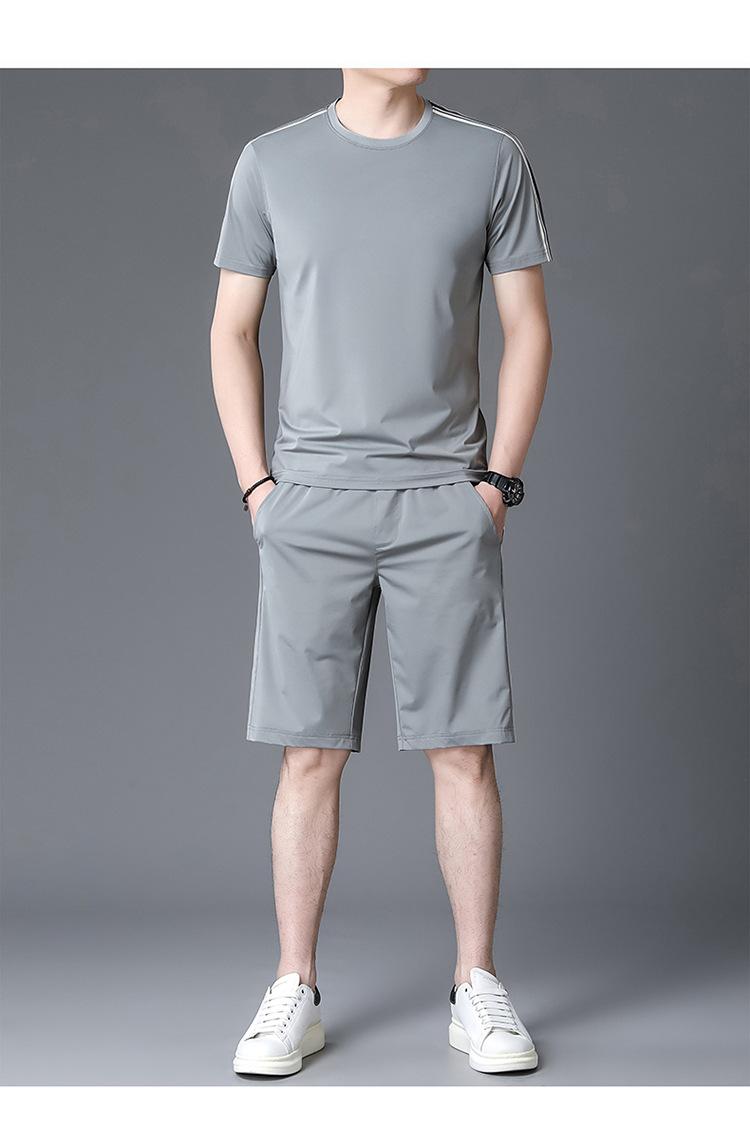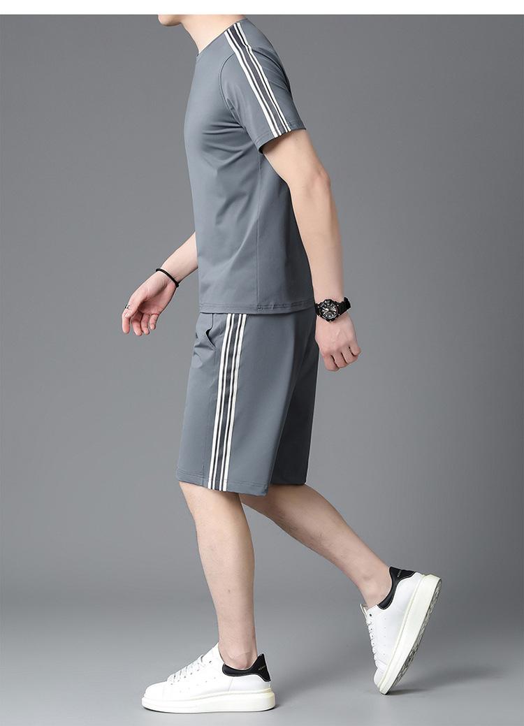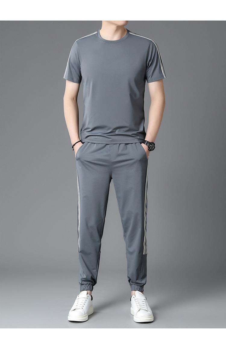 Conjunto de dos piezas de manga corta para hombre de verano 2025, camiseta casual de moda, pantalones deportivos holgados, traje de tres piezas de seda de hielo