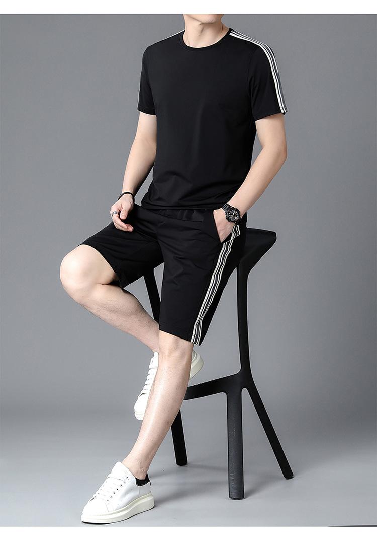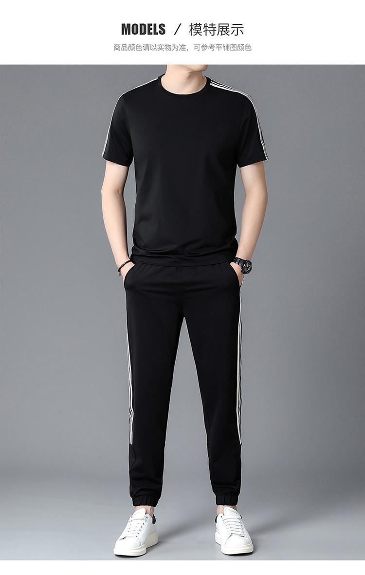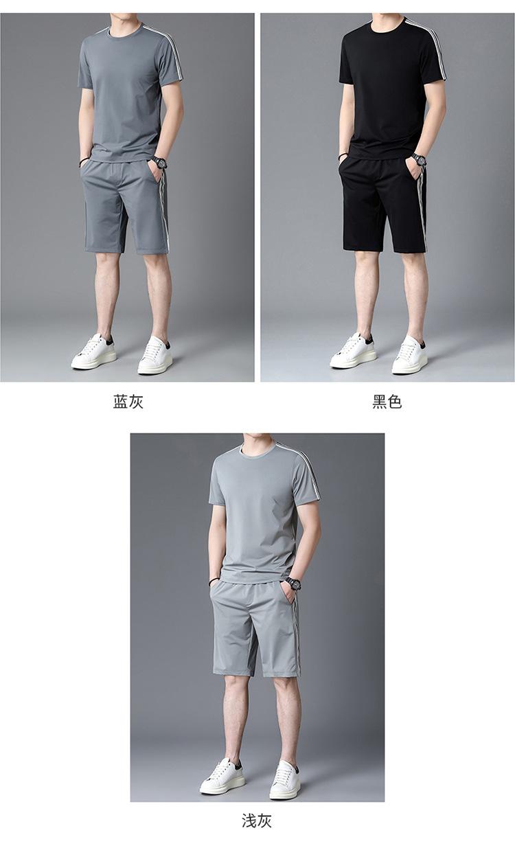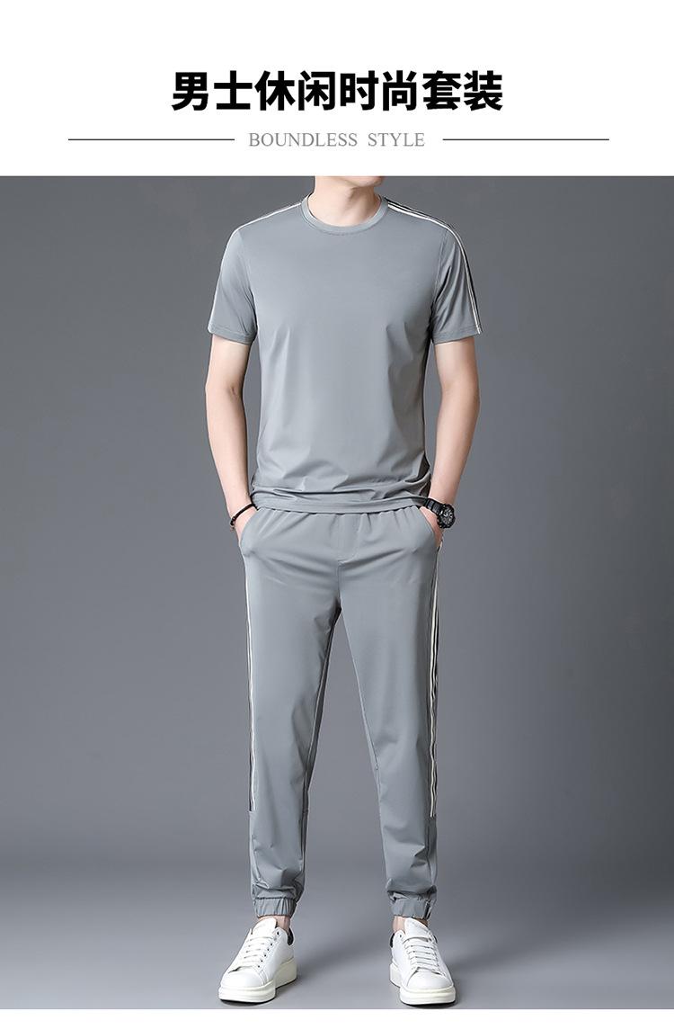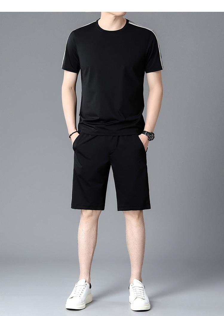 Conjunto de dos piezas de manga corta para hombre de verano 2025, camiseta casual de moda, pantalones deportivos holgados, traje de tres piezas de seda de hielo