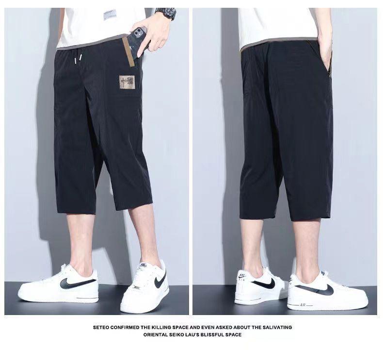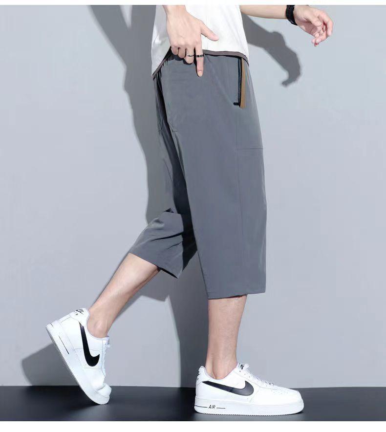 Pantalones cortos para hombre, de verano, finos, informales, holgados, de marca de moda, de seda de hielo, deportivos, transpirables, con aire acondicionado, de secado rápido, para hombre