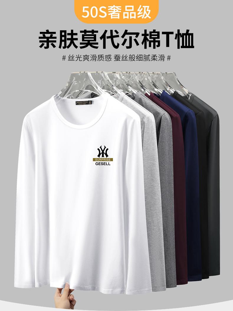 Camiseta de manga larga modal para hombre, primavera y otoño, camisa interior fina y ajustada, camiseta de otoño, camiseta superior para hombre