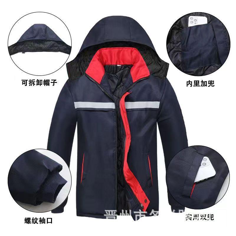 Ropa de trabajo de invierno para hombre con tiras reflectantes gruesas, chaqueta acolchada de algodón, abrigo de seguridad de longitud media con acolchado de algodón, ropa de protección laboral a prueba de frío y calor.