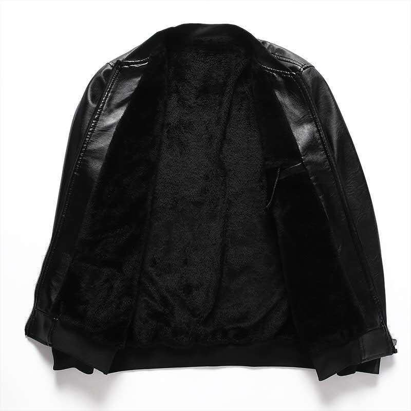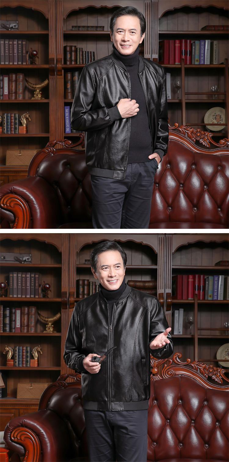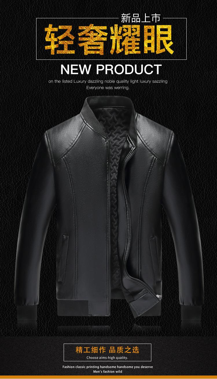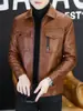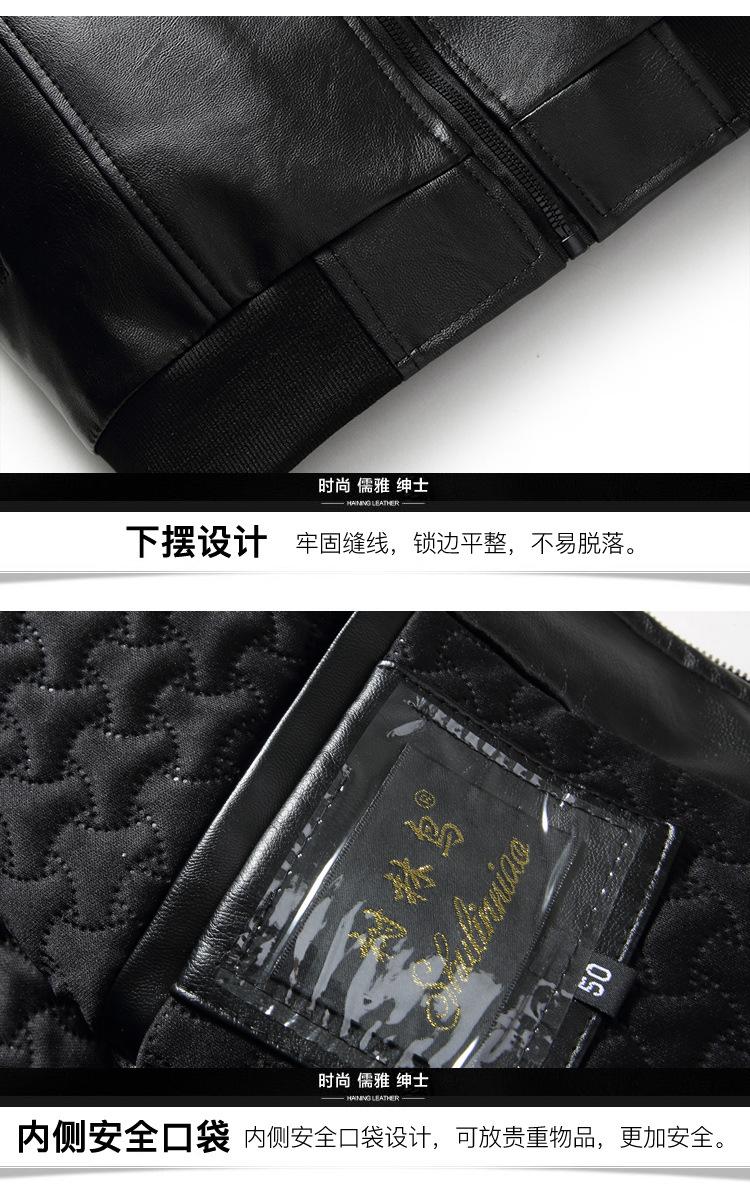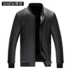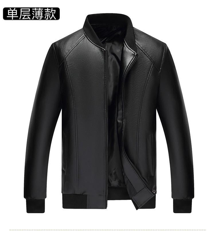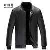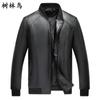 Chaqueta de cuero Forest Bird para hombres de negocios de mediana edad y mayores, chaqueta de cuero con cuello de béisbol fino, chaqueta de cuero para correr ríos y lagos.