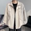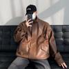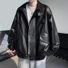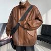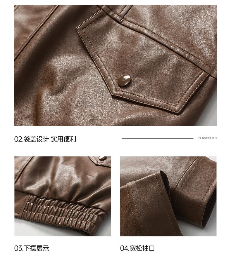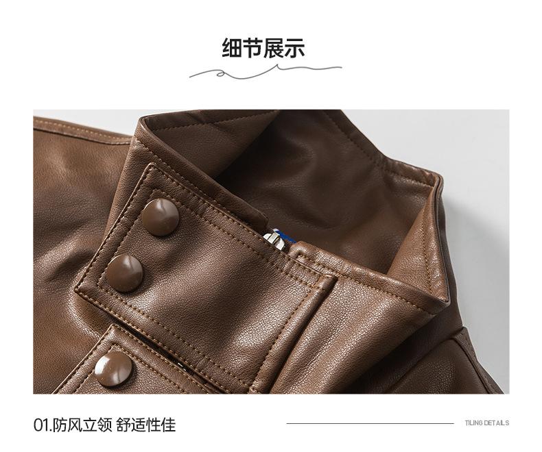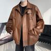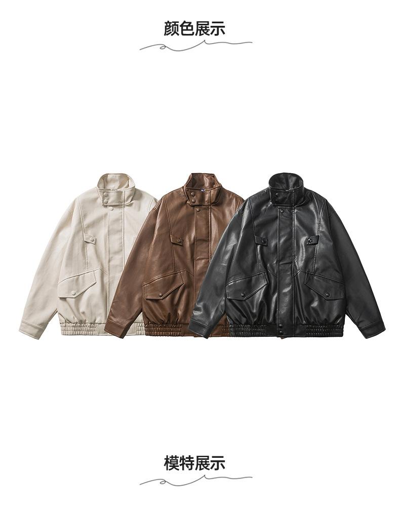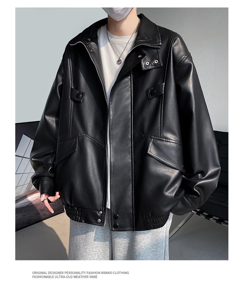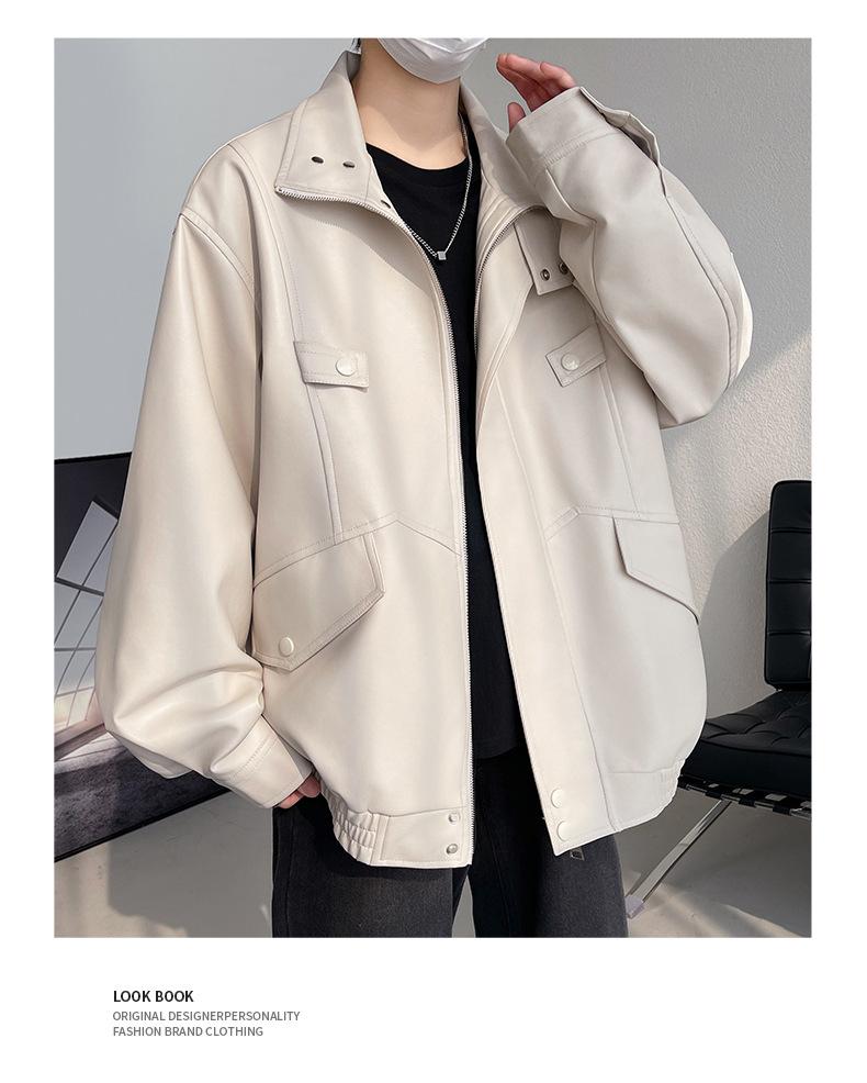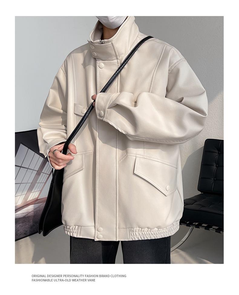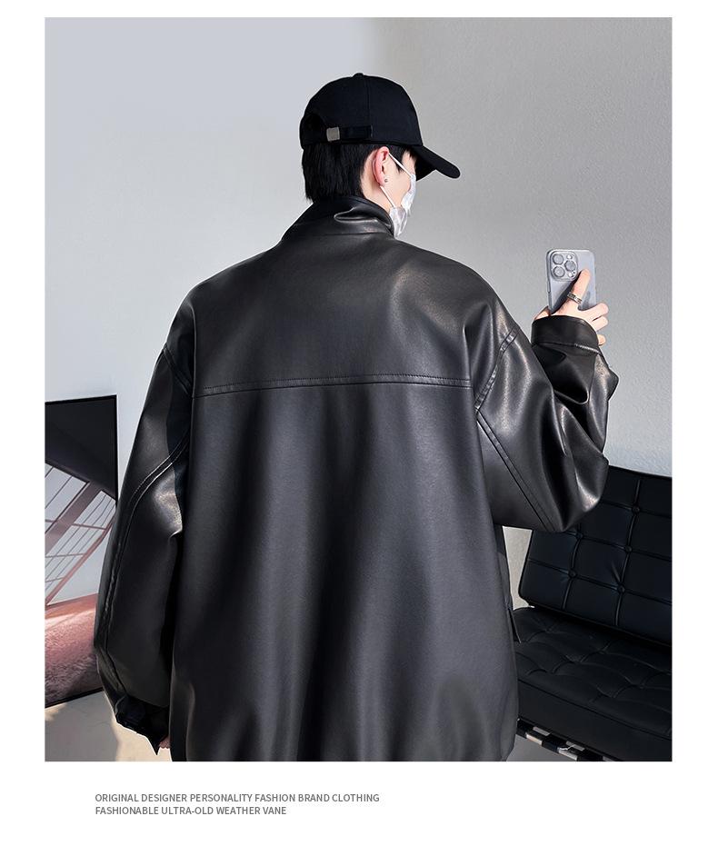 Chaqueta de cuero de motocicleta con cuello alto para hombre, abrigo de cuero de marca de moda de color sólido estadounidense para hombre, abrigo nuevo de primavera y otoño