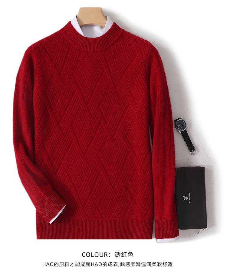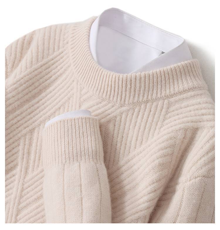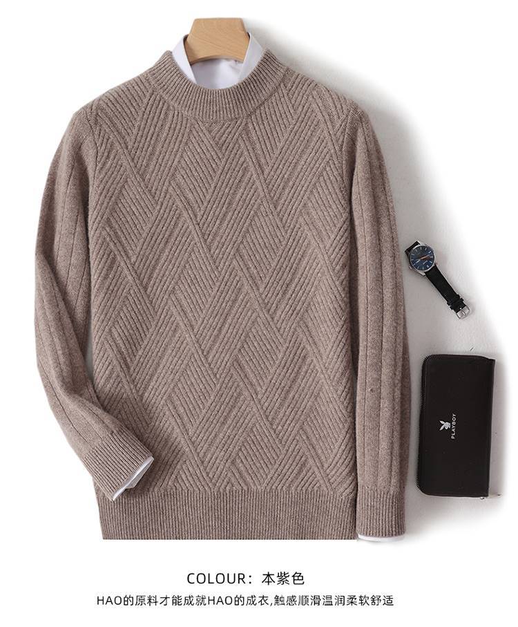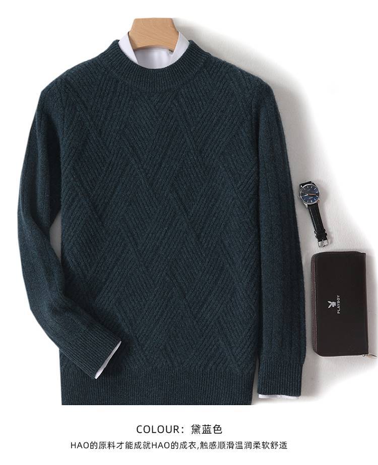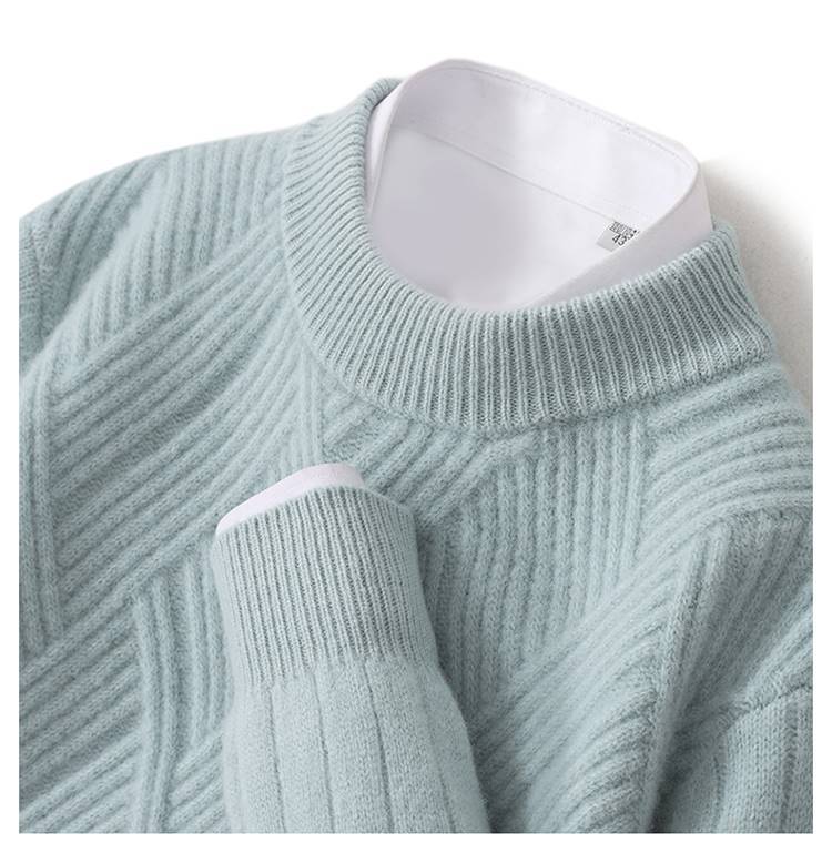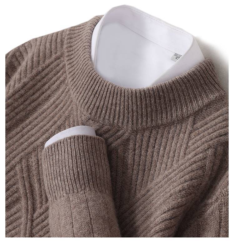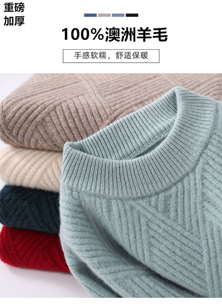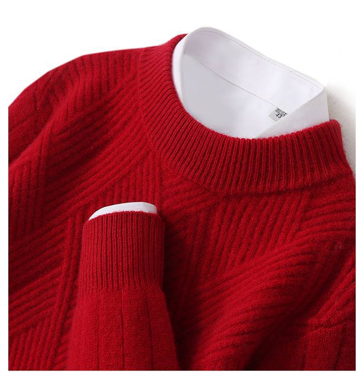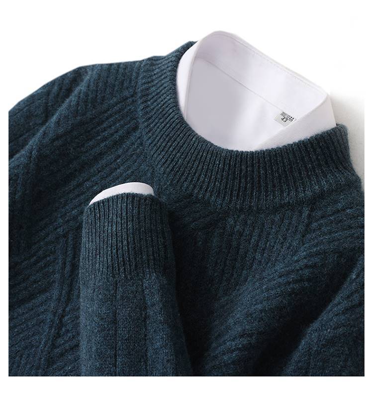 Suéter de lana de invierno para hombre, suéter de cuello redondo, suéter de cachemira grueso para jóvenes, camisa de punto suelta de talla grande para negocios