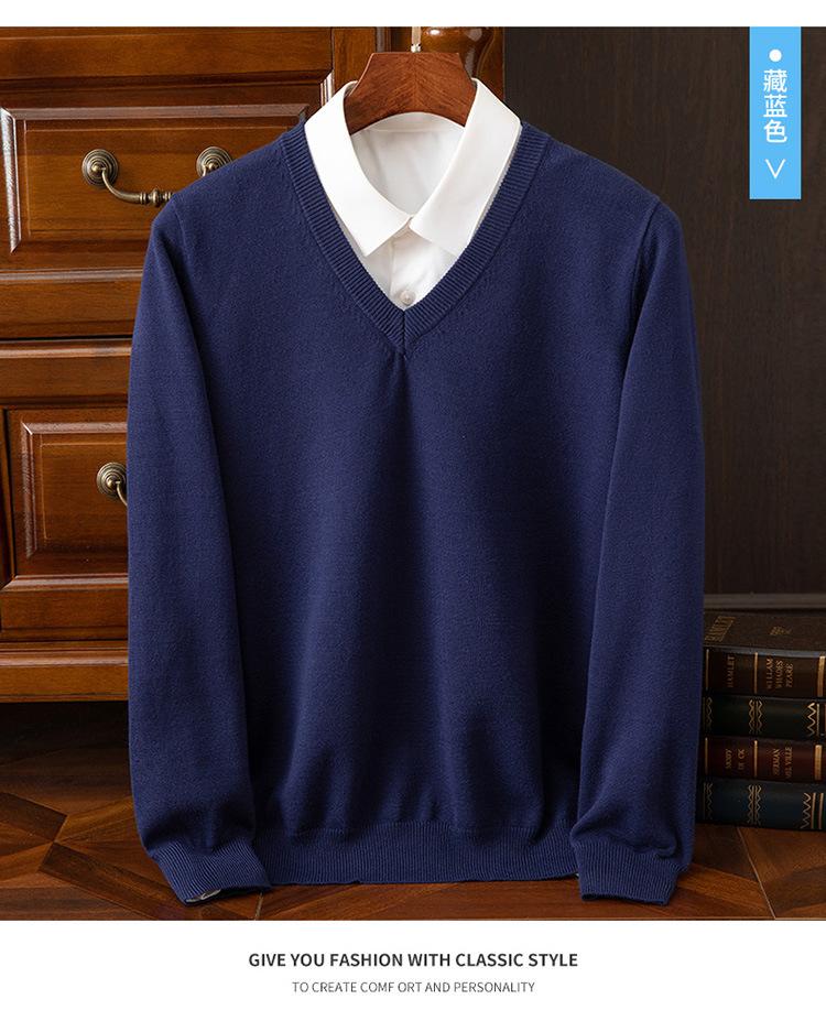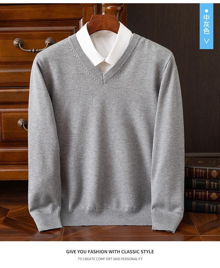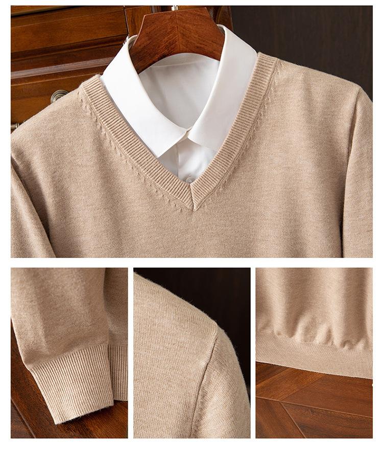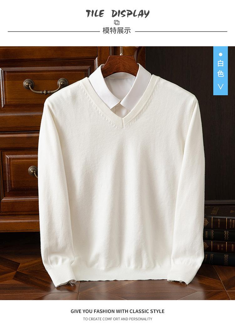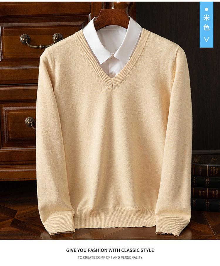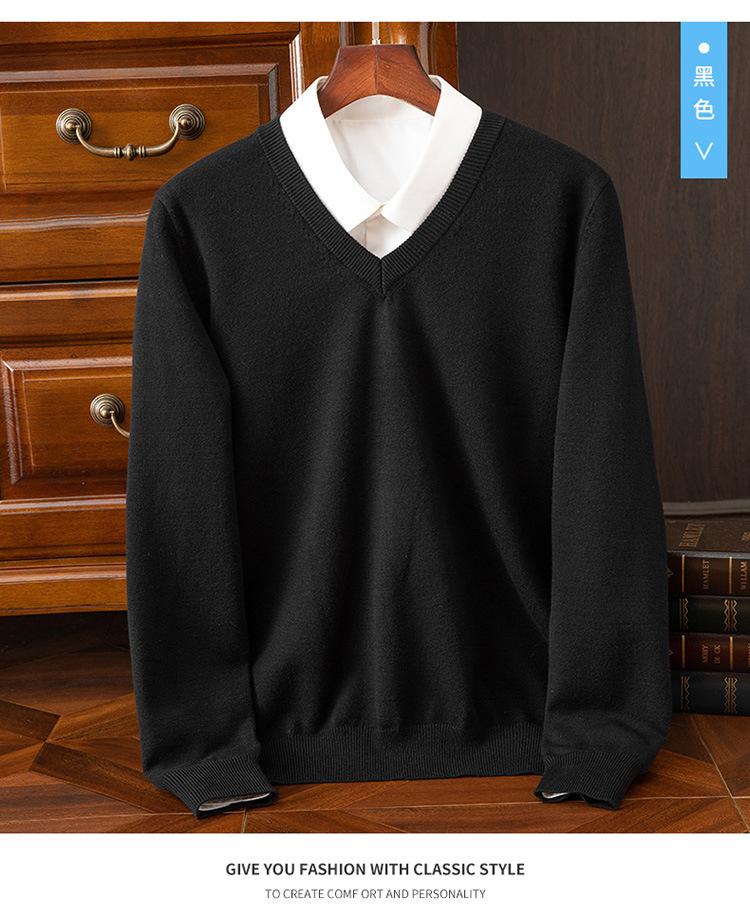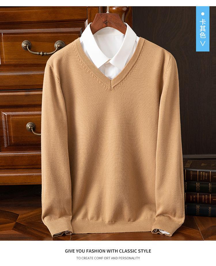 Suéter clásico de cuello alto en V para hombre, jersey de punto de manga larga, cálido, holgado, informal, de negocios, primavera y otoño de 2023