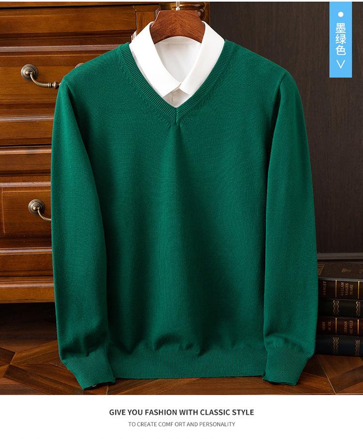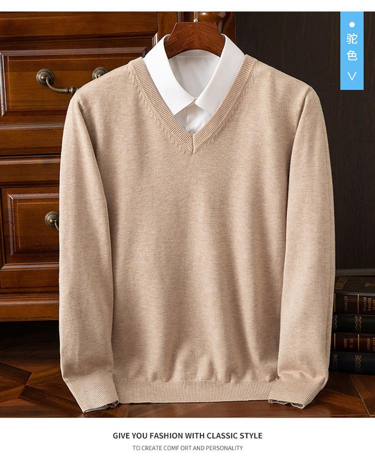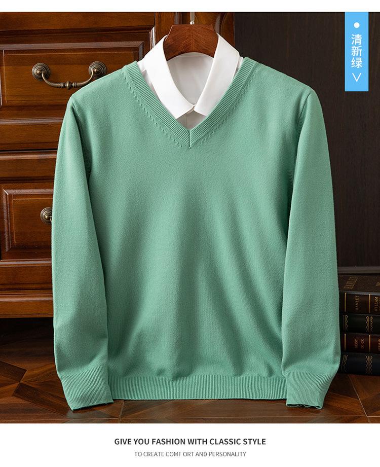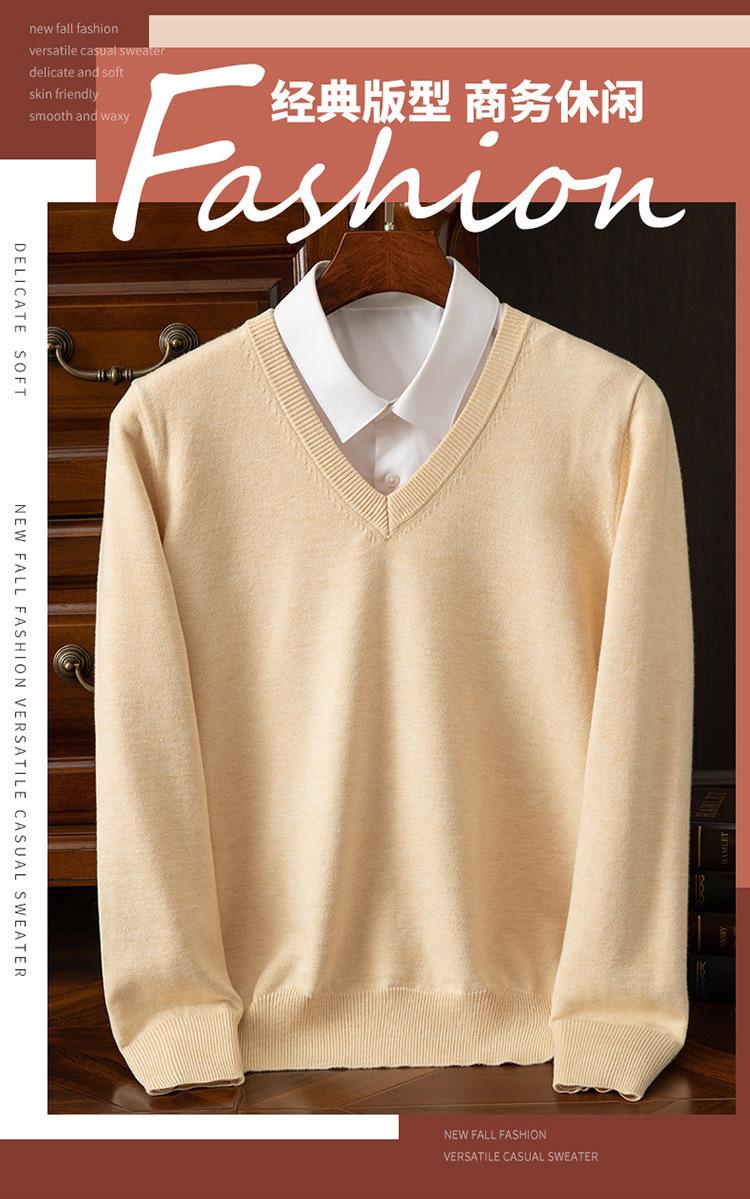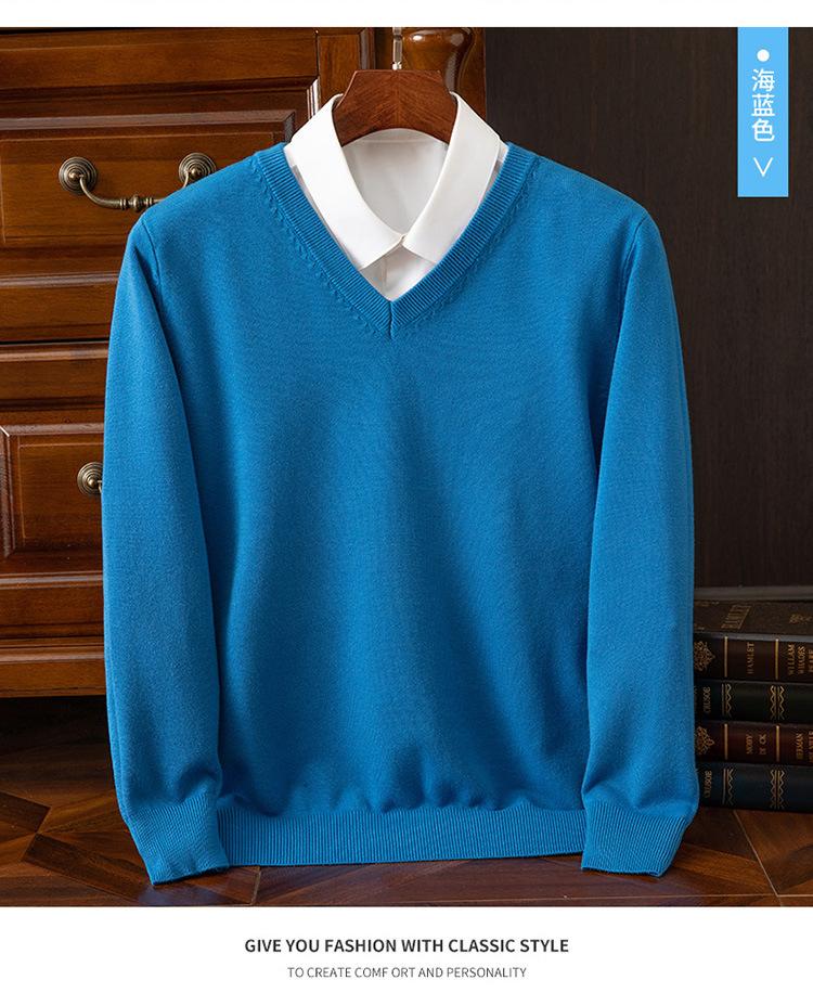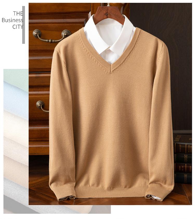 Suéter clásico de cuello alto en V para hombre, jersey de punto de manga larga, cálido, holgado, informal, de negocios, primavera y otoño de 2023
