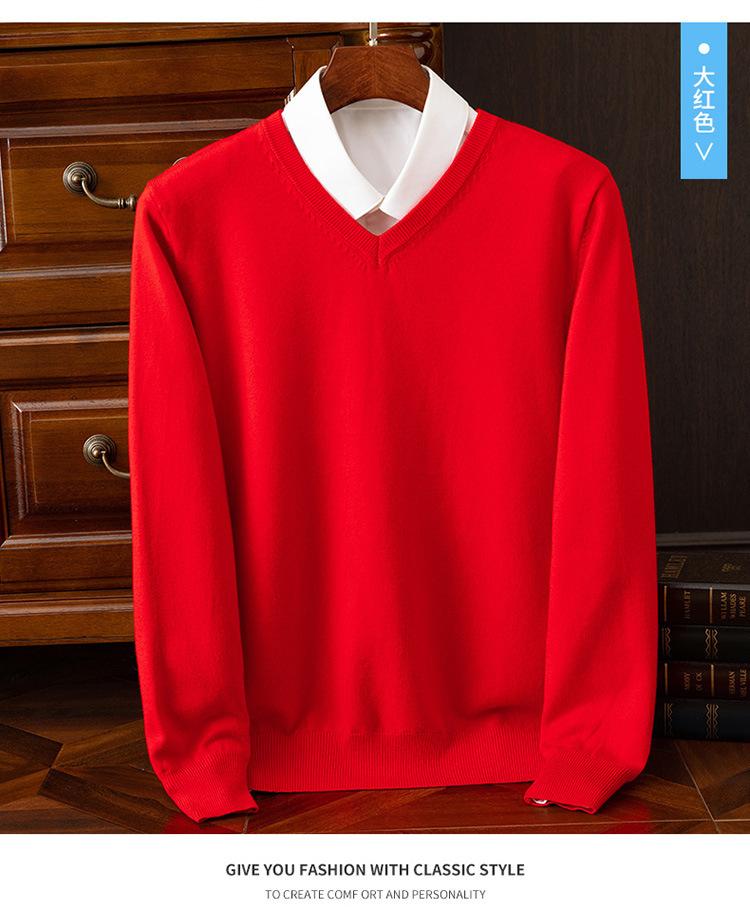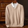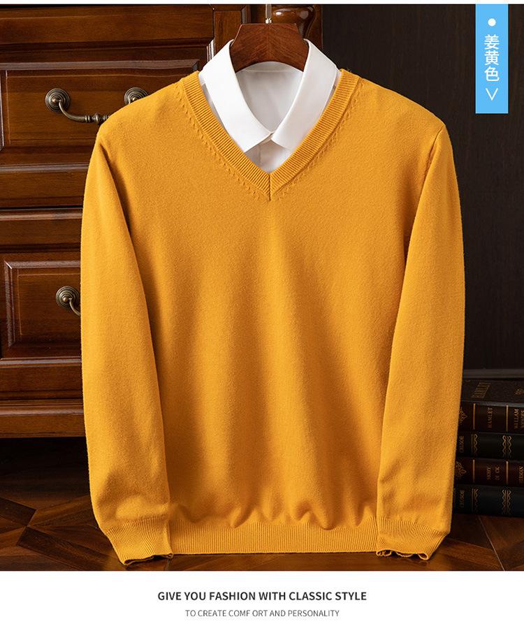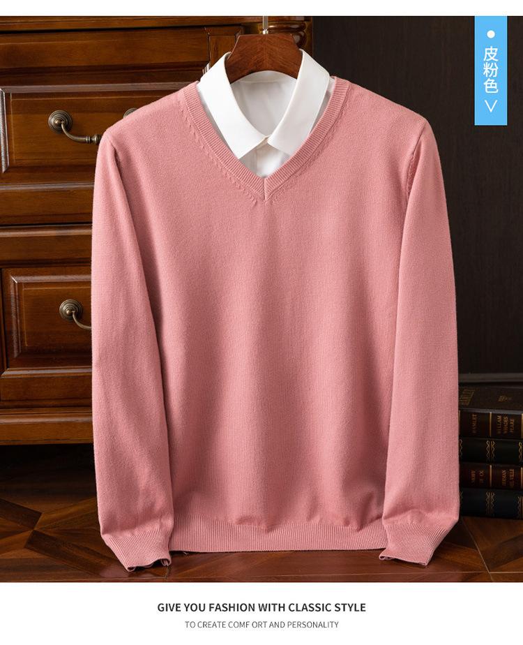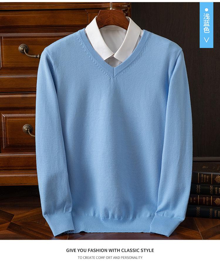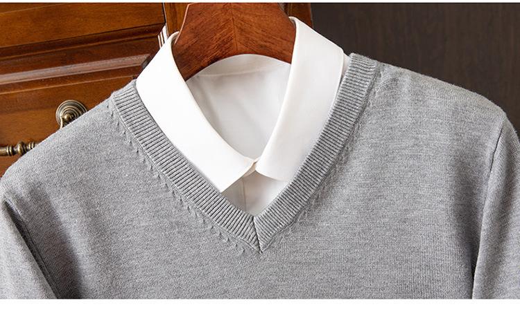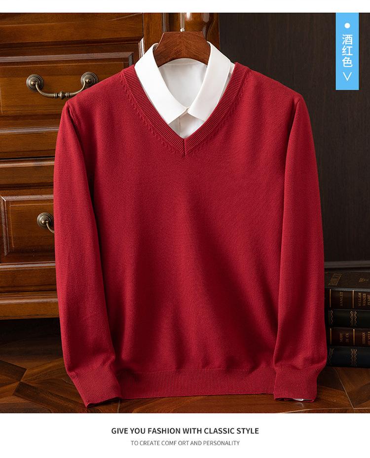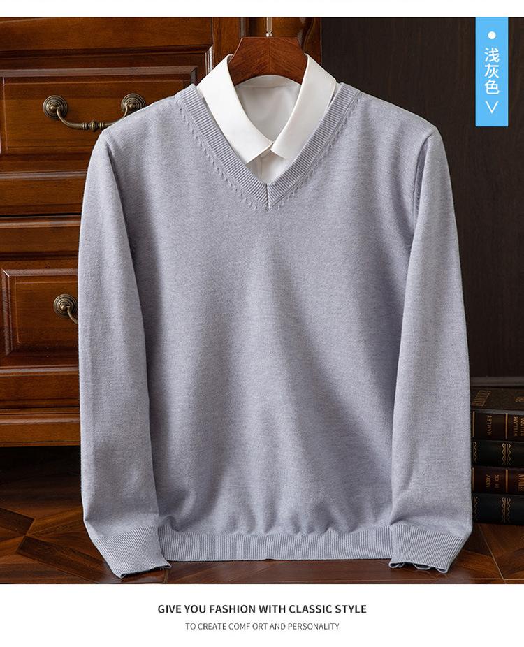 Suéter clásico de cuello alto en V para hombre, jersey de punto de manga larga, cálido, holgado, informal, de negocios, primavera y otoño de 2023