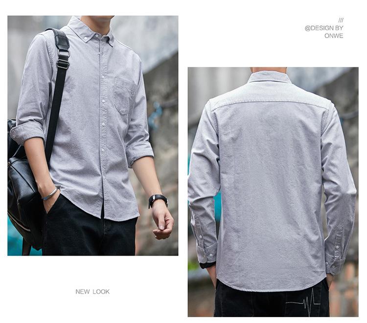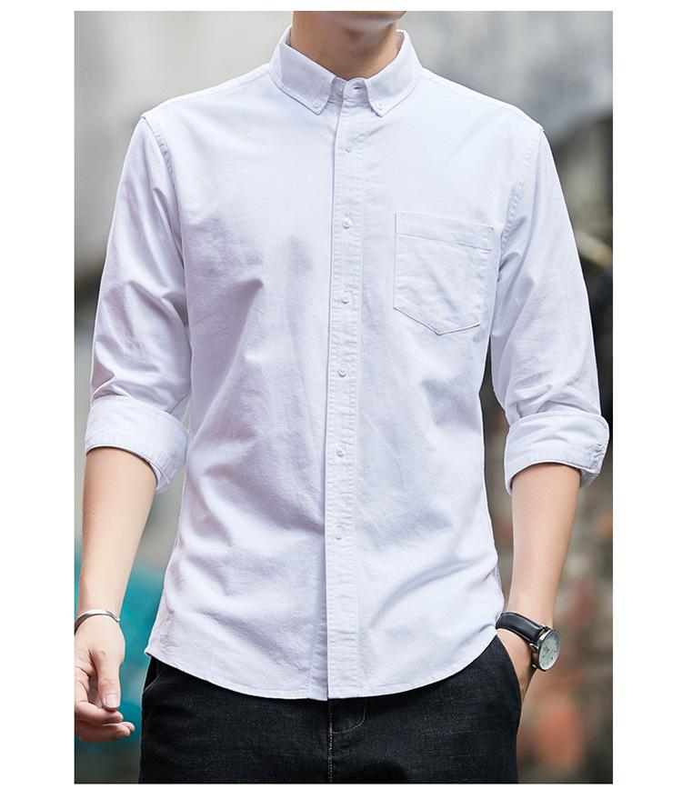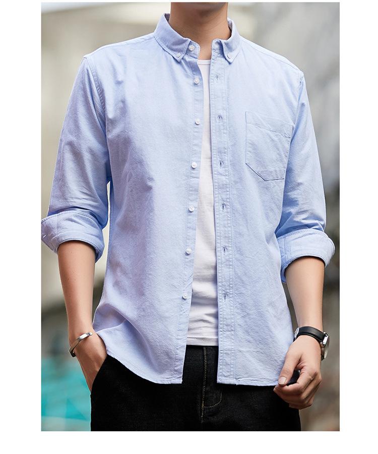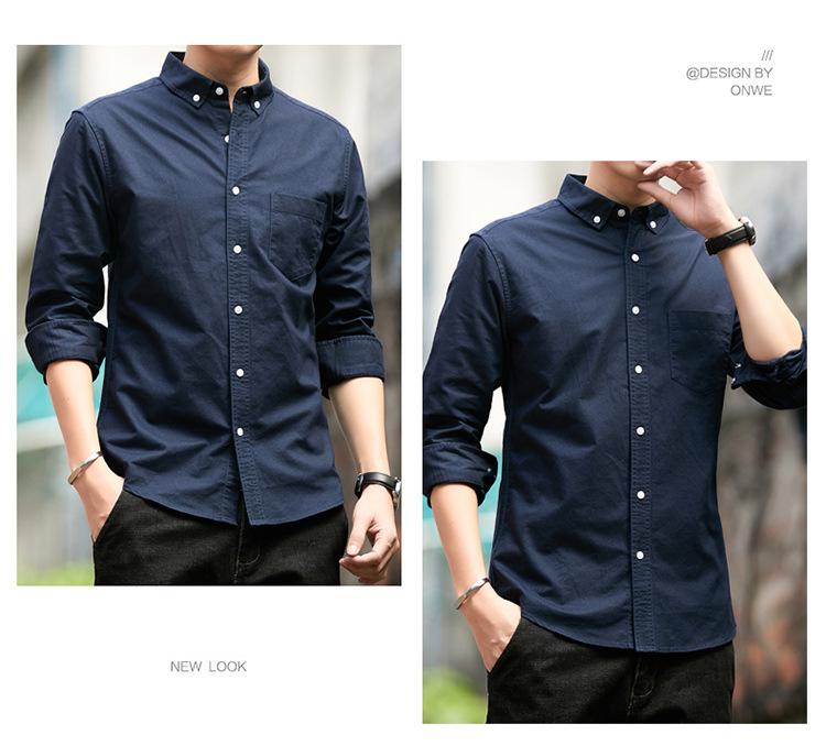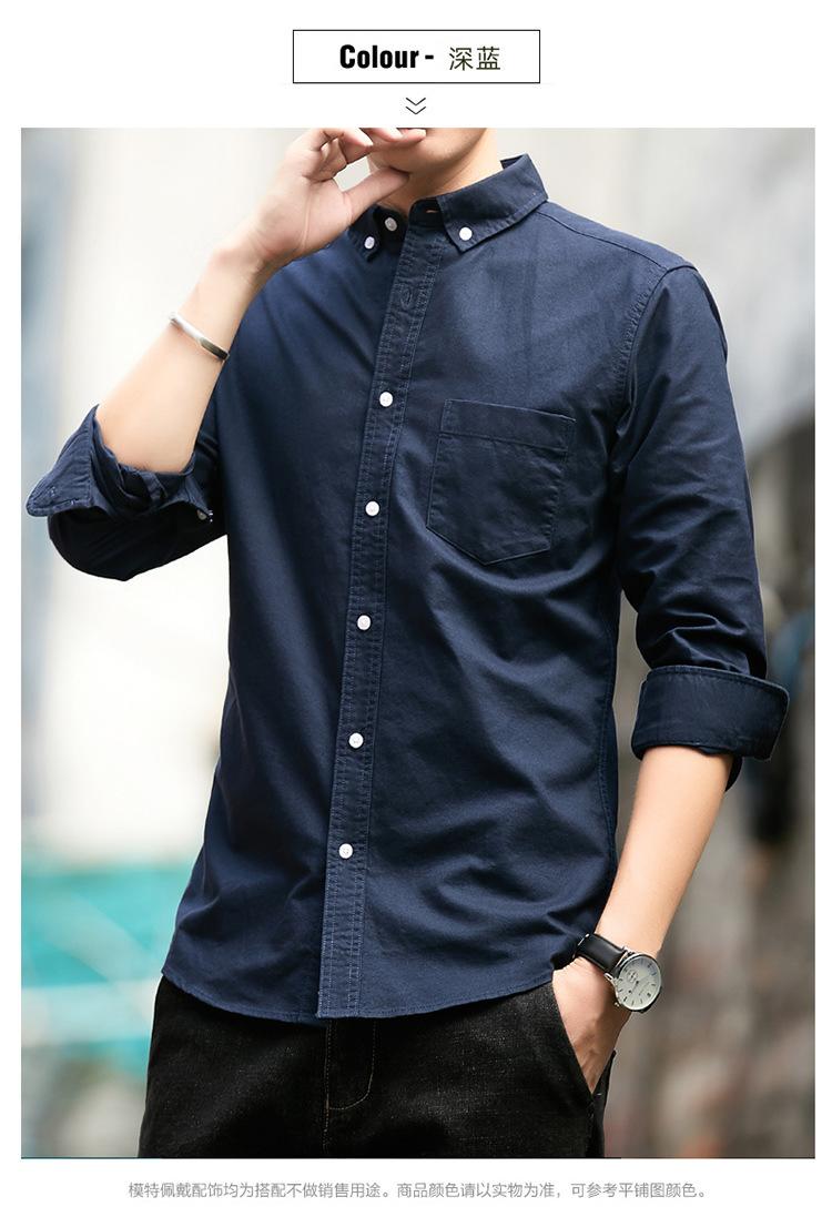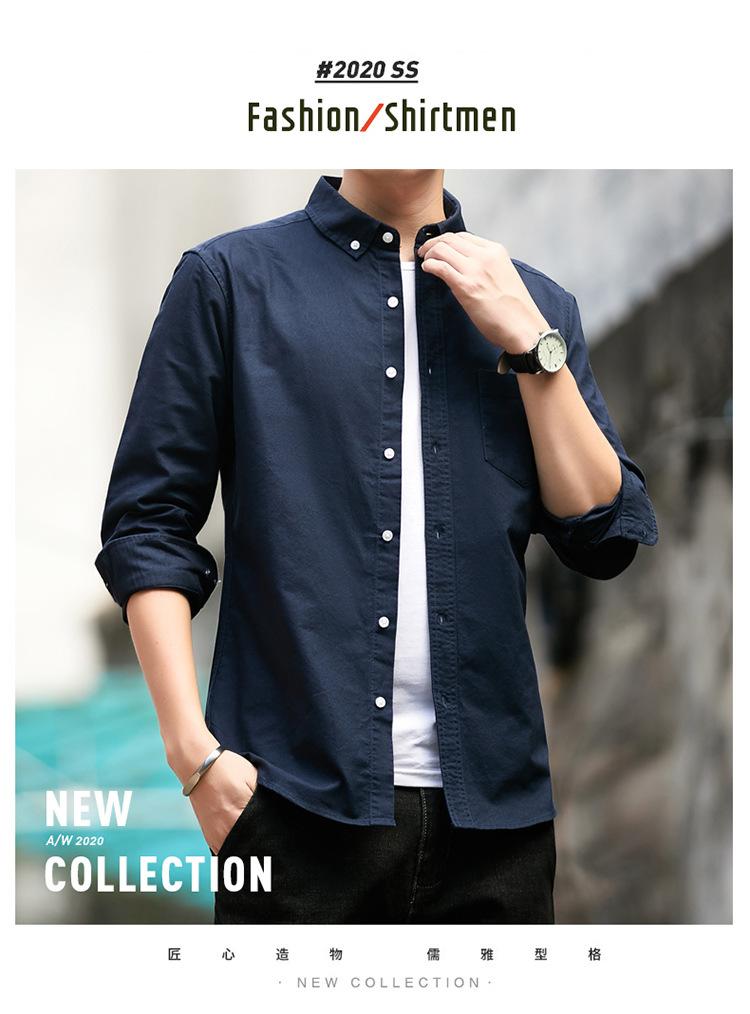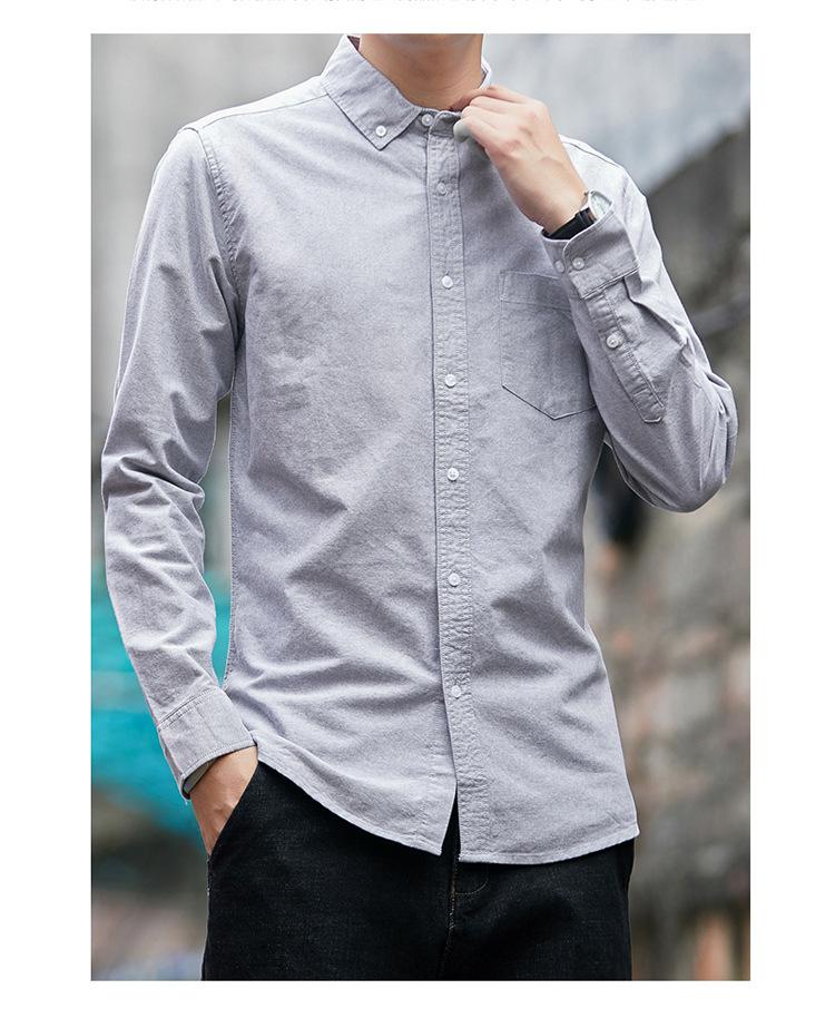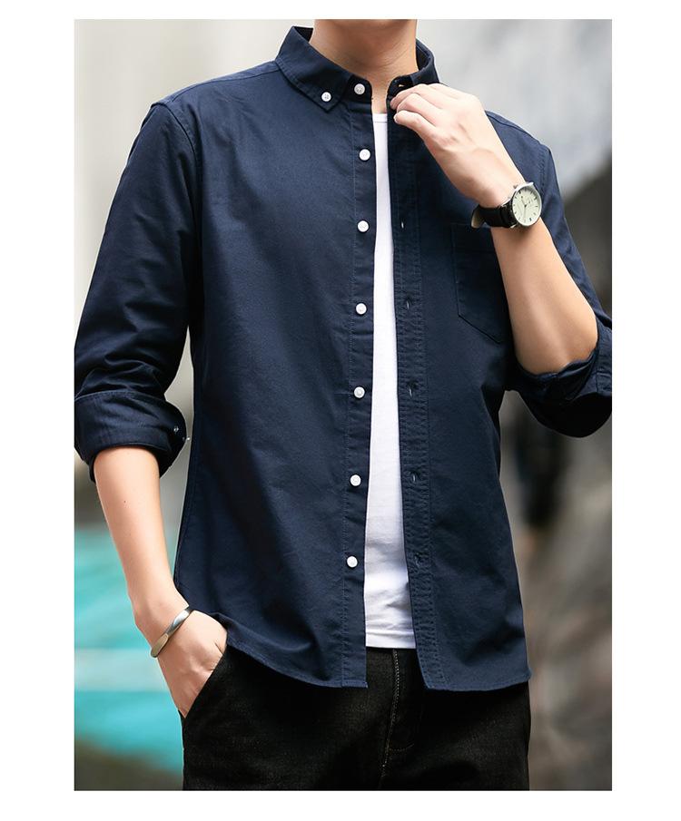 Camisa de Algodón de Color Sólido para Hombre, Manga Larga, Estilo Primavera y Otoño, Camisa Casual Versátil, Soporta Logo, Múltiples Colores Disponibles, Simple y Versátil