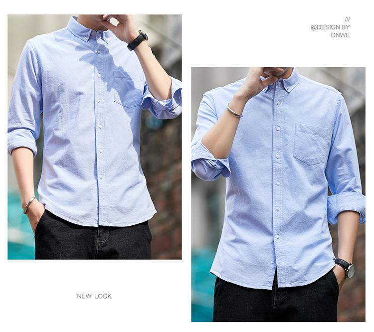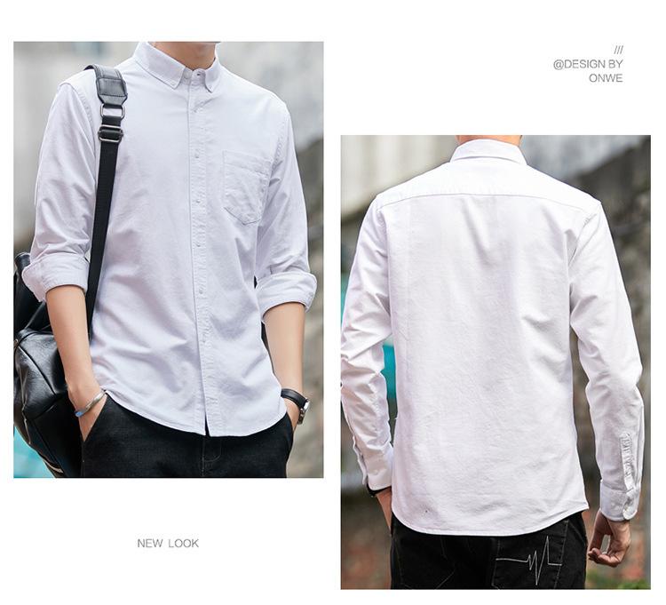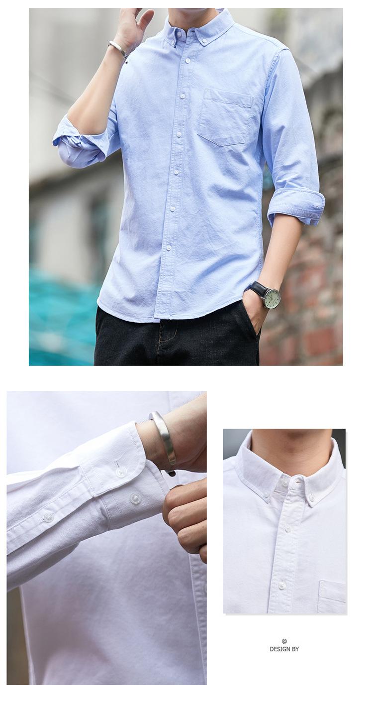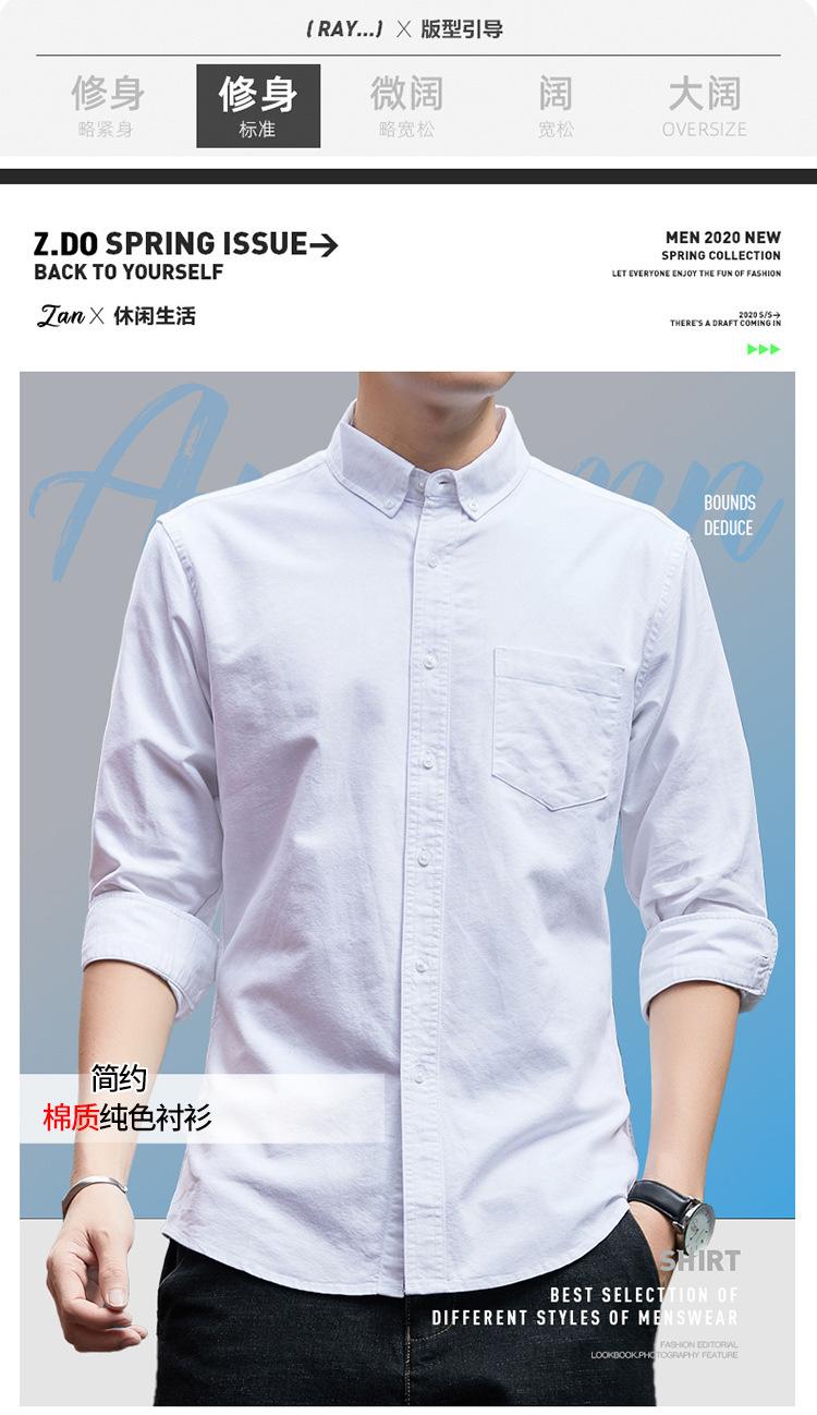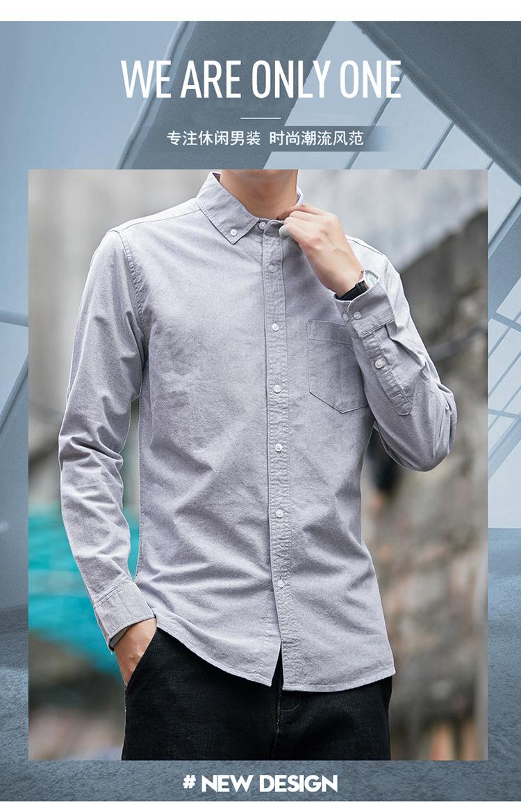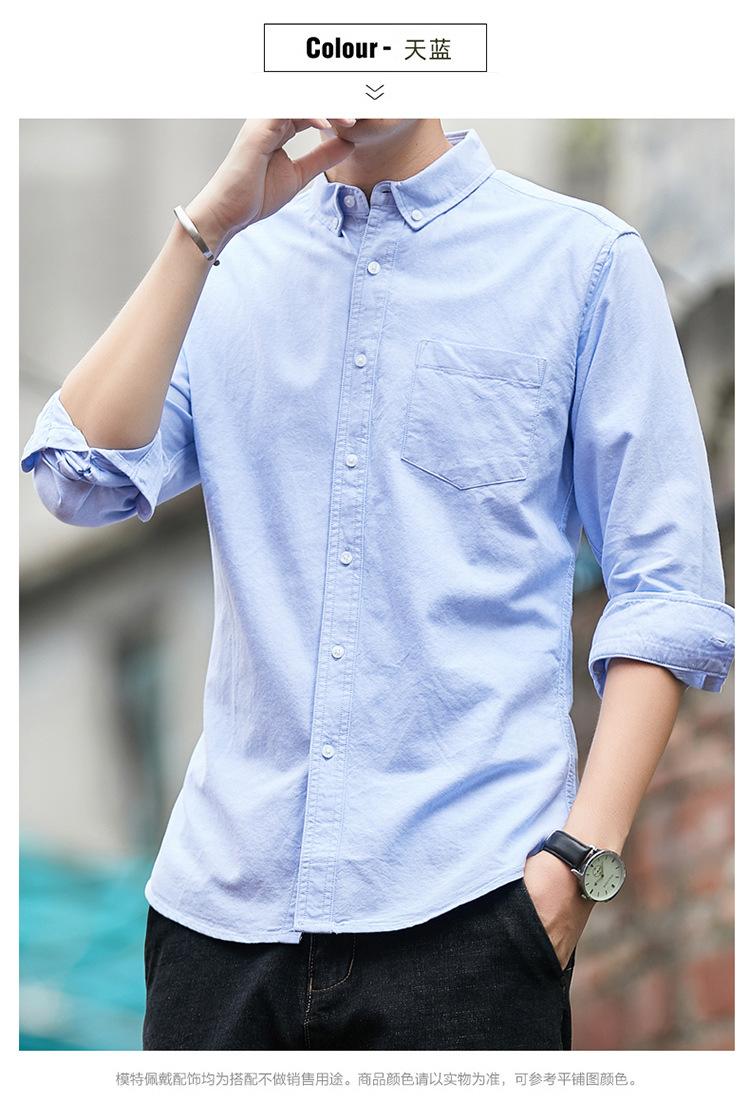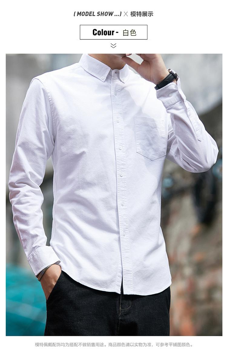 Camisa de Algodón de Color Sólido para Hombre, Manga Larga, Estilo Primavera y Otoño, Camisa Casual Versátil, Soporta Logo, Múltiples Colores Disponibles, Simple y Versátil