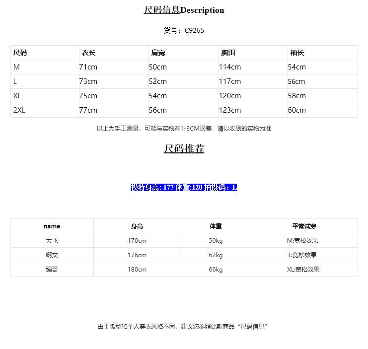 M, L, XL, 2XL, Reference: model height 177 weight 120 try on L