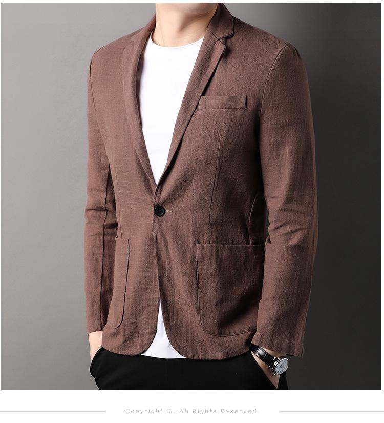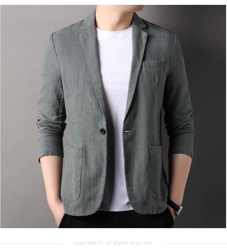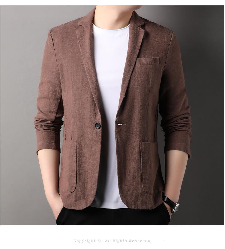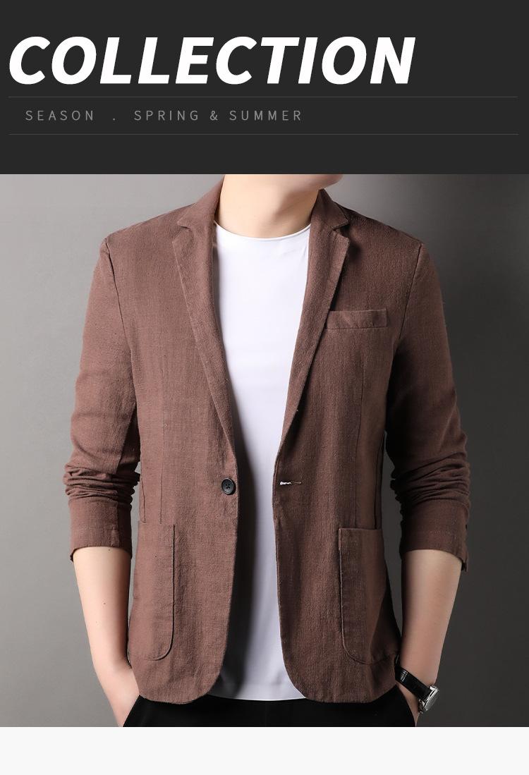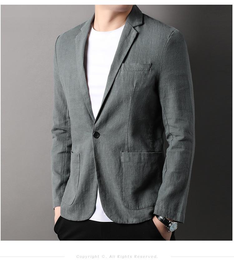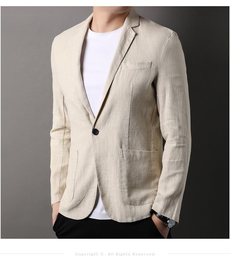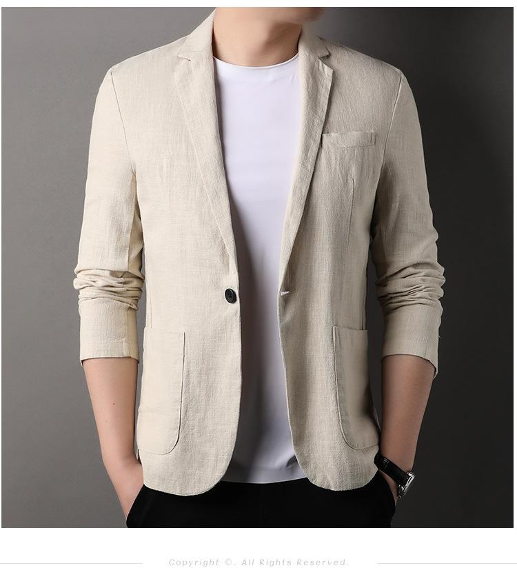 Chaqueta de traje de ramio 70% para hombre, estilo retro, informal, con cuello, para jóvenes y mediana edad, de moda, primavera y verano.