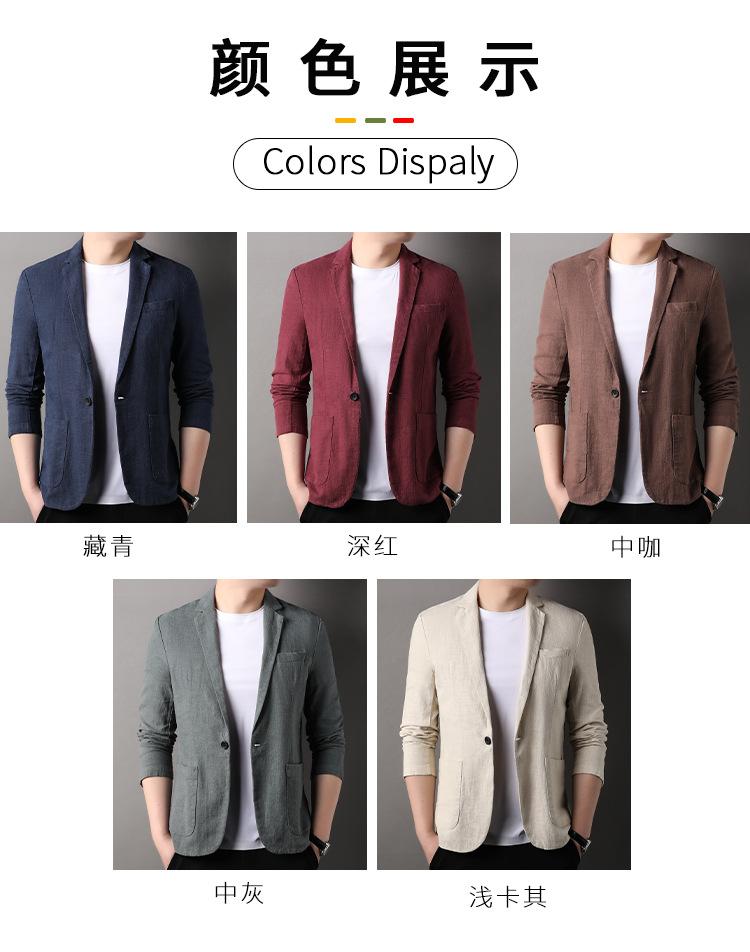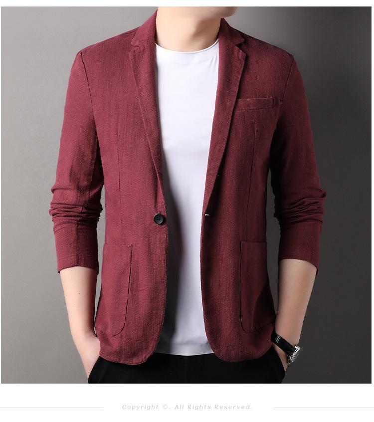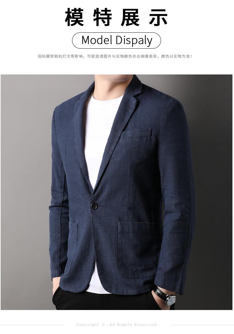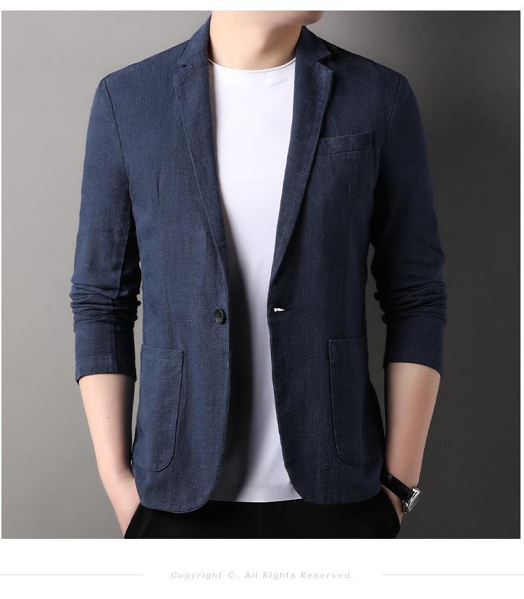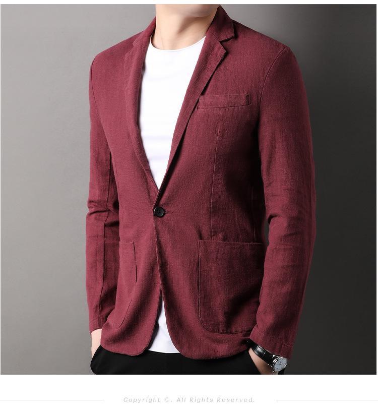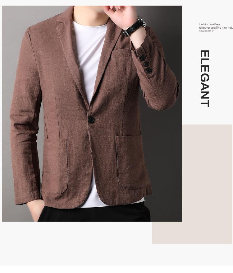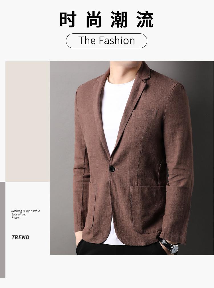 Chaqueta de traje de ramio 70% para hombre, estilo retro, informal, con cuello, para jóvenes y mediana edad, de moda, primavera y verano.