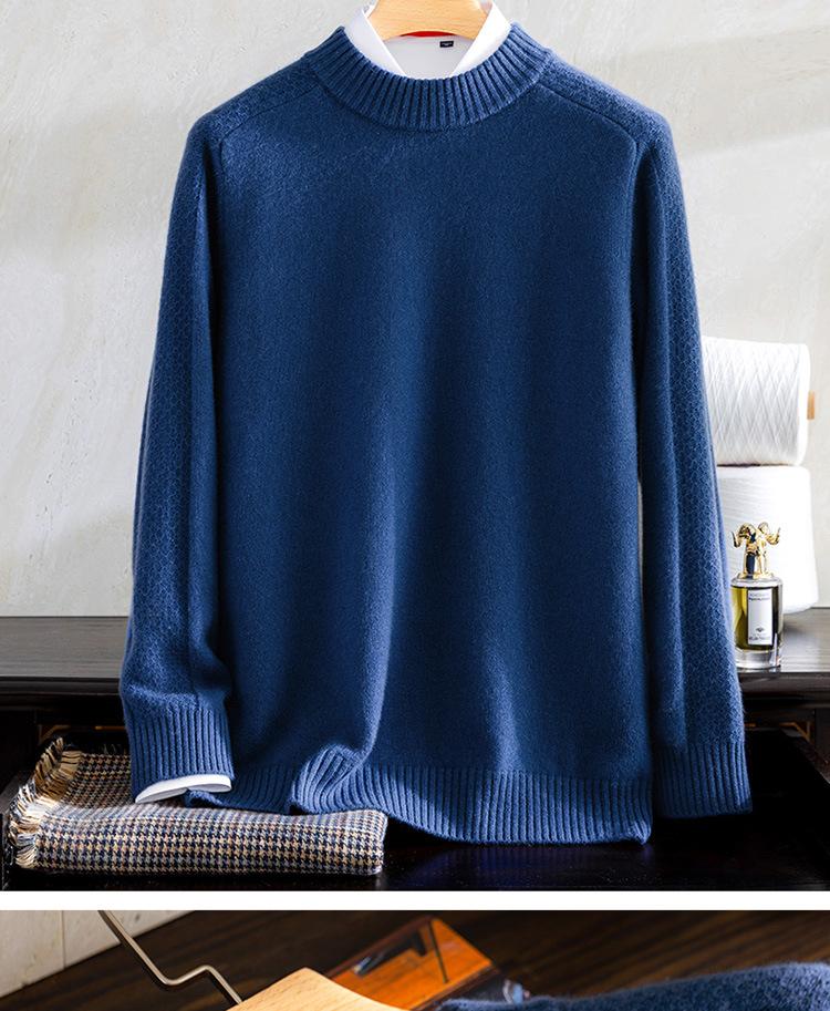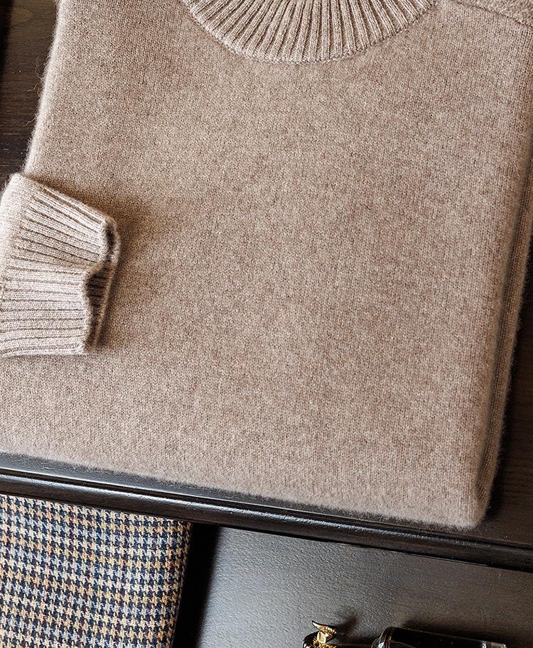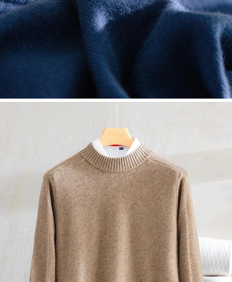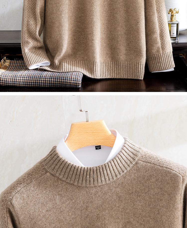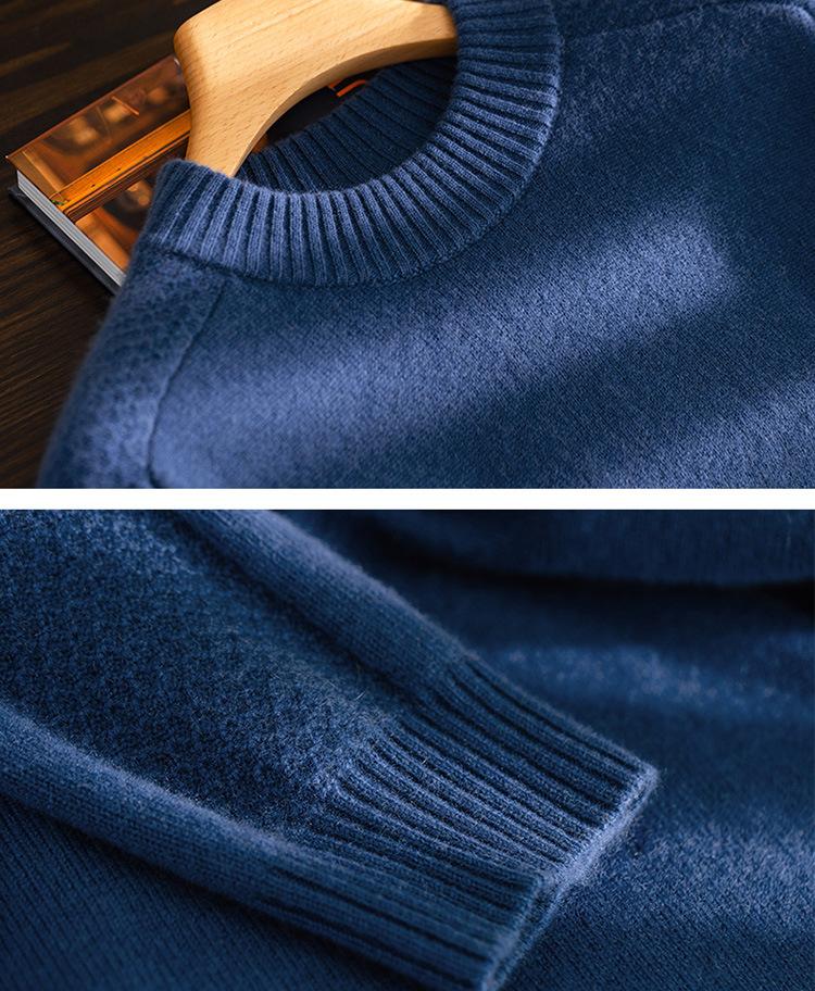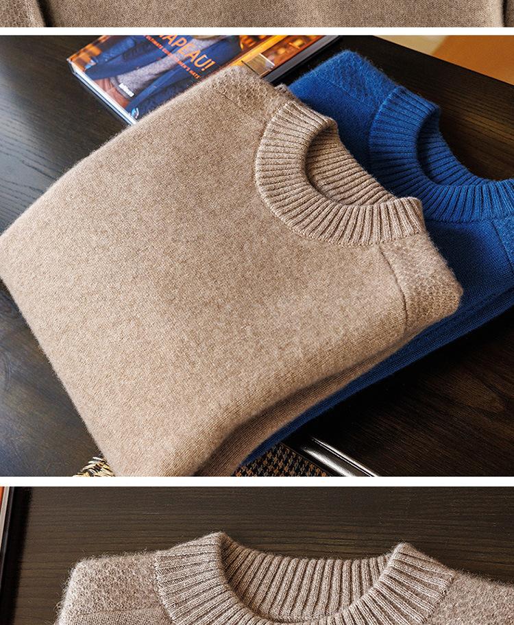 Suéter de cachemira 100% pura para otoño e invierno, suéter de cachemira gruesa para hombre, cuello redondo, suéter cálido de talla grande, suéter de color sólido, camisa de fondo