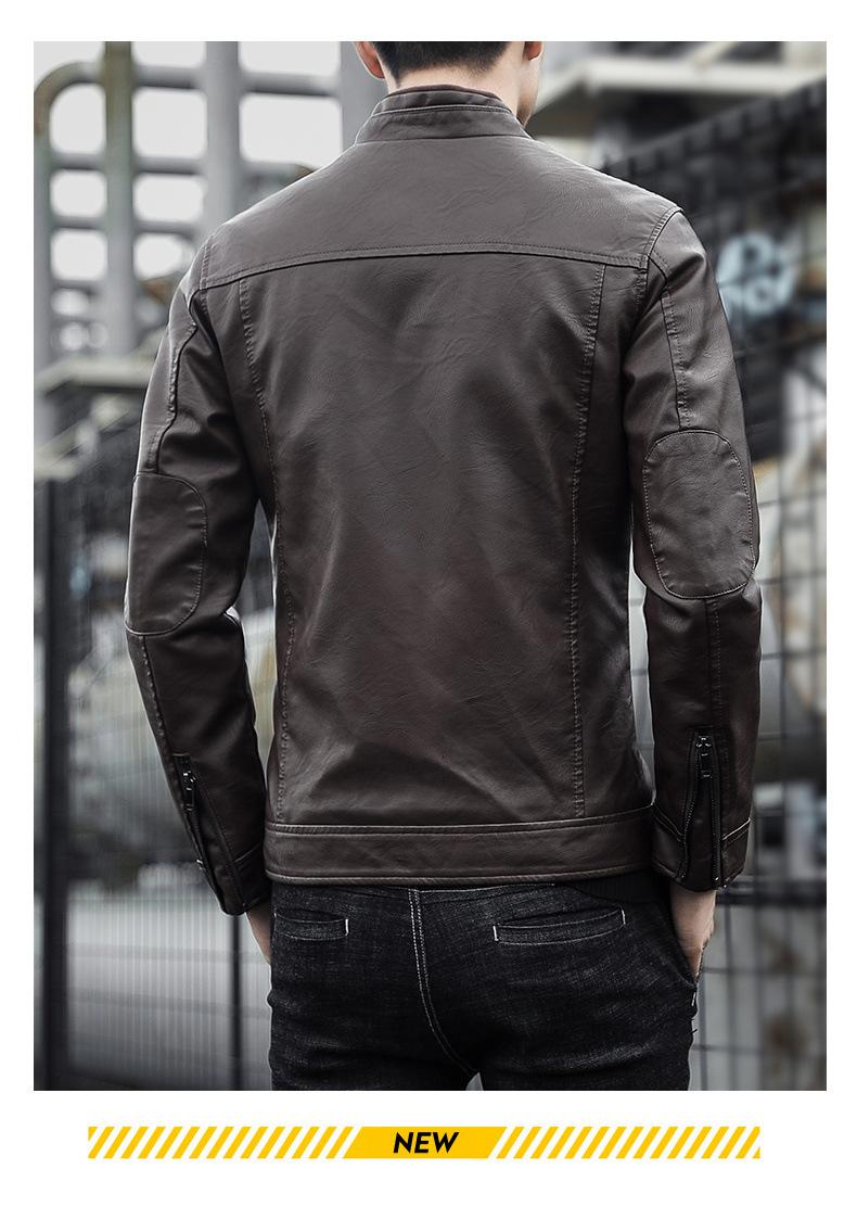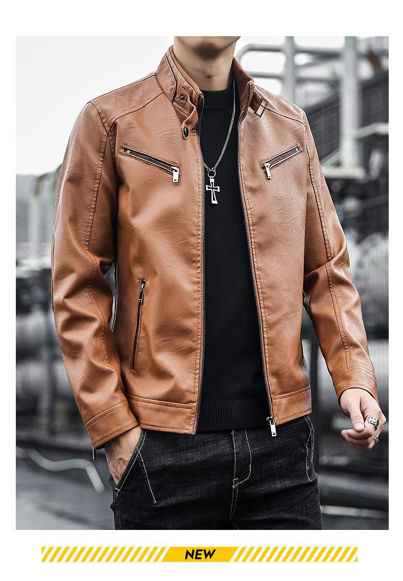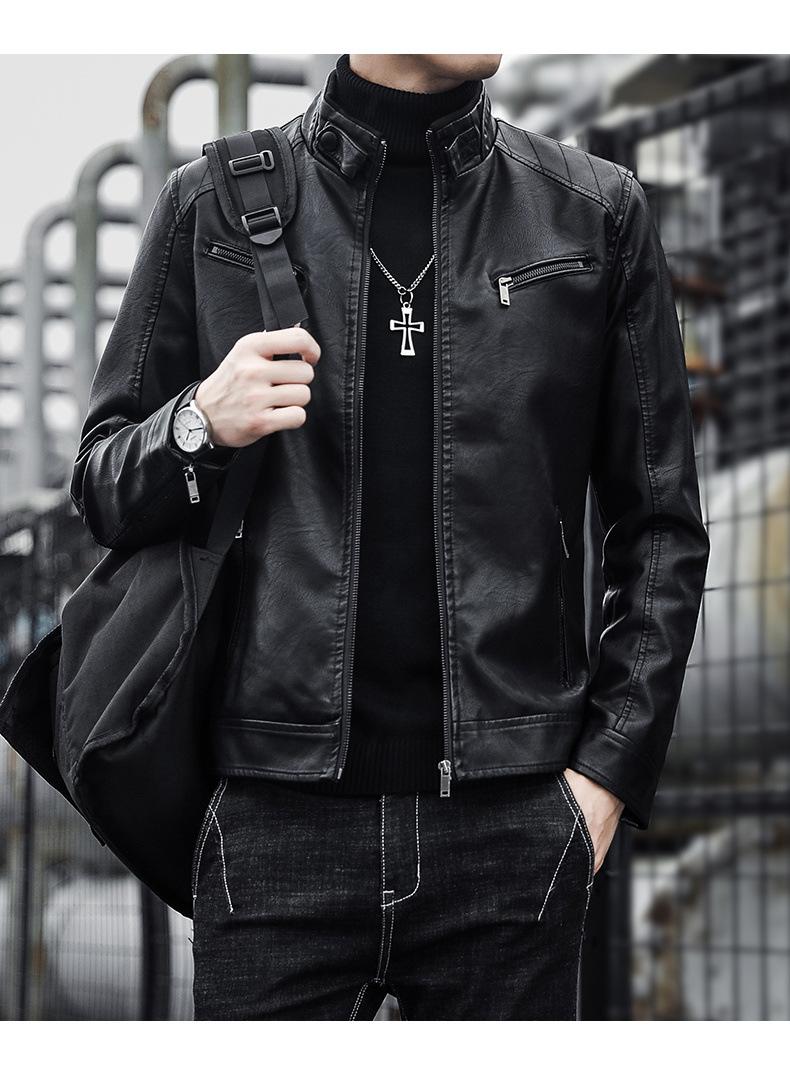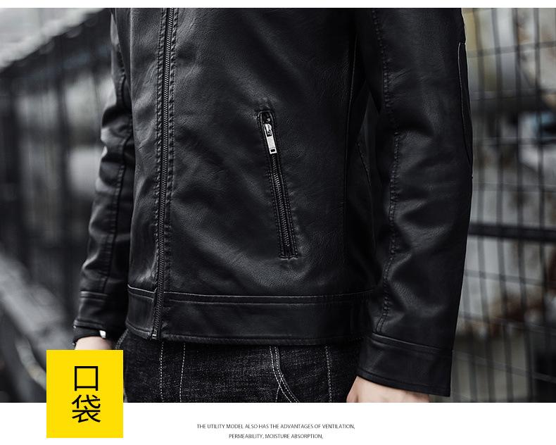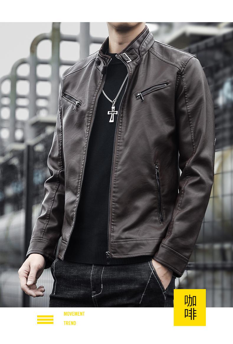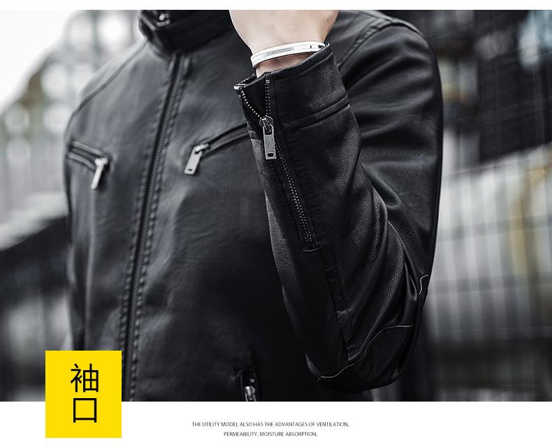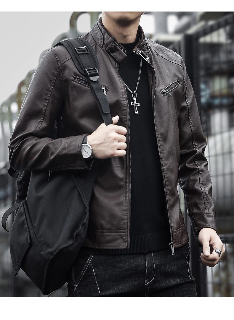 Chaqueta de Cuero para Hombre Otoño e Invierno Nueva Cuero de Motocicleta Cuello Alto Chaqueta de Trabajo Estilo Coreano Slim Versátil Casual Ropa de Hombre