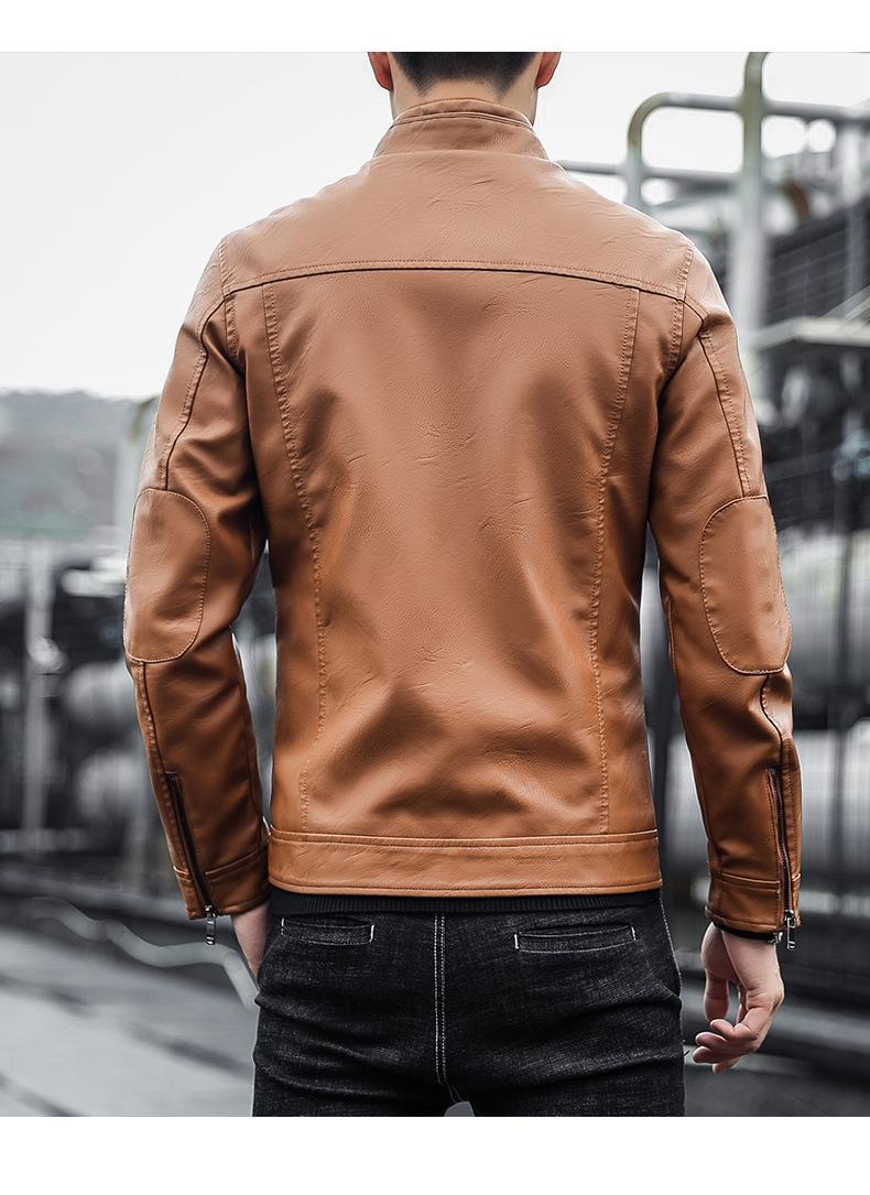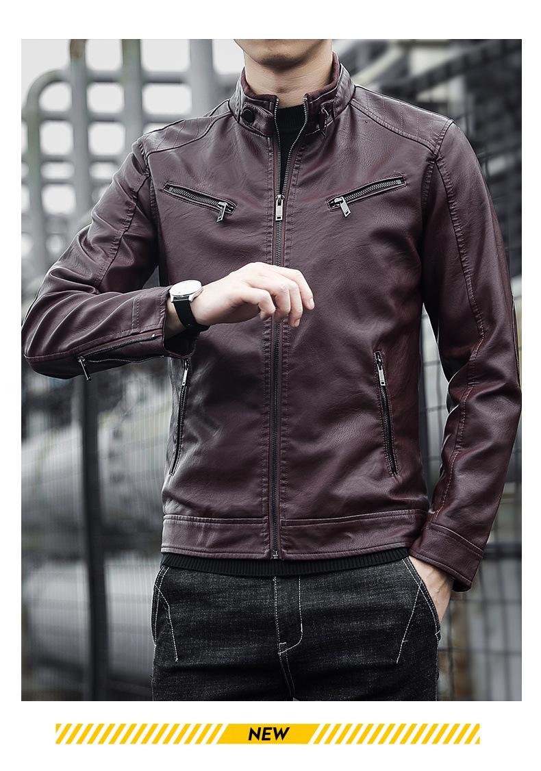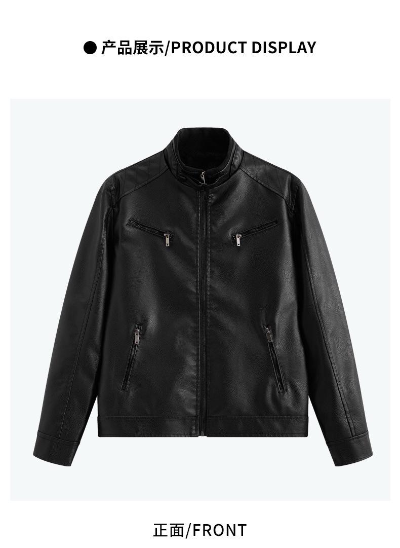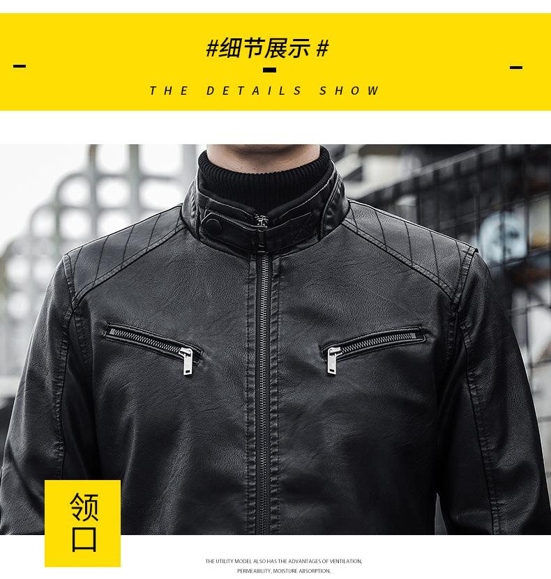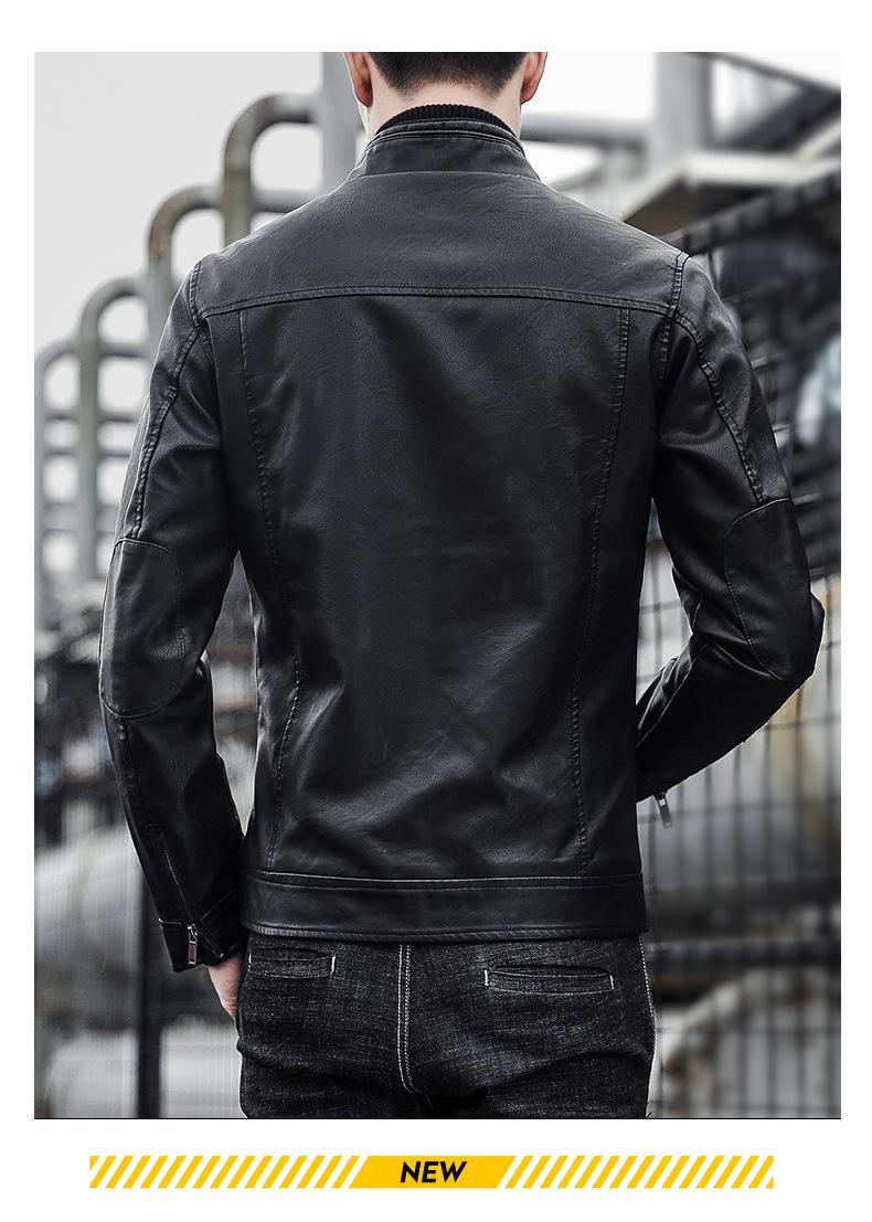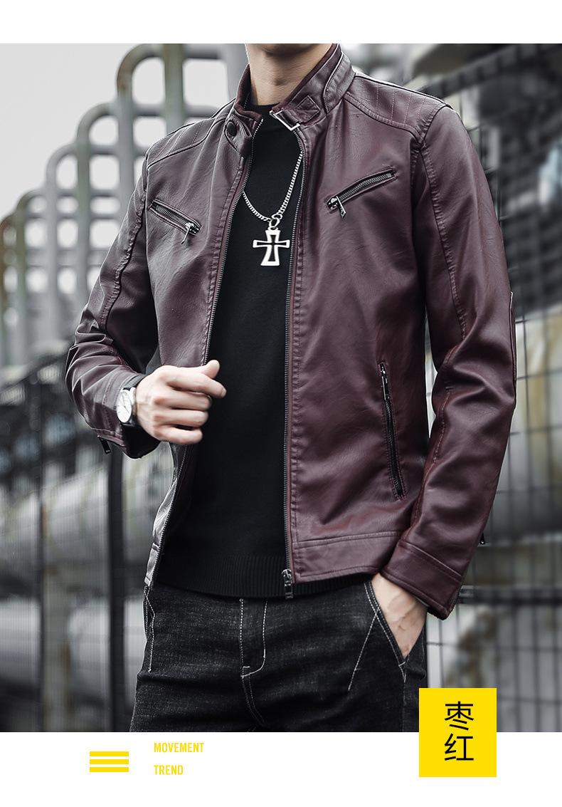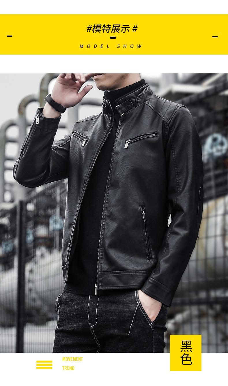 Chaqueta de Cuero para Hombre Otoño e Invierno Nueva Cuero de Motocicleta Cuello Alto Chaqueta de Trabajo Estilo Coreano Slim Versátil Casual Ropa de Hombre