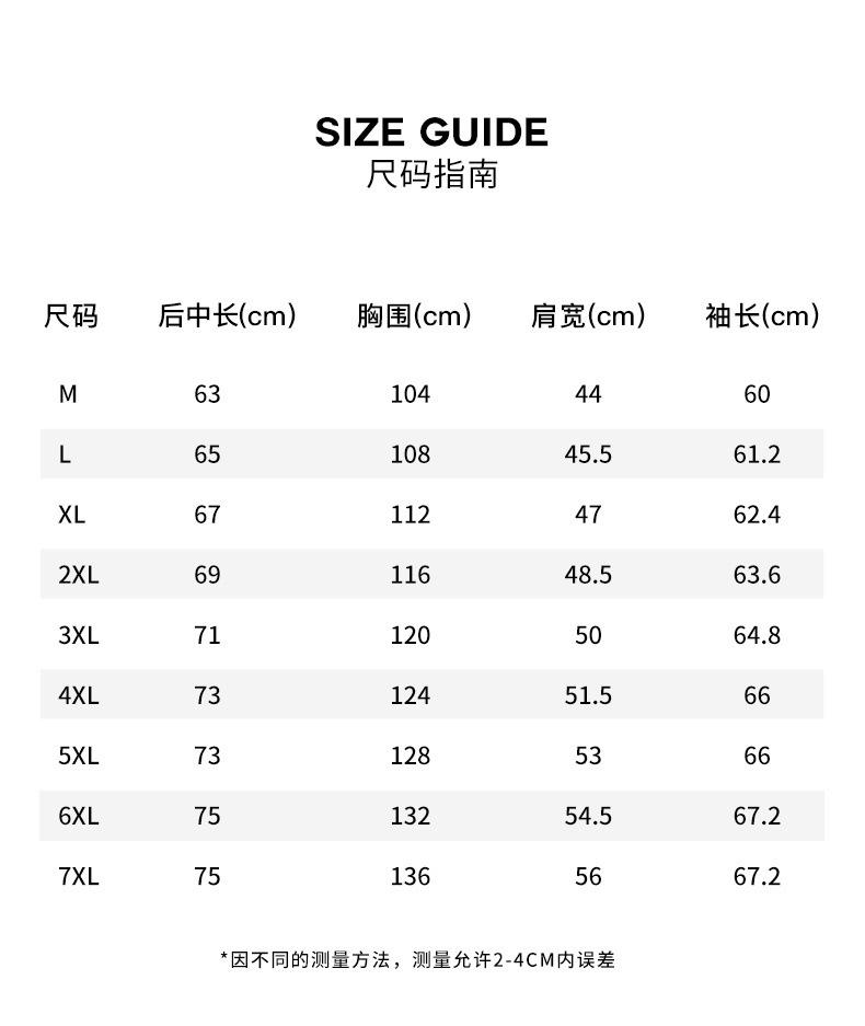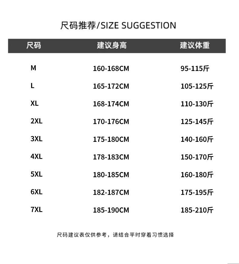 M, L, XL, 2XL, 3XL, 4XL, 5XL, 6XL, 7XL