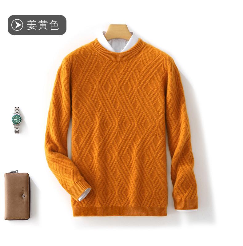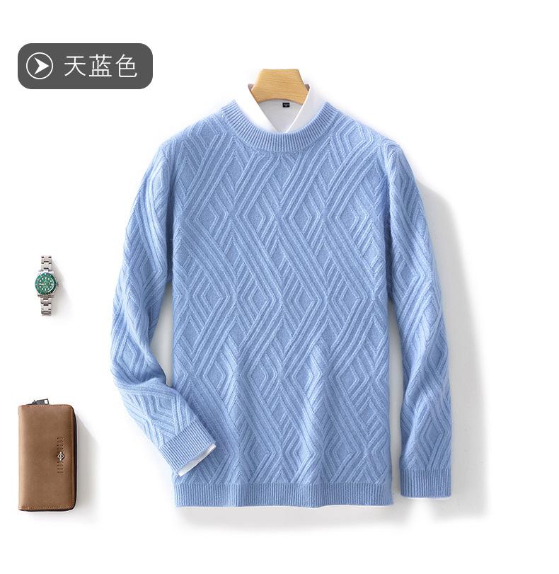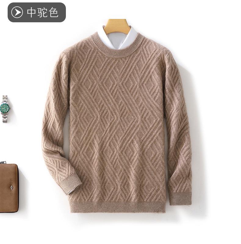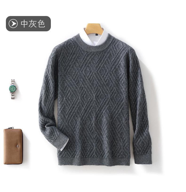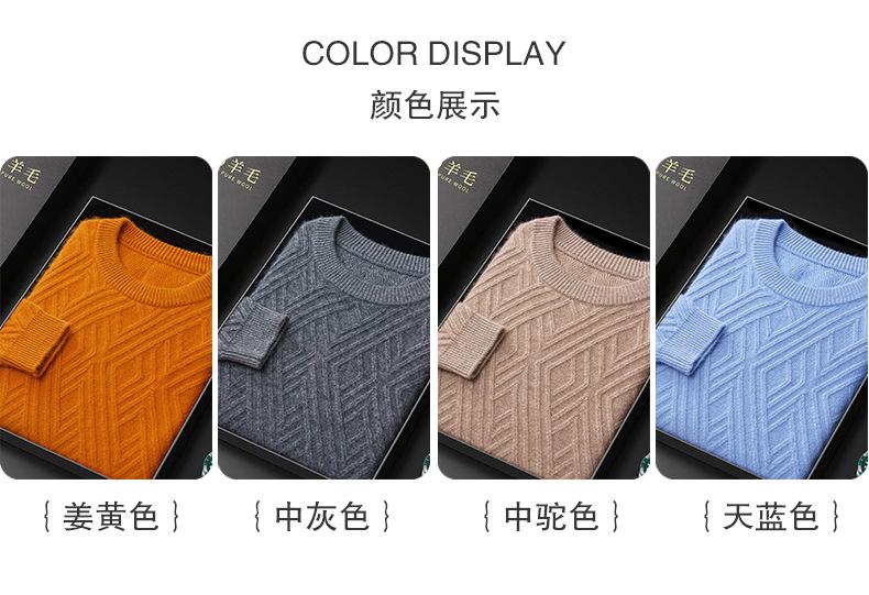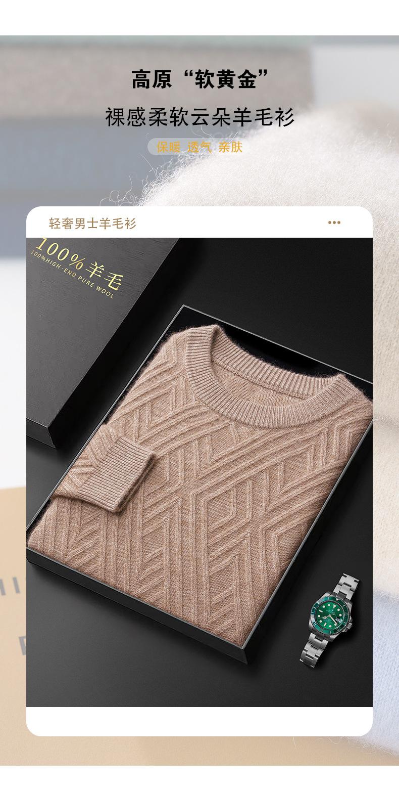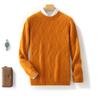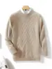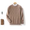 Suéter de lana para hombre, otoño e invierno, nuevo, semi-alto, cuello redondo, jacquard, suéter grueso, camisa informal holgada de punto de lana para hombre