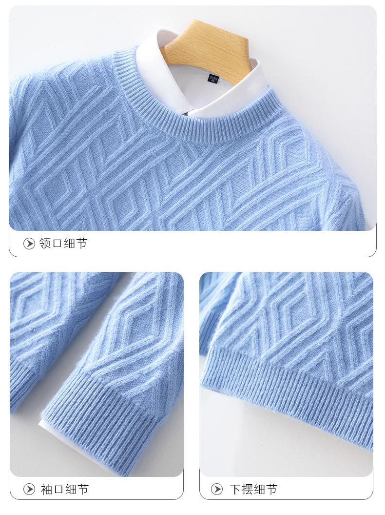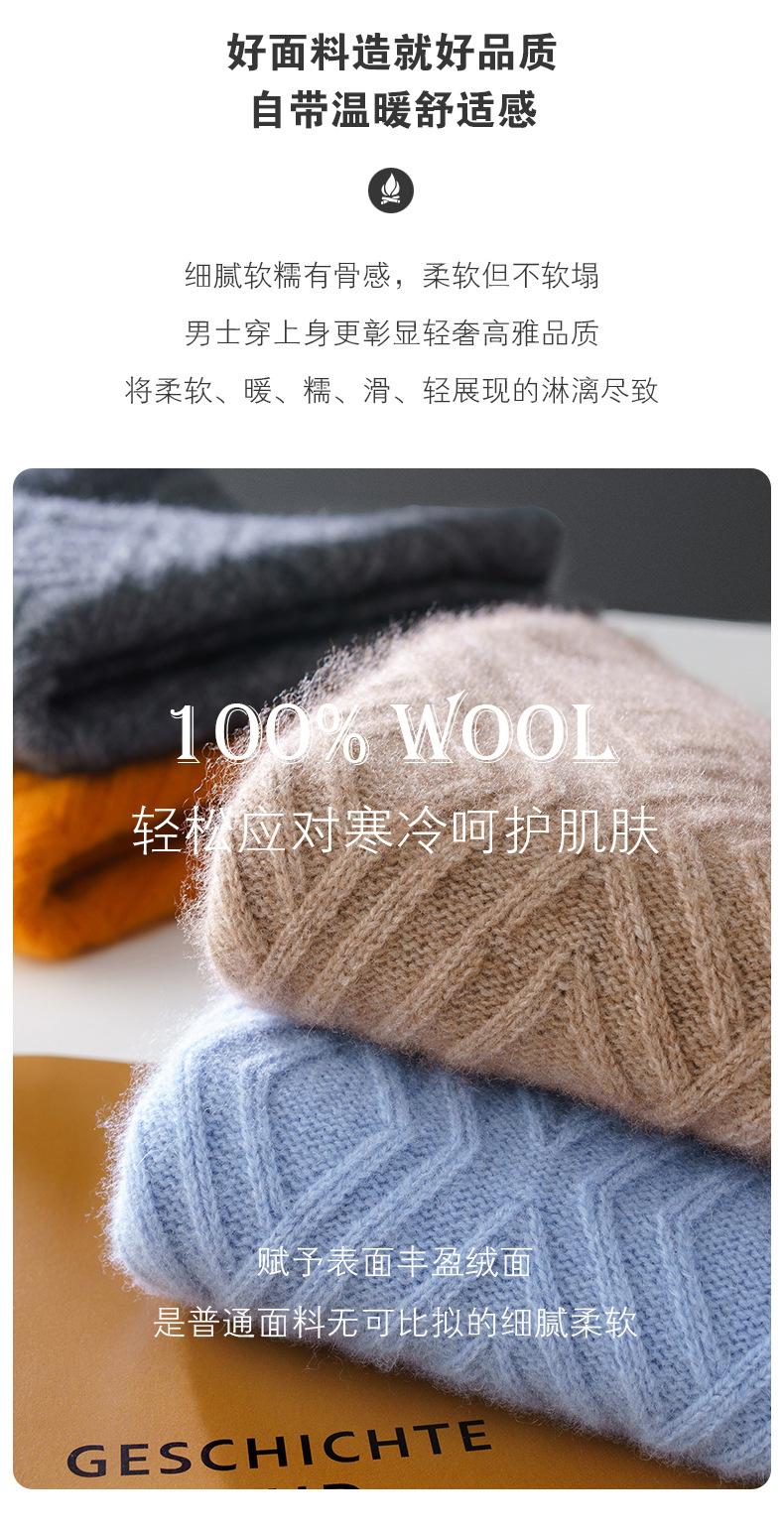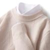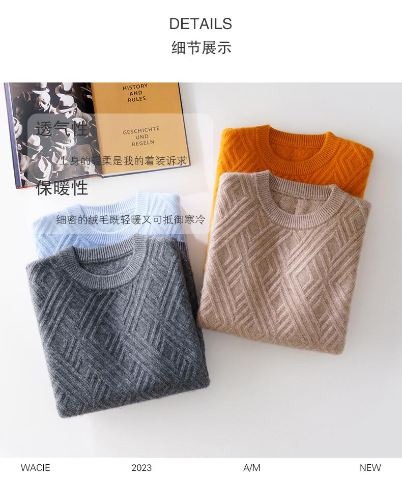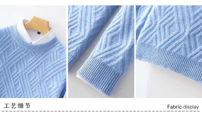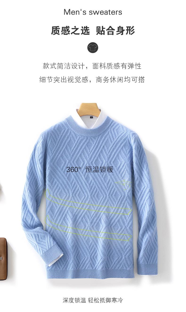 Suéter de lana para hombre, otoño e invierno, nuevo, semi-alto, cuello redondo, jacquard, suéter grueso, camisa informal holgada de punto de lana para hombre