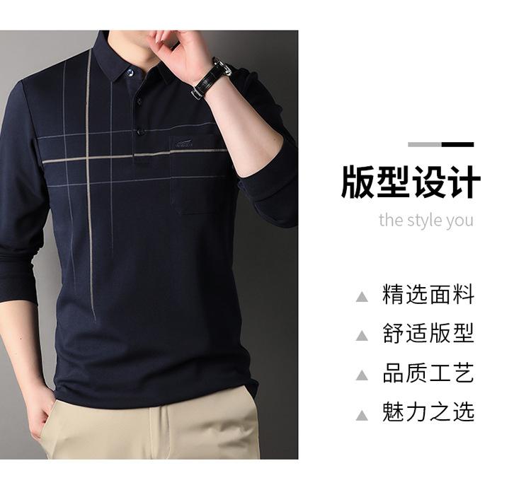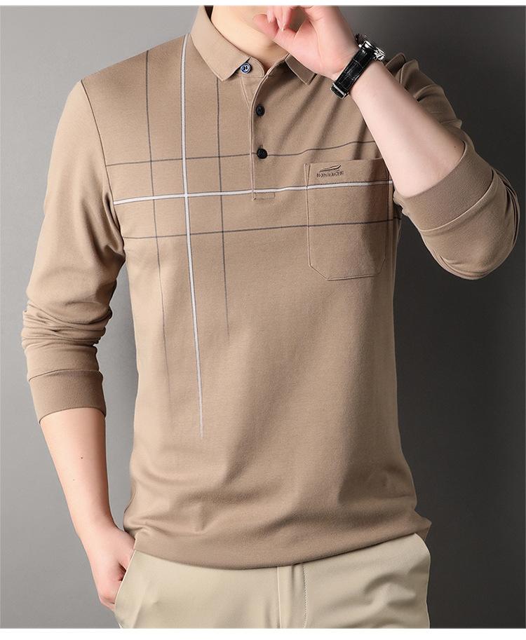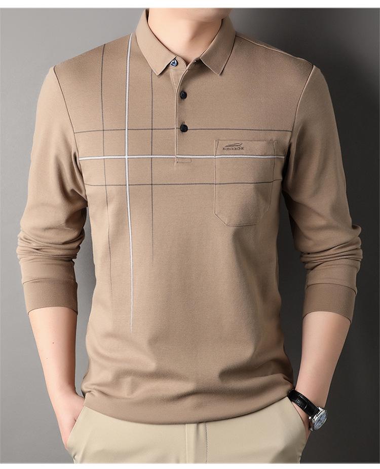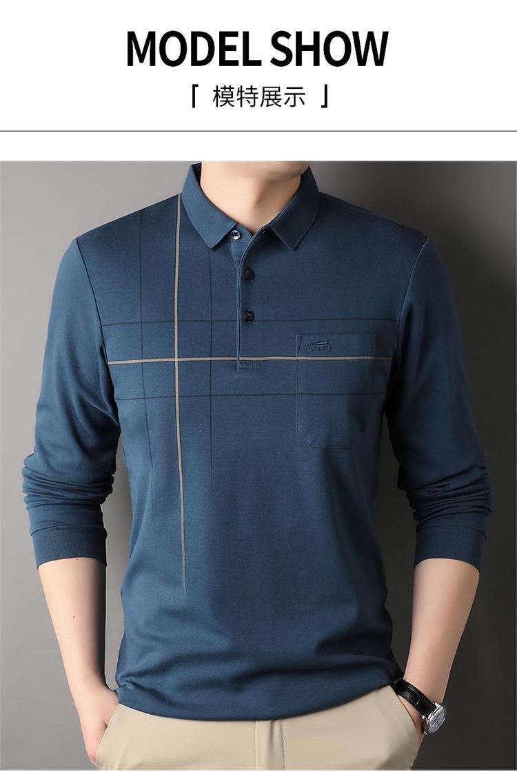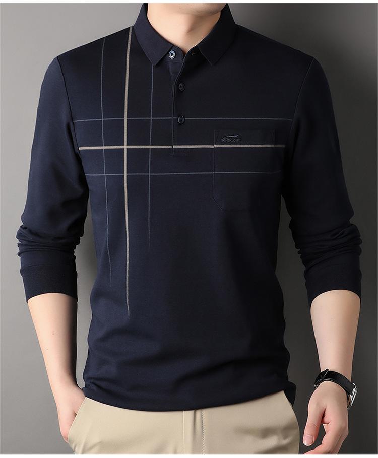 Camisa polo de manga larga para primavera y otoño, nueva, para hombres de mediana edad y mayores, suéter de solapa, camiseta estampada de lana sintética, informal de negocios