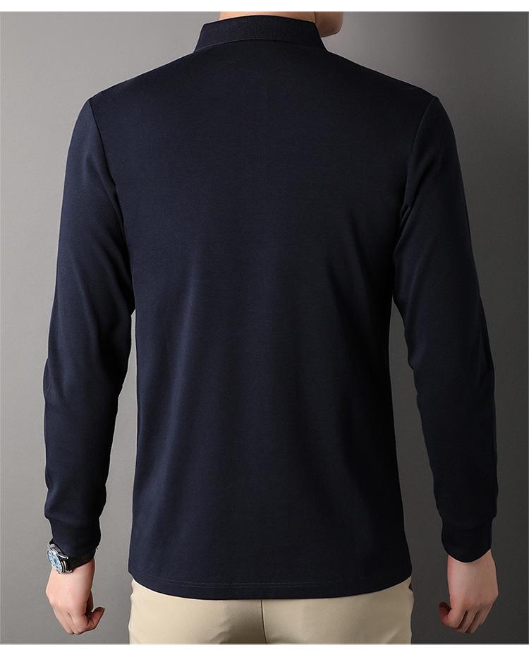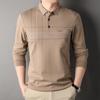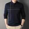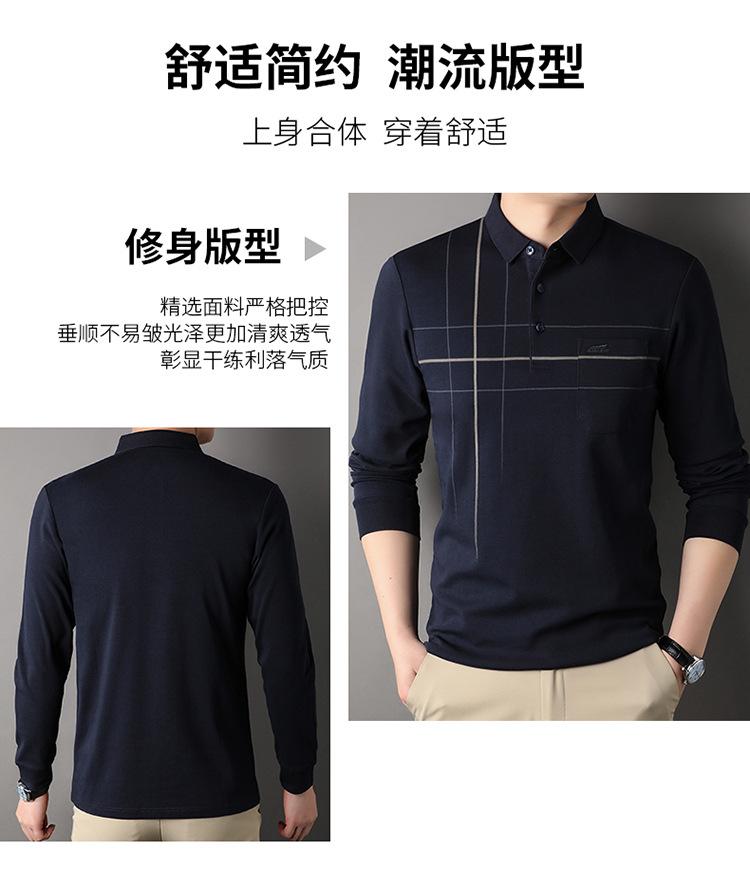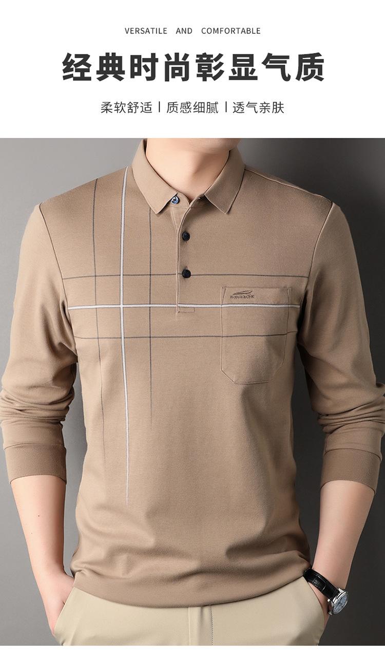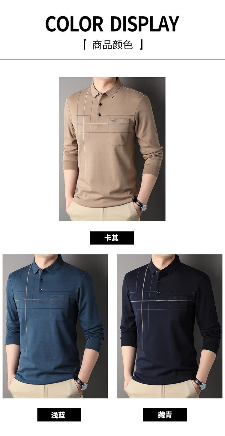 Camisa polo de manga larga para primavera y otoño, nueva, para hombres de mediana edad y mayores, suéter de solapa, camiseta estampada de lana sintética, informal de negocios
