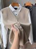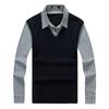 Suéter de otoño para hombre, nuevo, ajustado, con rayas de colores contrastantes, manga larga, falso, de dos piezas